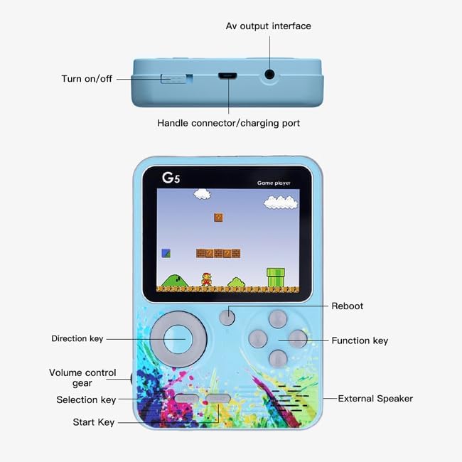 New World G5 Video Game for Kids, Handheld 500 in 1 Games for Kids, Handheld Video Game Game Box with TV Output Gaming Console, Rechargeable Video Game for Kids