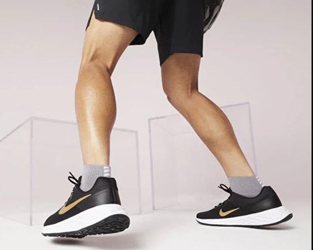 Nike Men's Revolution 6 Running Shoe (10.5, Black/Metallic Gold-White, Numeric_10_Point_5)