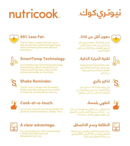 NUTRICOOK 1700 Watts, Stainless Steel Digital Control Panel Display, 10 Preset Programs with built-in Preheat function, Brush Air Fryer 2 (AF205, 5.5 L)