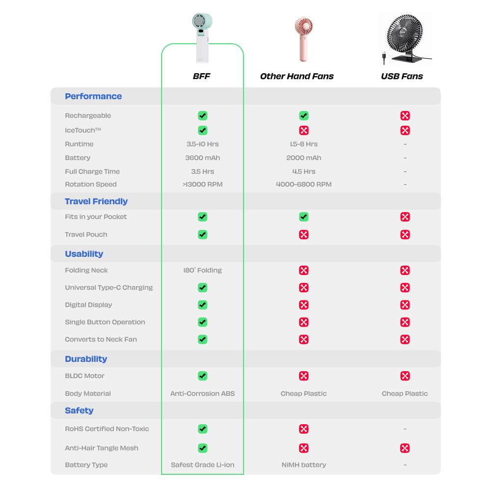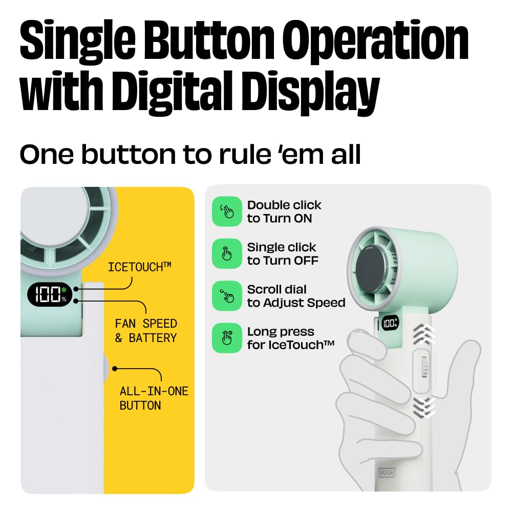 NUUK BFF Hand Fan, 13000 RPM Personal Fan With Icetouch Cooling |3600Mah USB Rechargeable Battery [Up To 10H] |Quiet Foldable Fan For Travel, Commute, Office, Makeup & Outdoor | 100-Speed Dial, Green