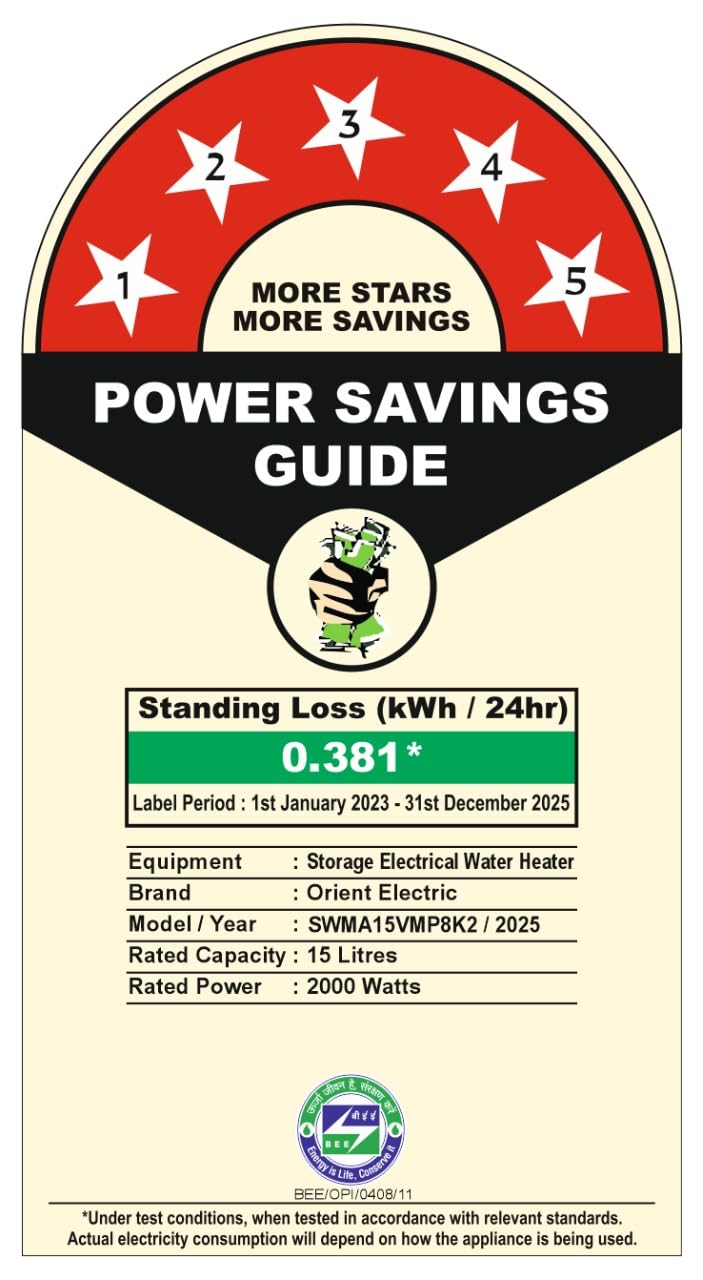 Orient Electric Enamour Classic Pro Geyser|15L Storage Water Heater| High Pressure Epoxy Coated Tank|5 Star rated |8 bar pressure compatibility |Suitable for high rise buildings |5 years tank warranty