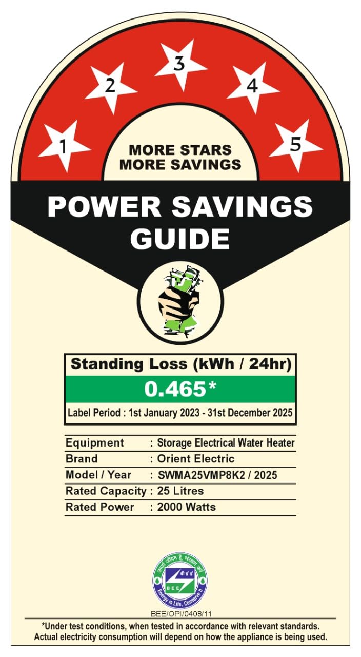 Orient Electric Enamour Classic Pro Geyser|25L Storage Water Heater| High Pressure Epoxy Coated Tank|5 Star rated |8 bar pressure compatibility |Suitable for high rise buildings |5 years tank warranty