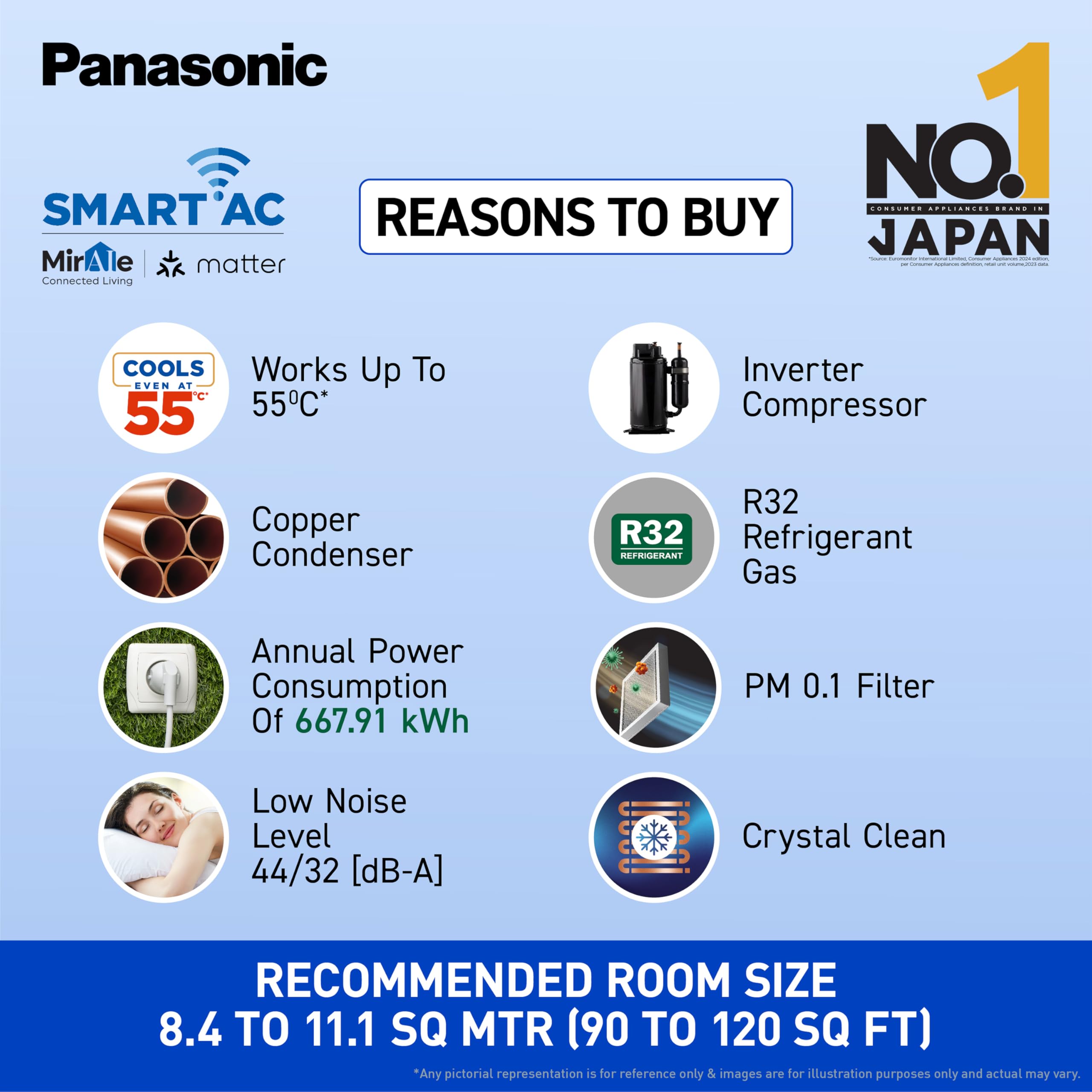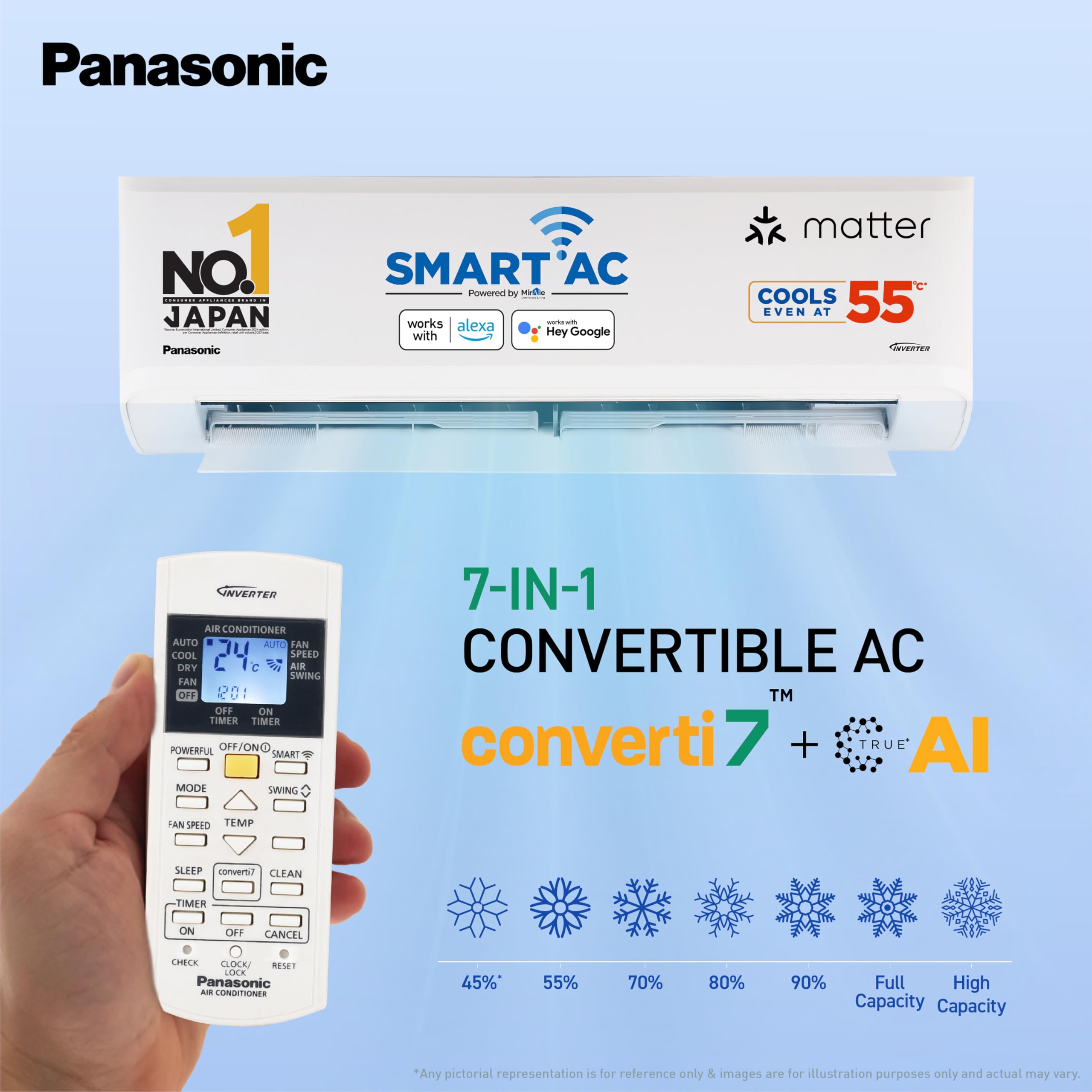 Panasonic 1.0 Ton 3 Star Premium Wi-Fi Inverter Smart Split AC (Matter Enabled, Higher Airflow, Copper Condenser, 7in1 Convertible, True AI, 2-Way, PM 0.1 Filter, CS/CU-SU12AKY3W, White)