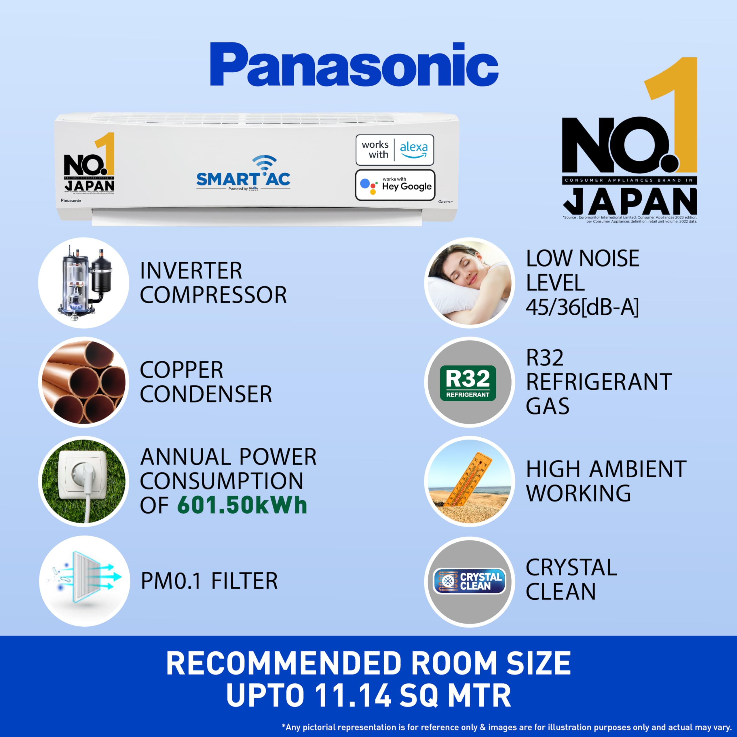 Panasonic 1 Ton 4 Star Wi-Fi Inverter Smart Split AC (Copper Condenser, 7 in 1 Convertible with True AI Mode, 4 Way Swing, PM 0.1 Air Purification Filter, CS/CU-NU12ZKY4W, 2024 Model, White)