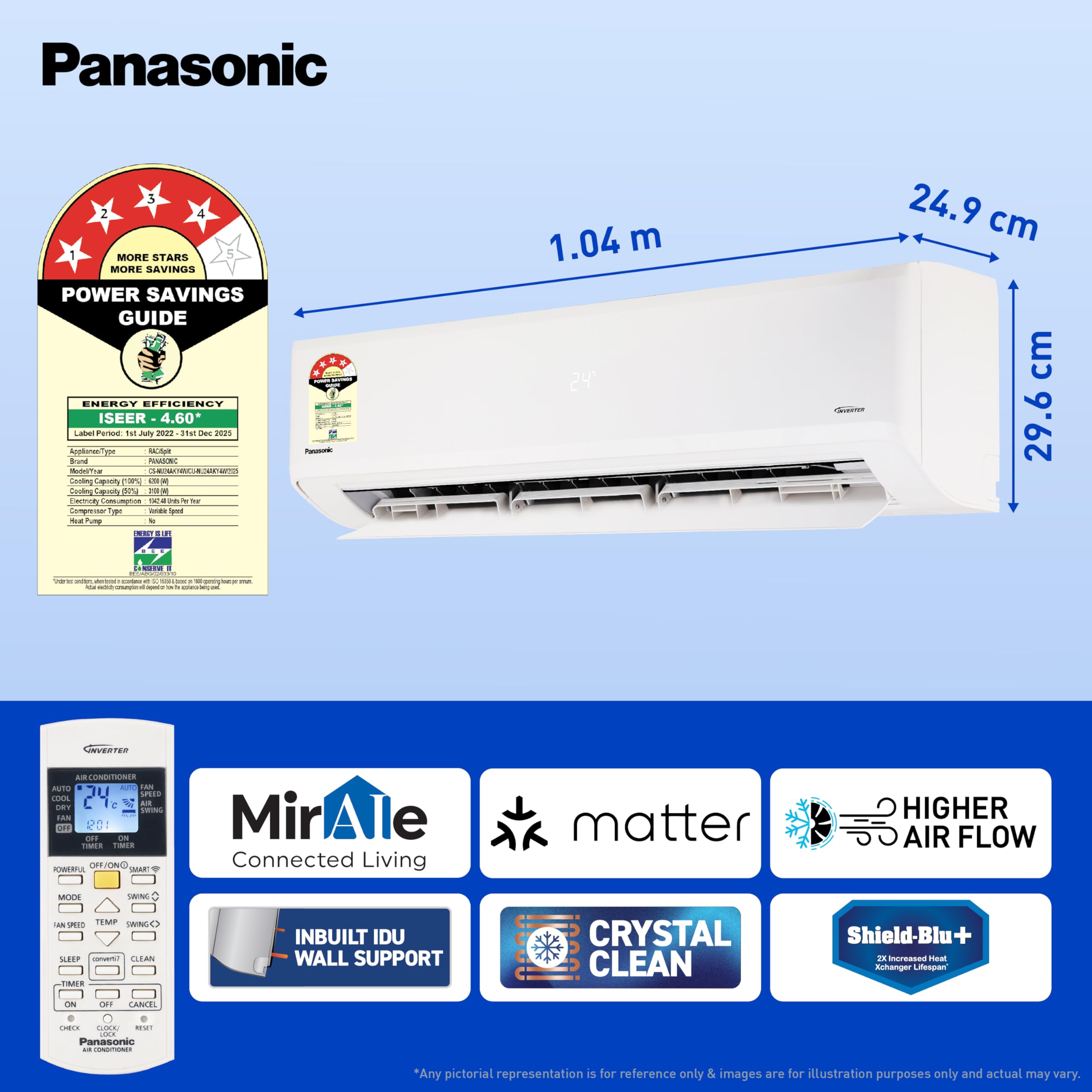Panasonic 2.0 Ton 4 Star Premium Wi-Fi Inverter Smart Split AC (Matter Enabled, Higher Airflow, Copper Condenser, 7in1 Convertible, True AI, 4-Way, PM 0.1 Filter, CS/CU-NU24AKY4W, White)