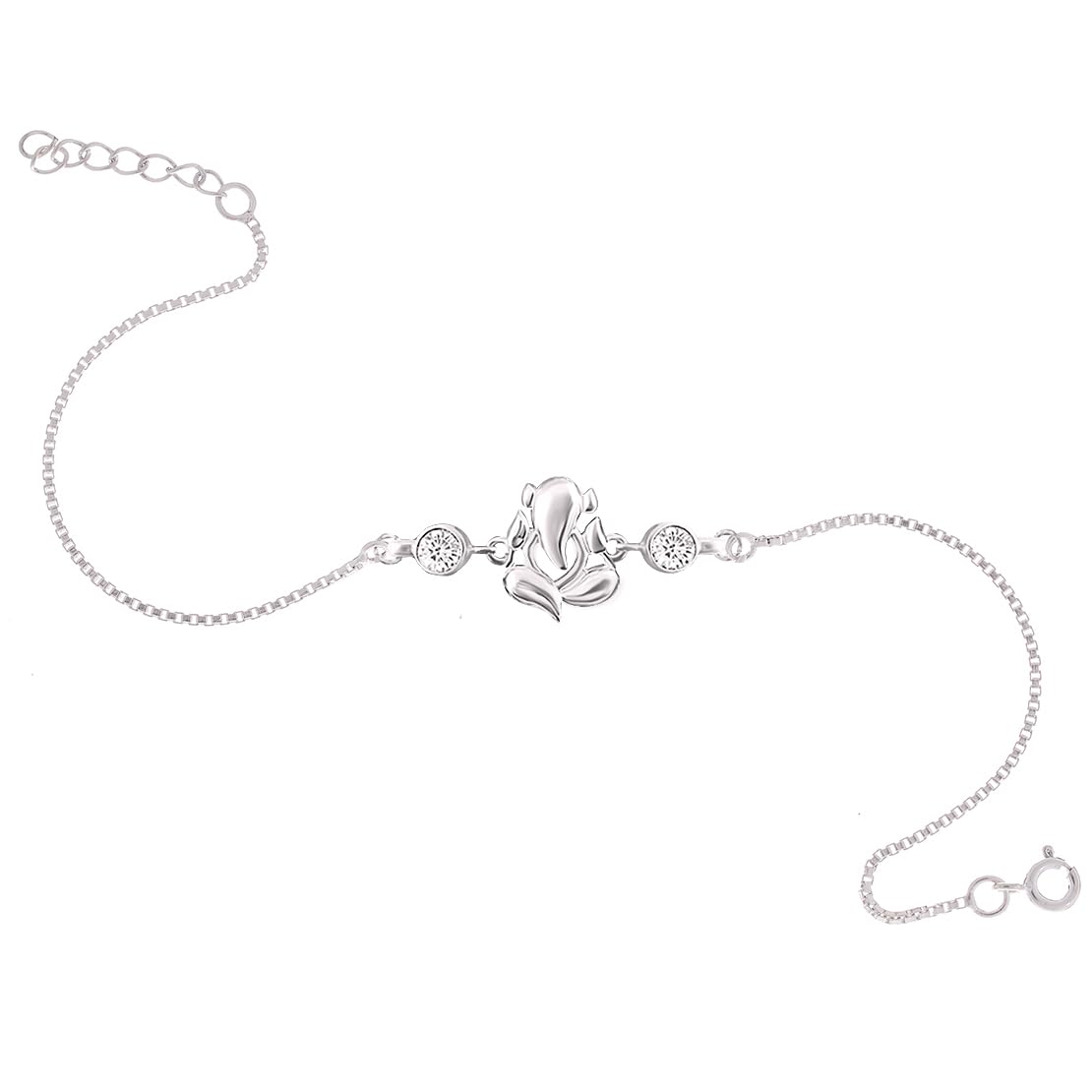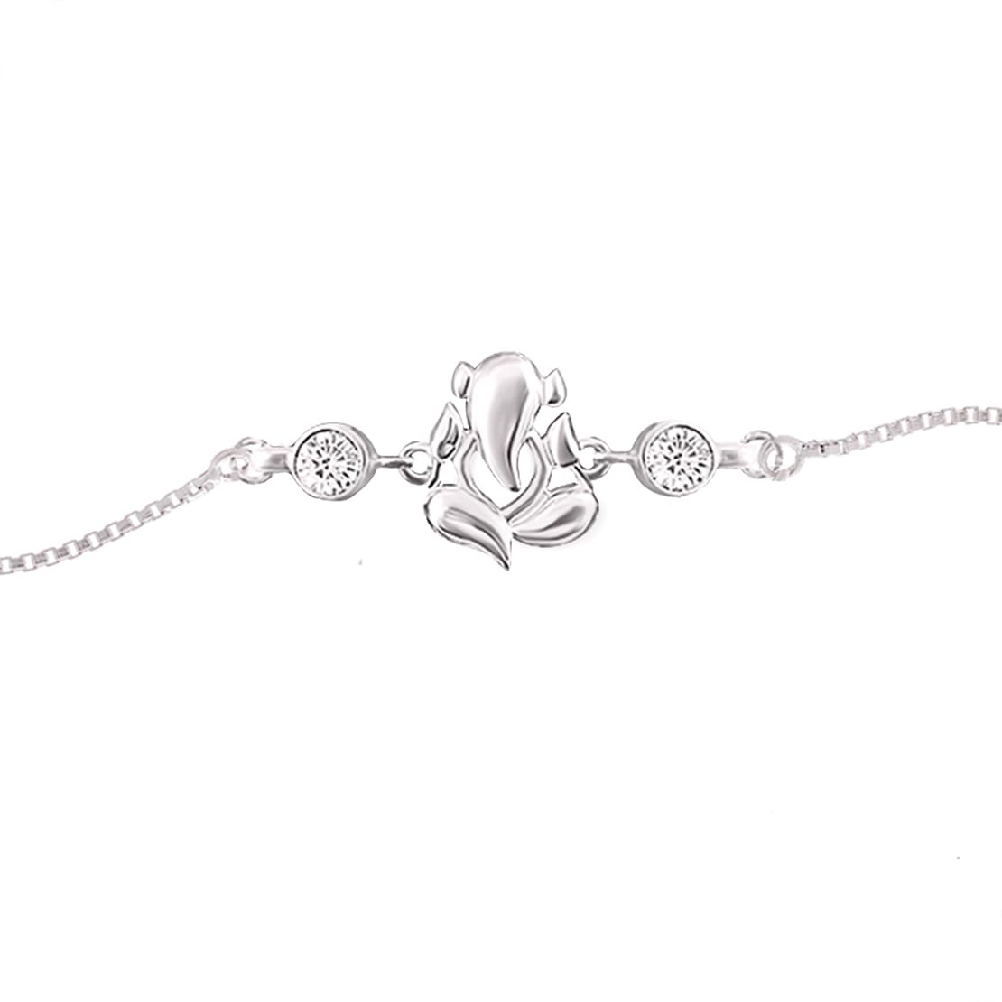 Parnika 925 Om Ganesha Rudraksha Infinity Bro Shiv Bhai Adjustable Silver Rakhi Bracelet For Brother in 92.5 Sterling Silver for Boys and Men | Chandi ki Rakhi | Gift Box Roli Chawal (Ganeshji CZ)