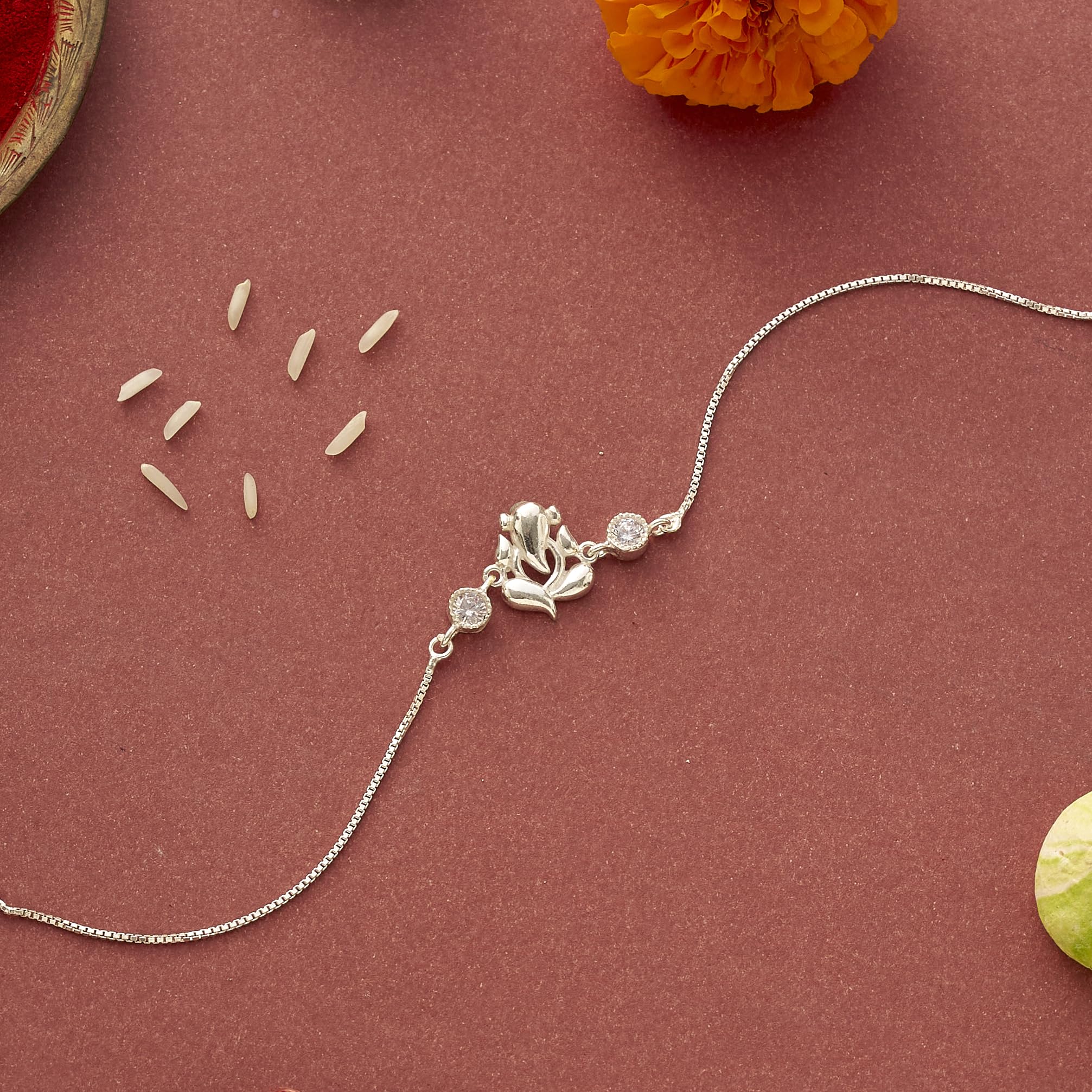 Brand: ParnikaColor: SilverFeatures: 92.5 Sterling Silver Rakhi for your loved ones Thread Rakhi fits every size wrists Bracelet Rakhi serves... Read more