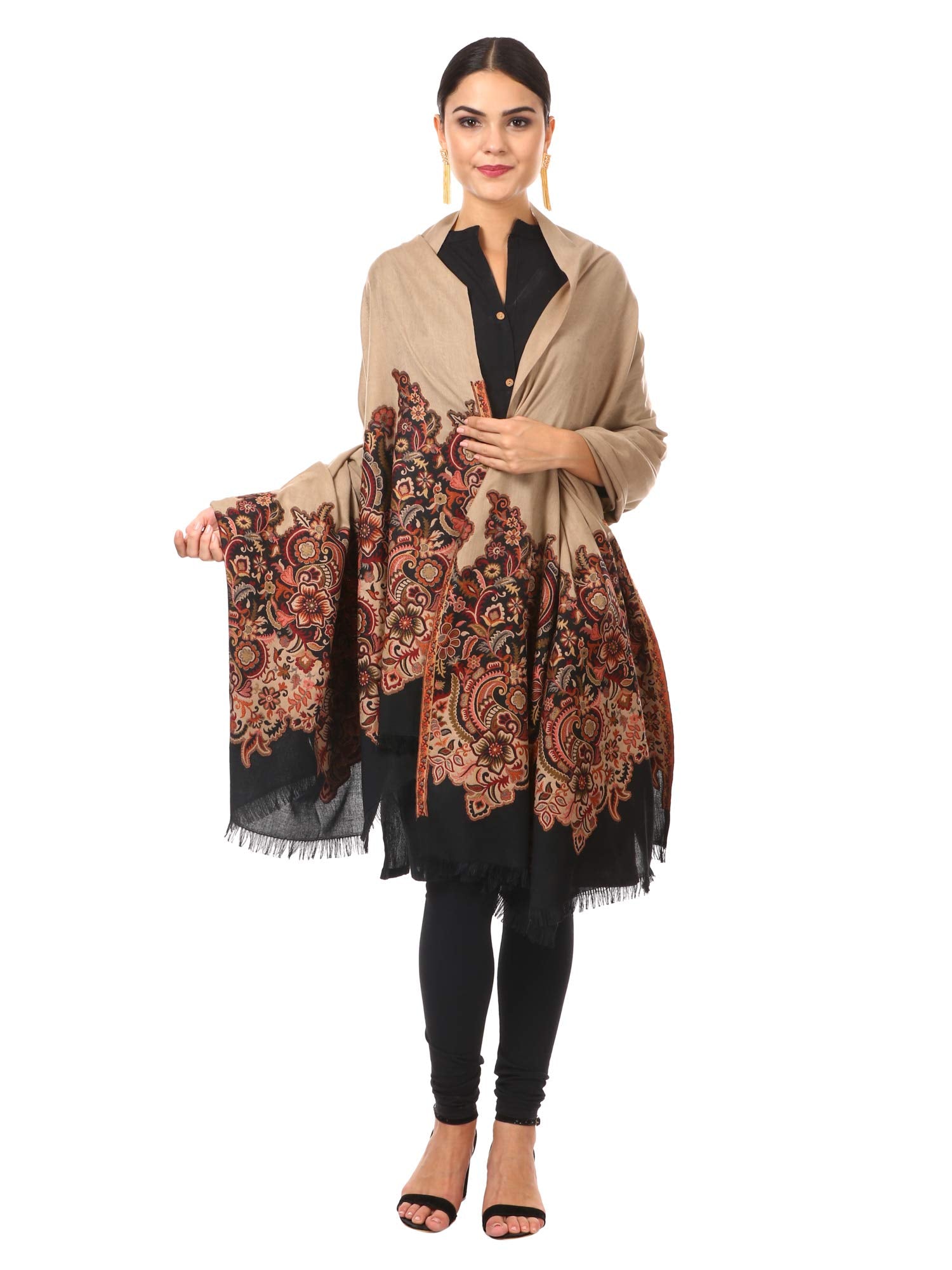 Brand: PashtushColor: Black and beigeFeatures: Beautiful Jamawar Designs, on a soft Faux Pashmina Fabric and Paiseley artwork. Popular since the... Read more