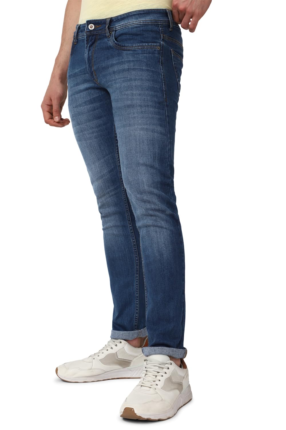 Peter England Men's Mid Wash Stretchable Mid Rise Jeans Medium Blue
