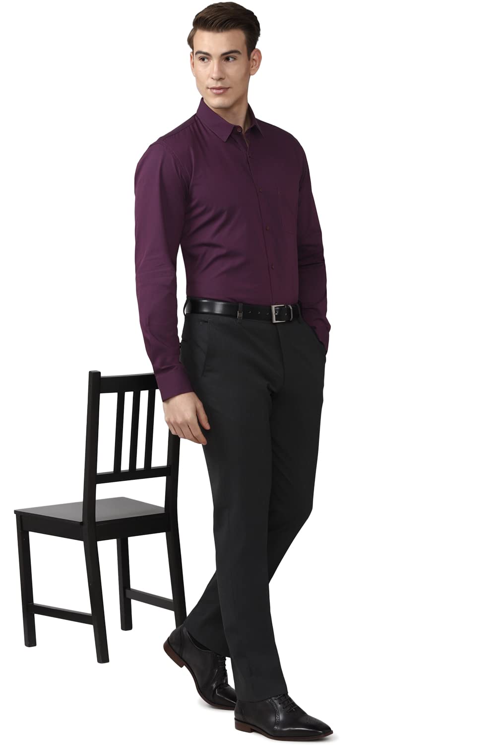 Peter England Men's Solid Regular Fit Shirt (PESFMNUBT16980_Purple 40)