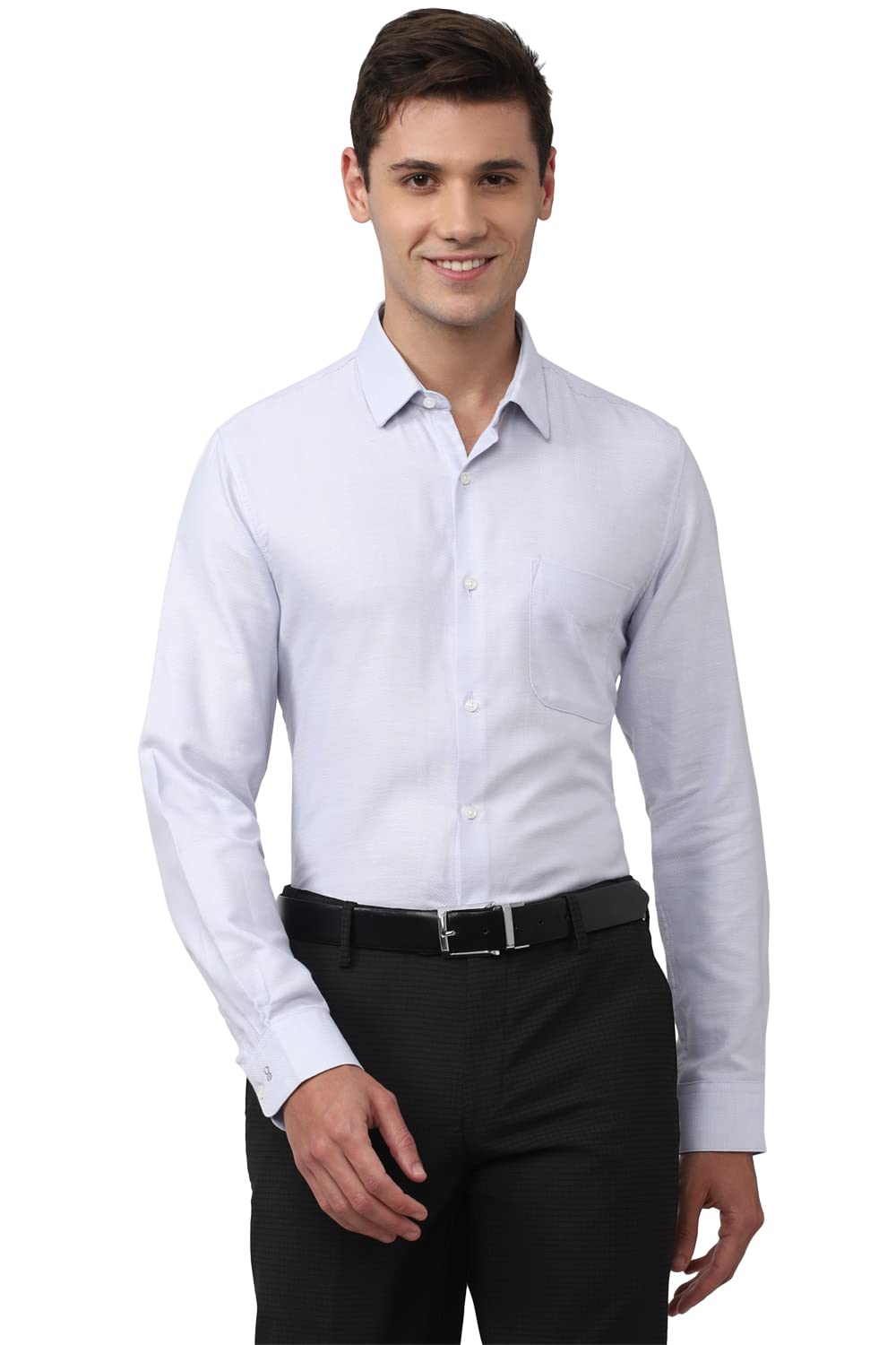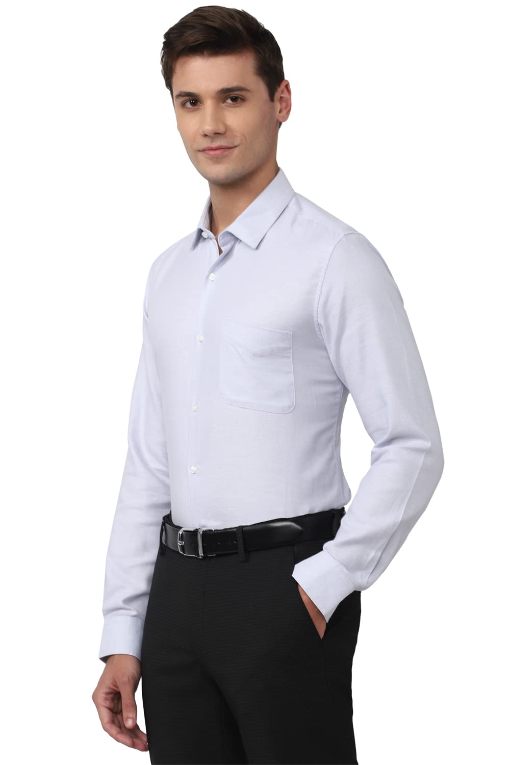 Peter England Men's Solid Slim Fit Shirt (PESFOSLPE40563_Size(44) Blue