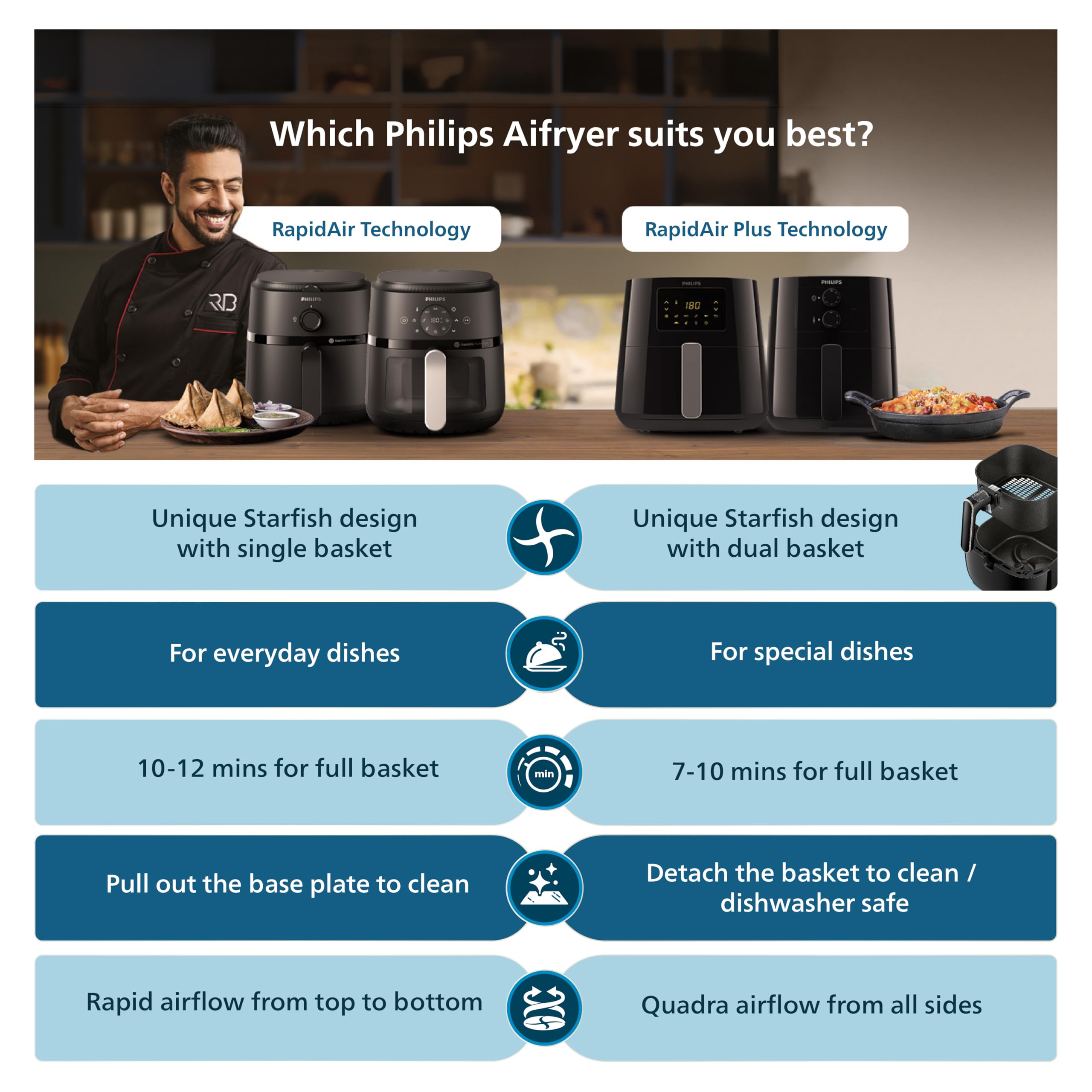 PHILIPS Air fryer for Home, 4.1 Liter, with RapidAir Technology (Black), with additional 1 Yr Warranty by Philips, uses up to 90% less fat (HD9200/90)