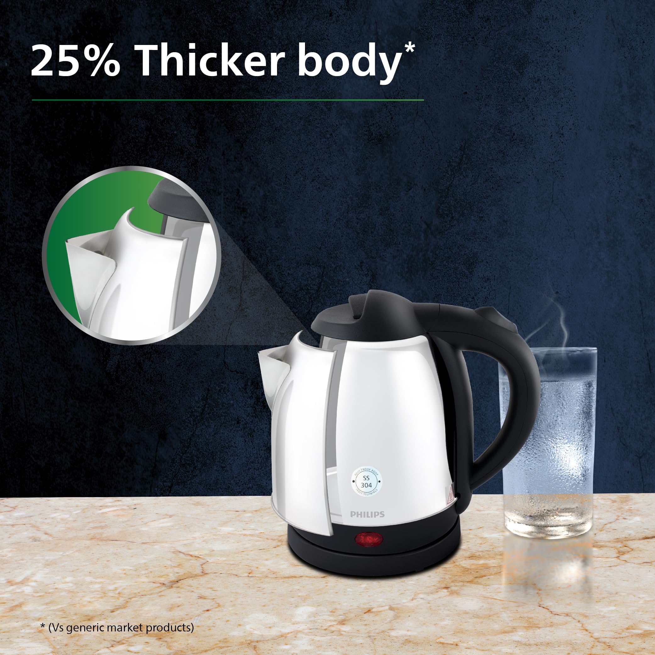 PHILIPS HD9373/00 1.5 liter Kettle with 25% thicker body for longer life, triple safe auto cut off, Stainless Steel, 1300 Watt