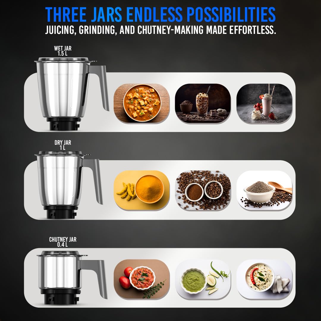 PHILIPS HL7770/00 Mixer Grinder, 800 Watt Powerful motor, 3 Jars, MicroGrind technology : Grind even 1 pepper; Choose Coarse, Fine, or Superfine for perfect textures every time, Grey