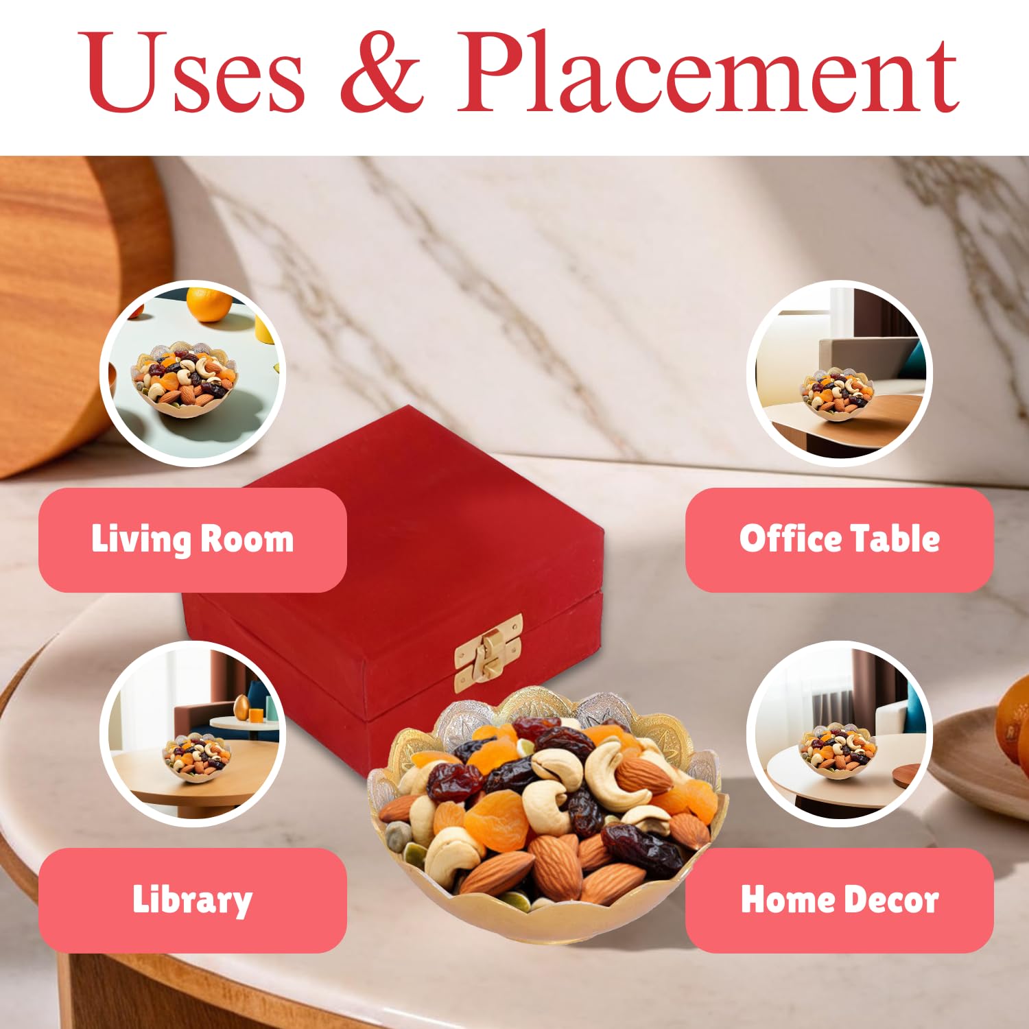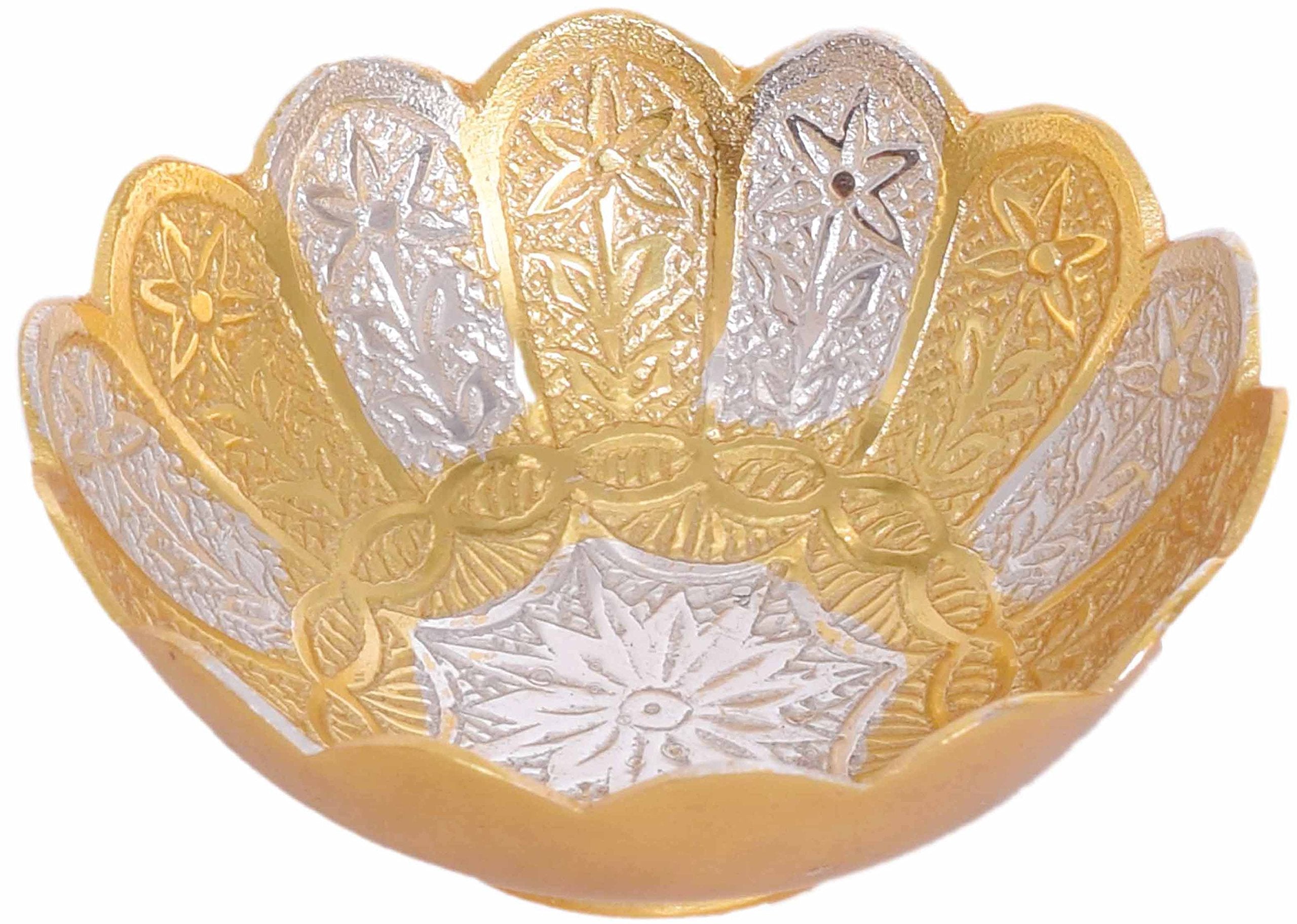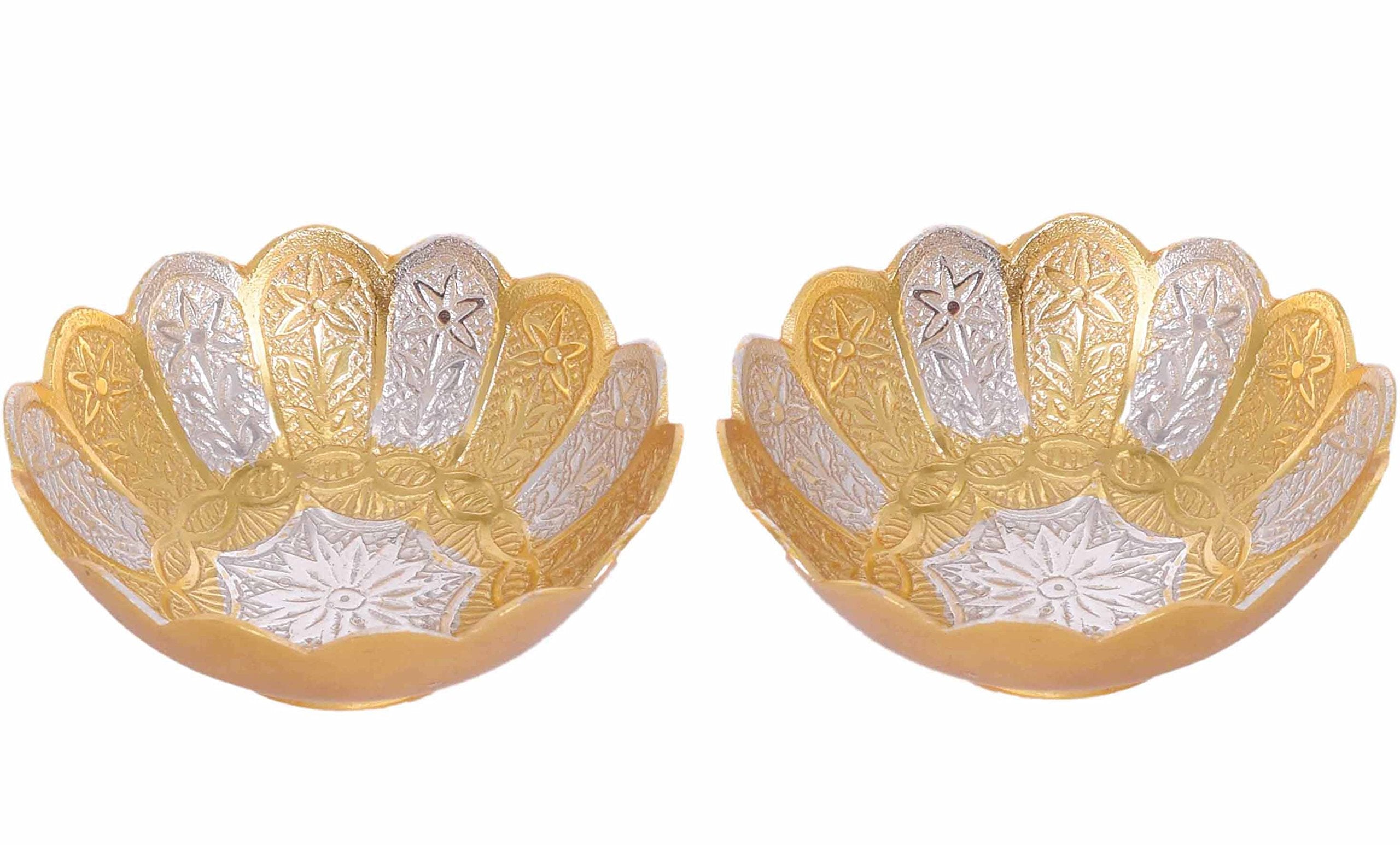 Piepot German Silver Bowl Set of 2 | German Silver Bowl and Spoon with Red Velvet Box | 2 Pieces Set for Weeding Gifts, House Warming & Pooja | Silver Gift Items (Silver-Gold Floral) 3.75 Inch, 120 ML
