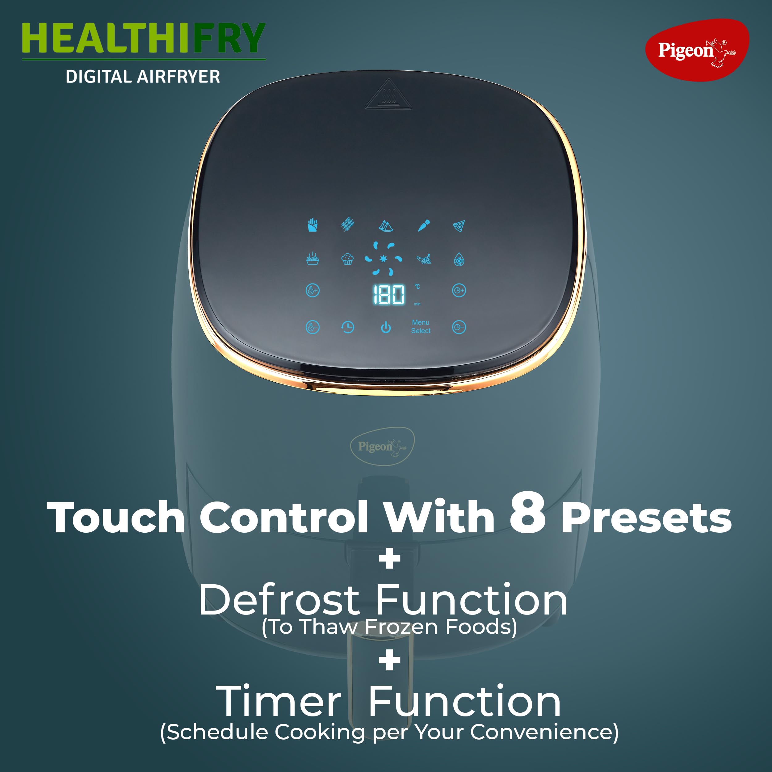 Pigeon Healthifry Digital Air Fryer, 360° High Speed Air Circulation Technology 1200 W with Non-Stick 4.2 L Basket - Green