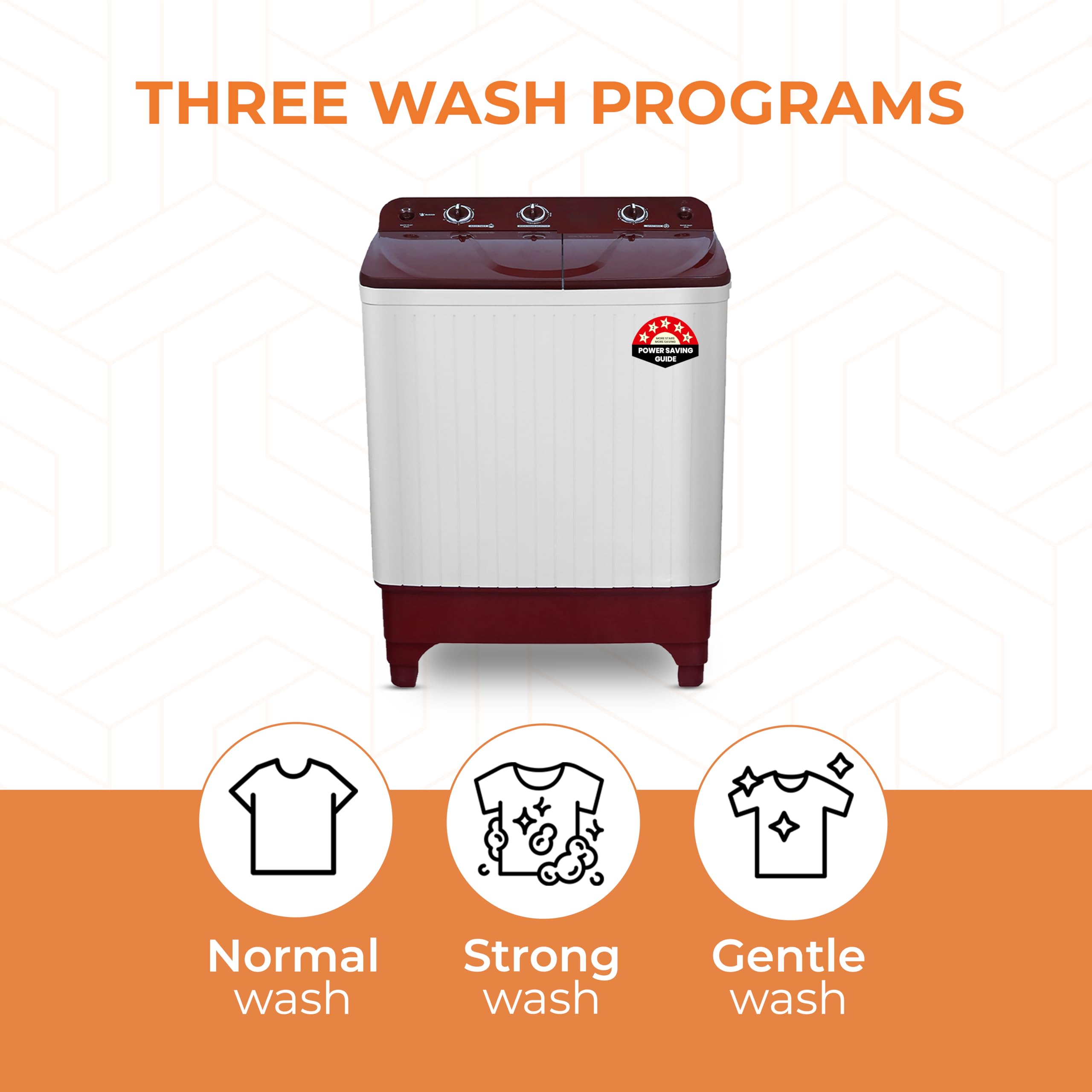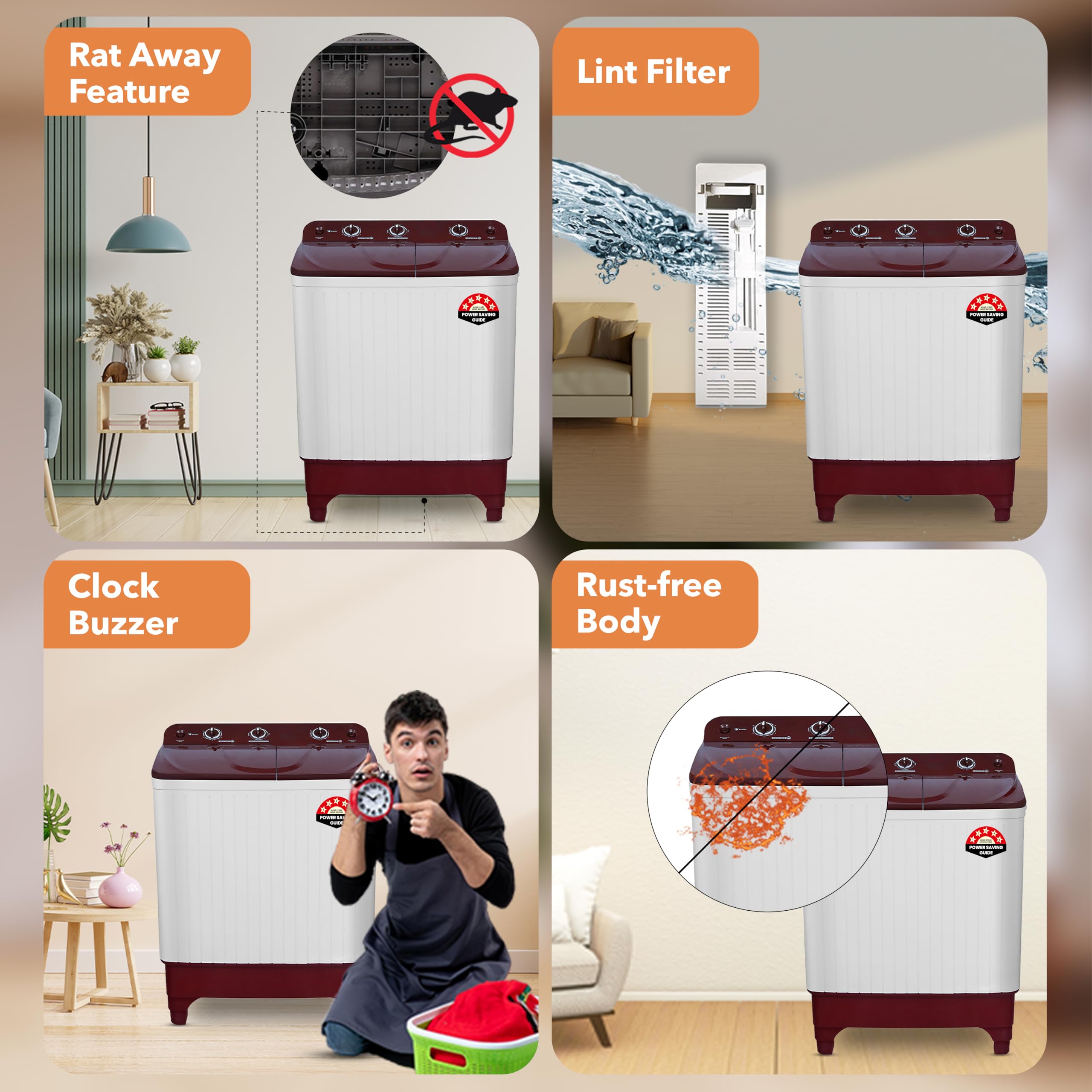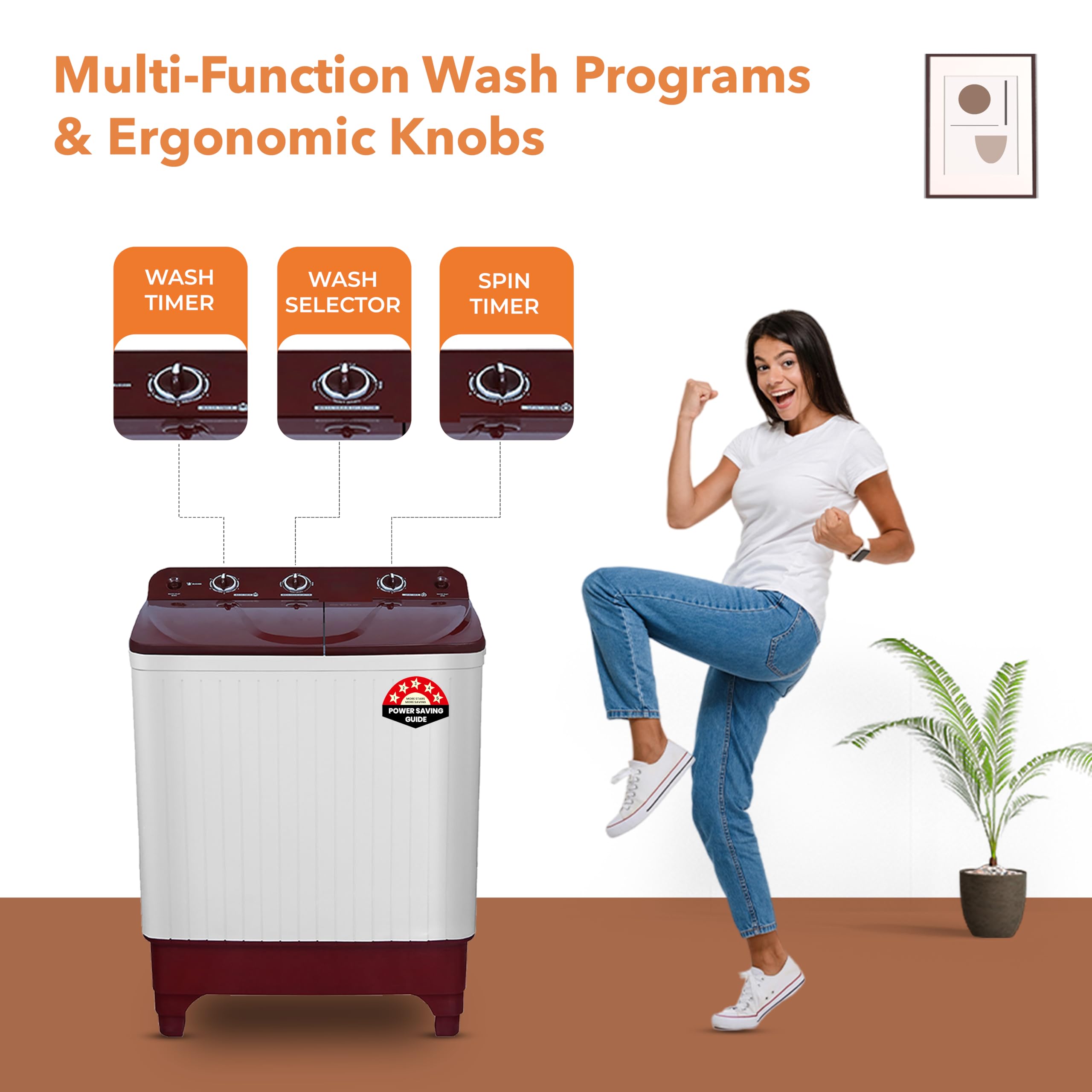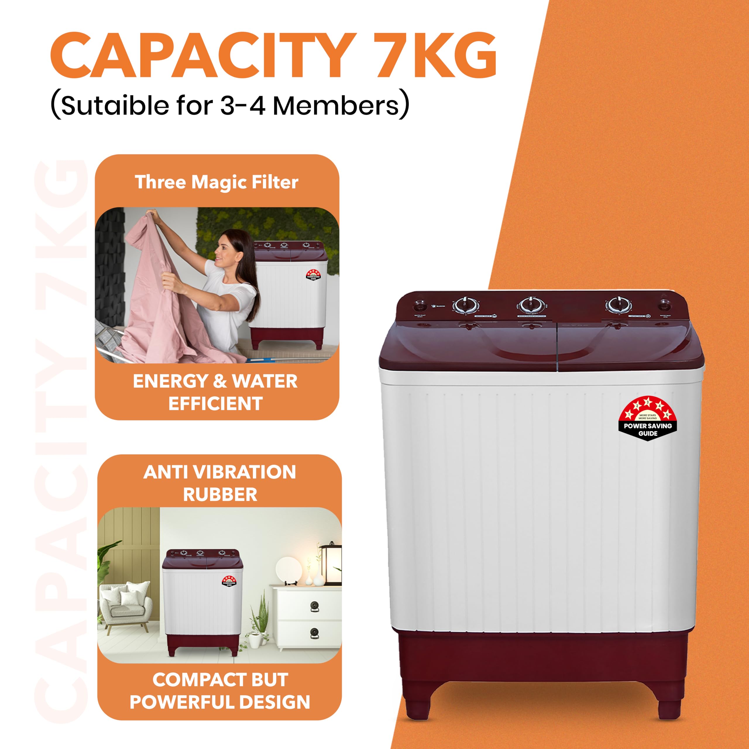 Power Guard 7 kg 5 Star Semi-Automatic Top Loading Washing Machine Appliance (2024 Model,PG70WM-BG-OP, Burgundy, Powerful Motor, Effective Wash Pulsator,Air Turbo Drying,1380 RPM & Castors)