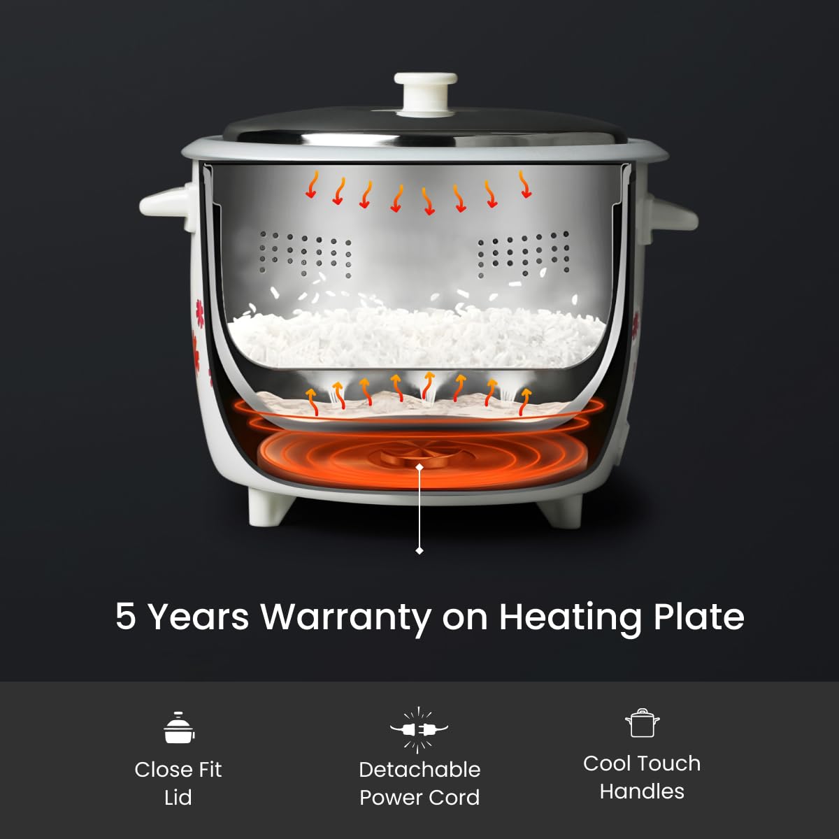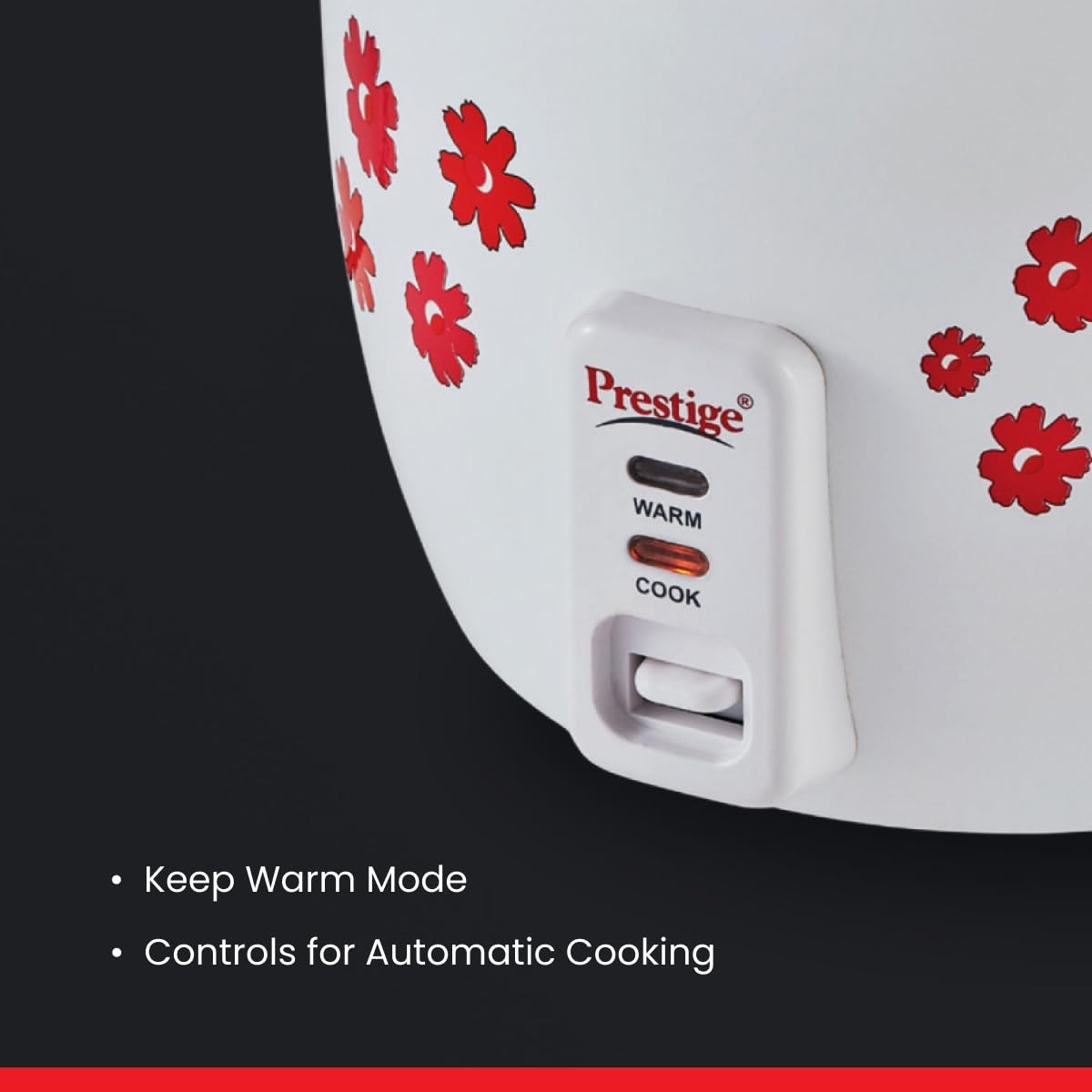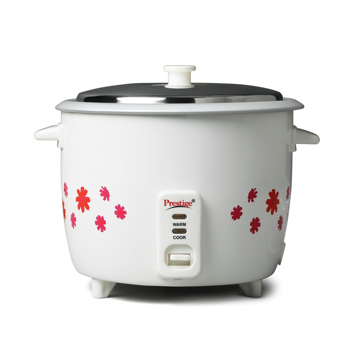 Prestige 1.8 Litres Electric Rice Cooker (PRWO 1.8 Litres)| 2 Aluminium Cooking Pans | Stainless Steel Lid | Grey/White | Cool Touch Handles | Detachable Power Cord | 700- Watt