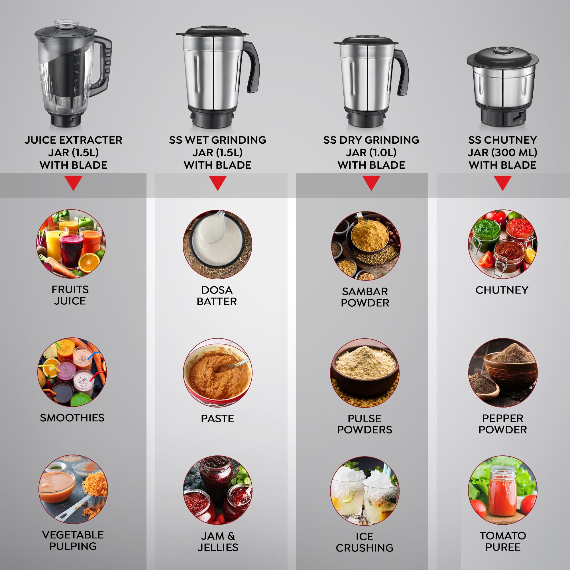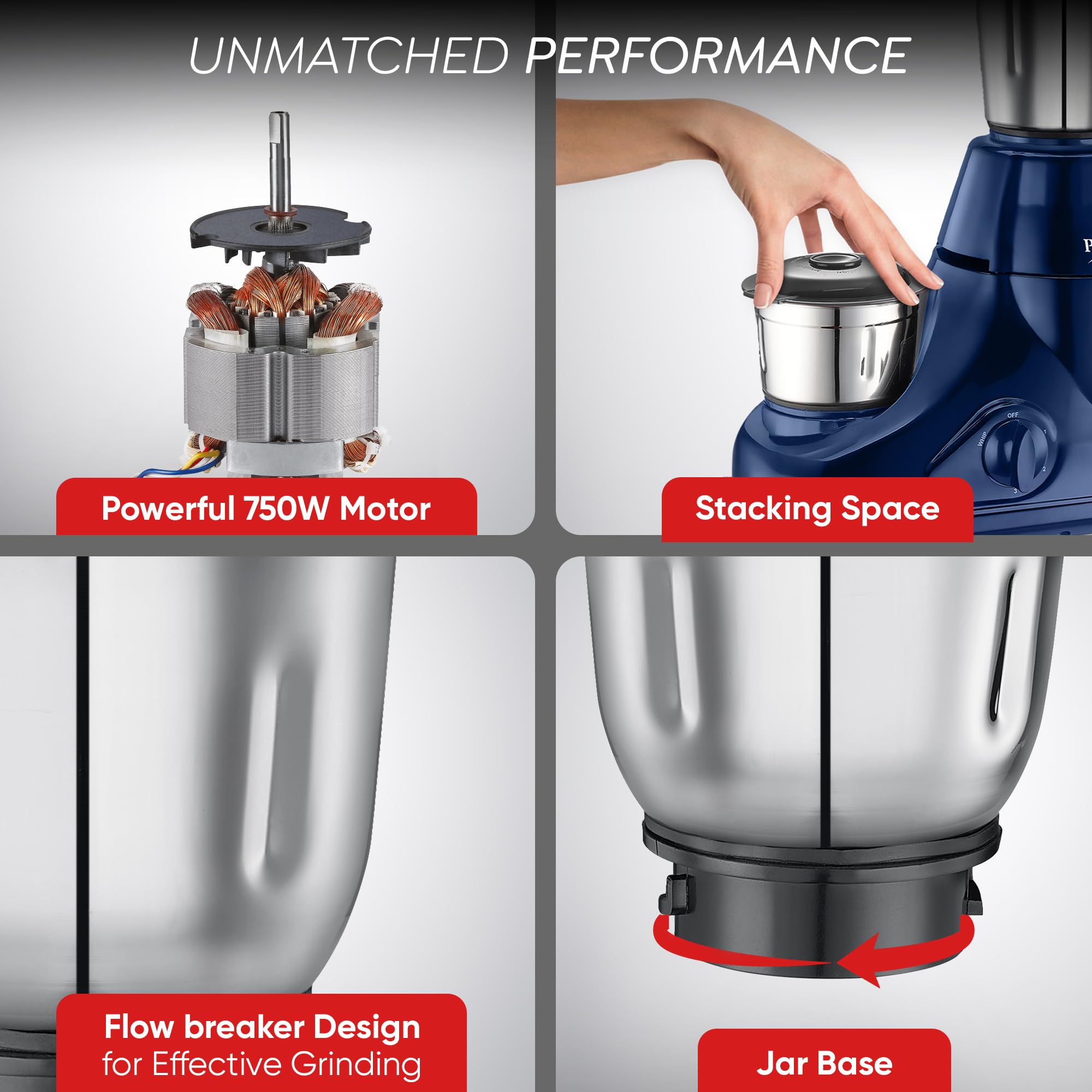 Prestige 750W Astra Mixer Grinder with 5 Jars – 1500ml Wet, 1000ml Dry, 1500ml Juicer, 300ml Chutney & Mix-O-Keep | Space-Saving Stacking Design | 2-Year Warranty