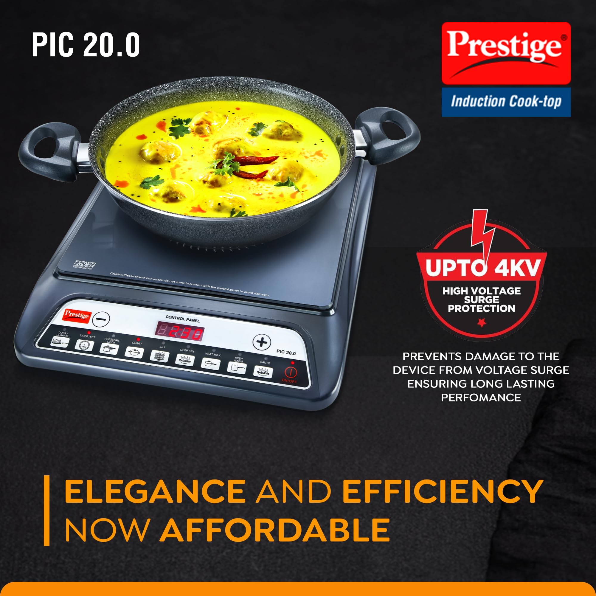 Prestige PIC 20 1600 Watts Induction Cooktop |Indian Menu Option |High Voltage Surge Protection| Automatic Power & Temperature Adjustment|1 year Warranty |Black
