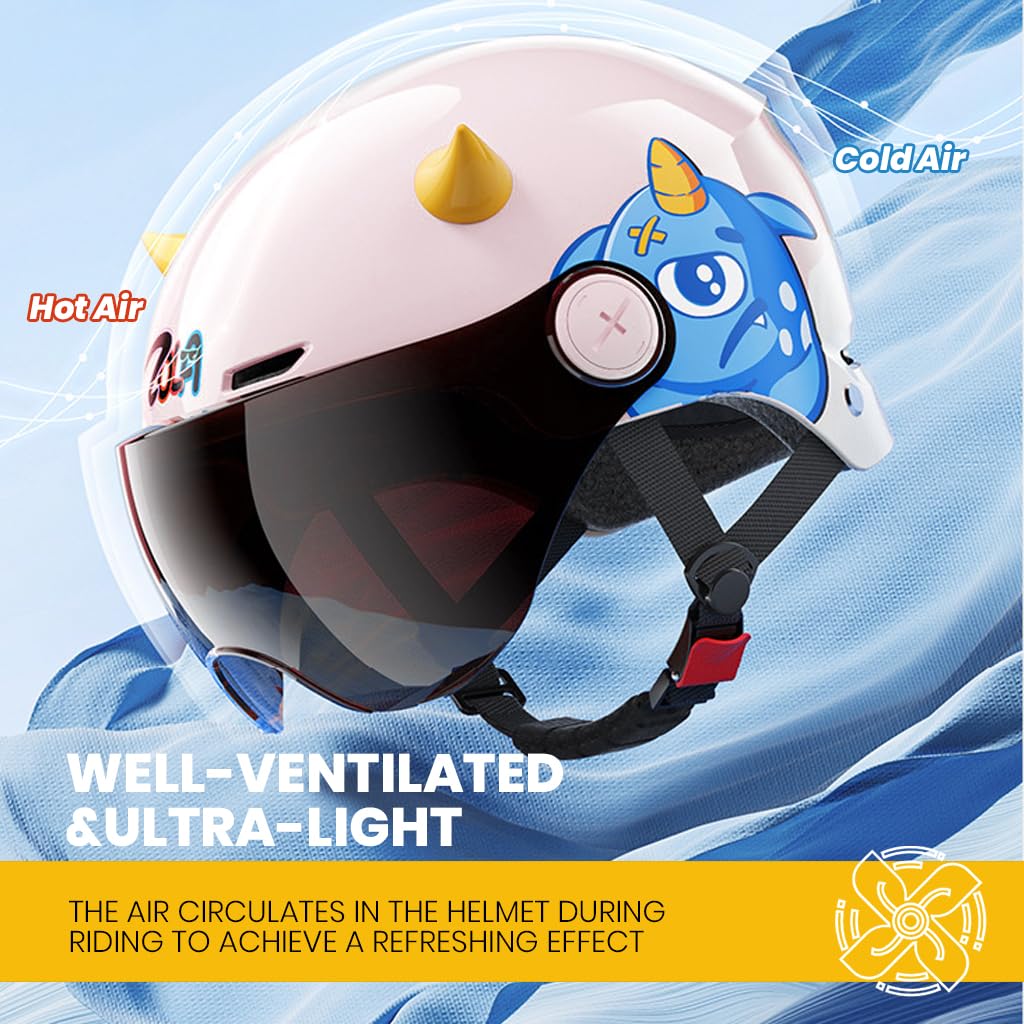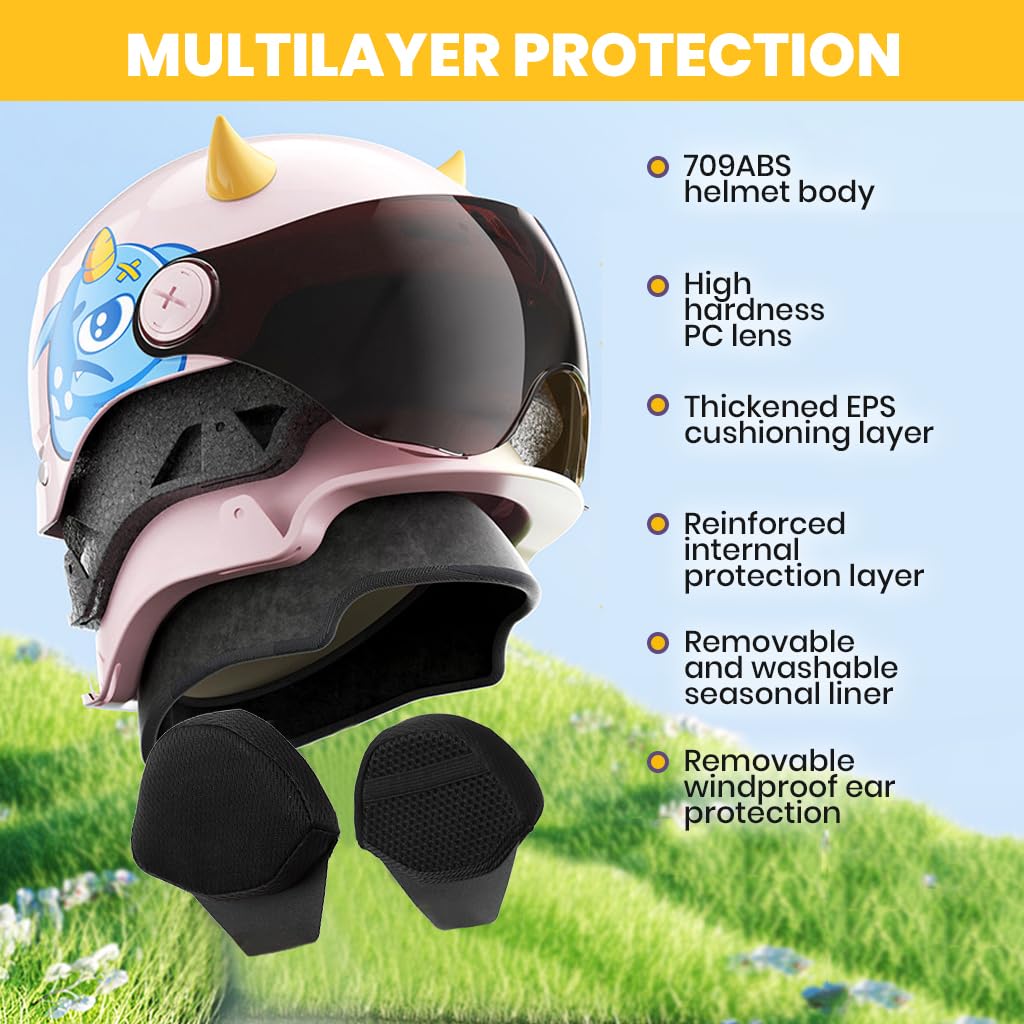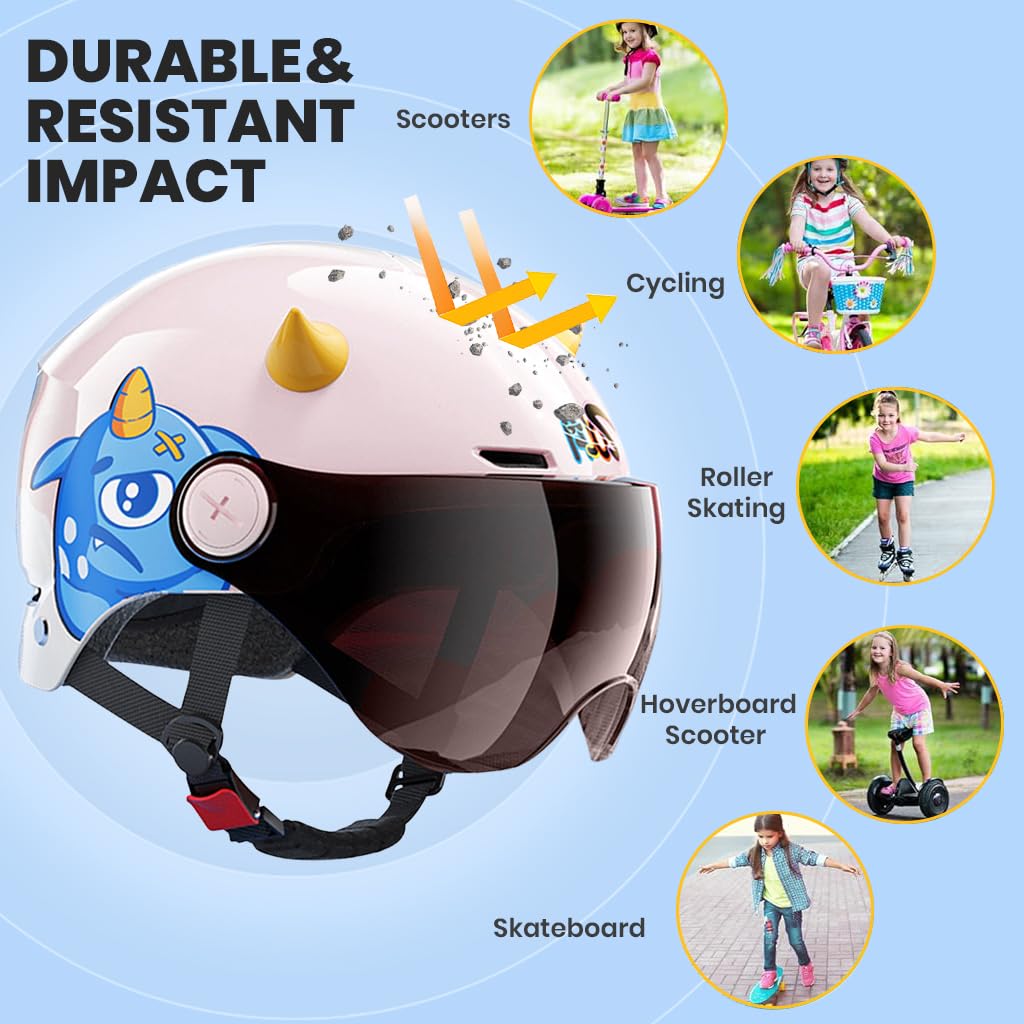 Proberos® Kids Bike Helmet 3D Cartoon, Adjustable Chin Strap, Cushioned Lining, Safety Helmet for Boys & Girls Ages 4-15, Removable Ear Pads, Anti-Glare Visor for Bike & Scooter