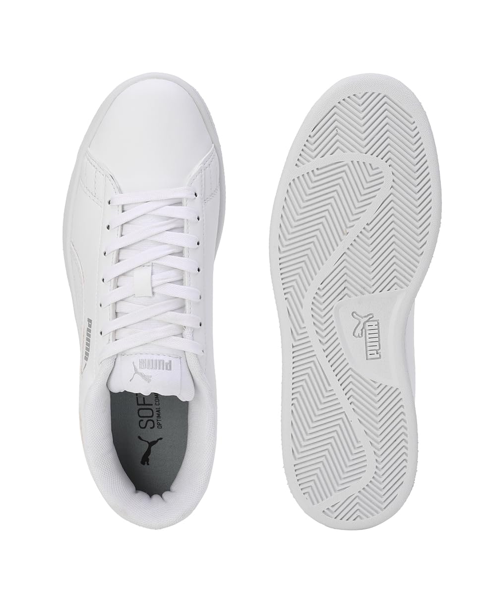 Brand: PUMAColor: White-Matte SilverFeatures: Style Name:-Sneaker Model Name:-Smashic Brand Color:-White-Matte Silver Material:-Synthetic Care Instructions:-Wipe with a clean dry cloth Binding:... Read more