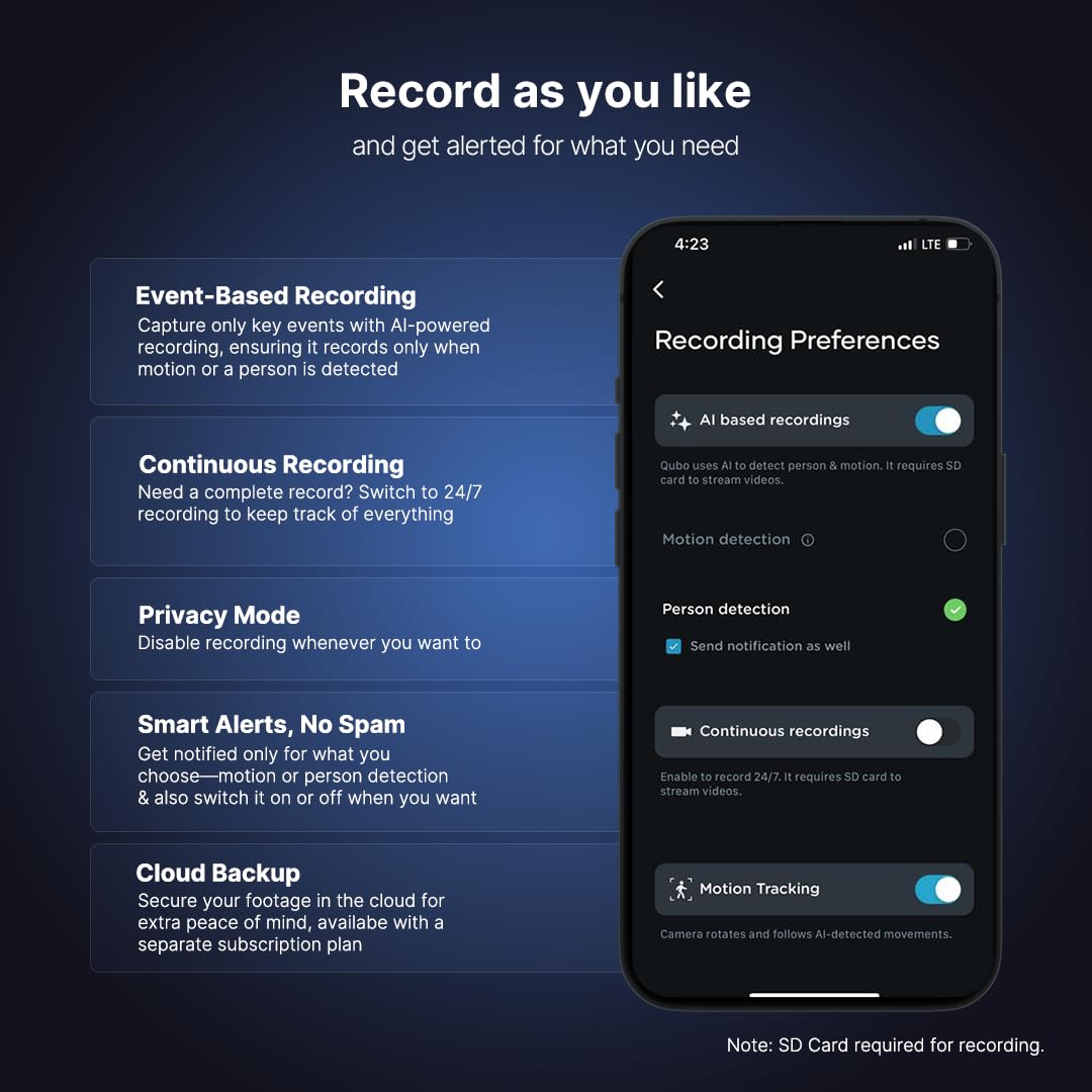 Qubo Smart 360° 3MP [2K] Wi-Fi Security Camera [Model 2.0] by Hero Group | Indoor CCTV Cam for Home | AI Person Detection | Auto-Alarm | App Alerts| NightPulse Vision| SD&Cloud Storage | Made in India