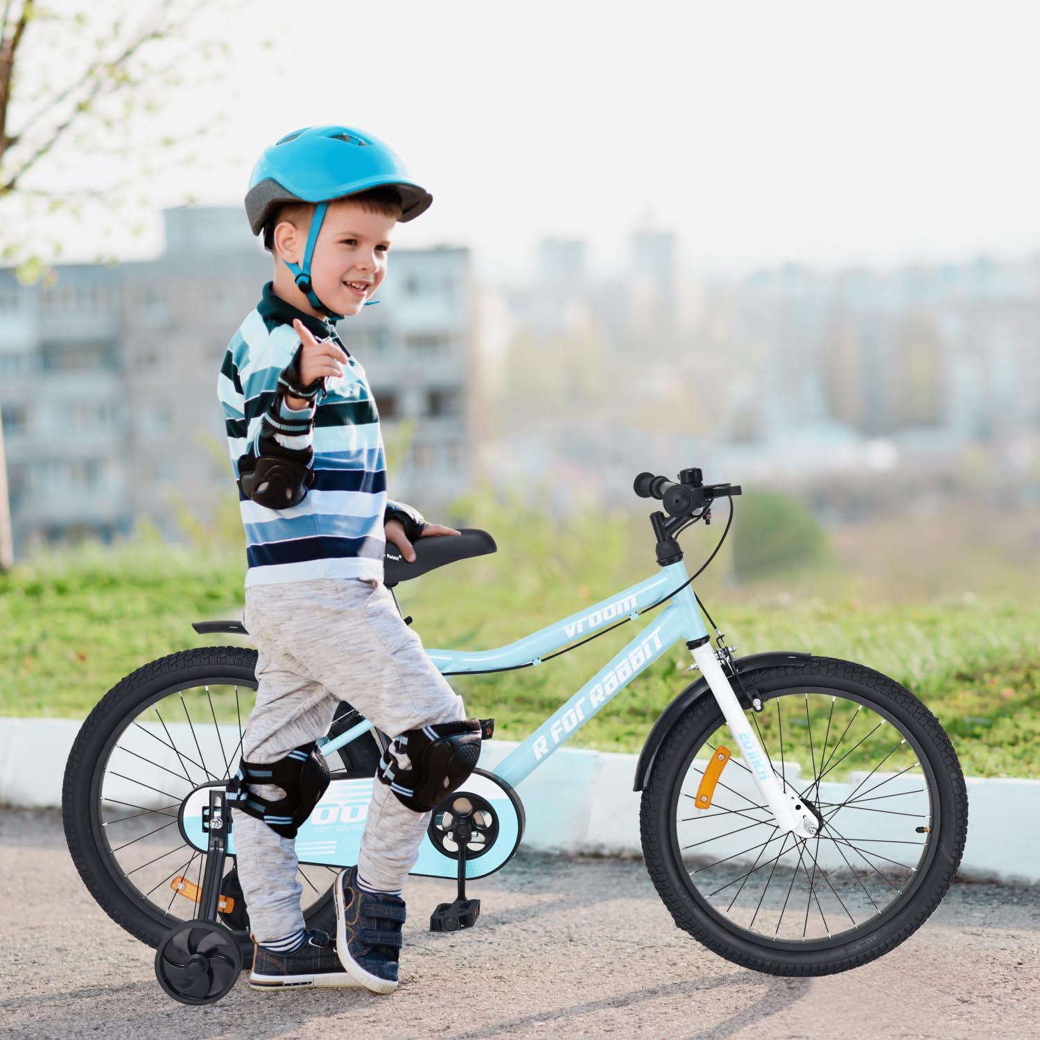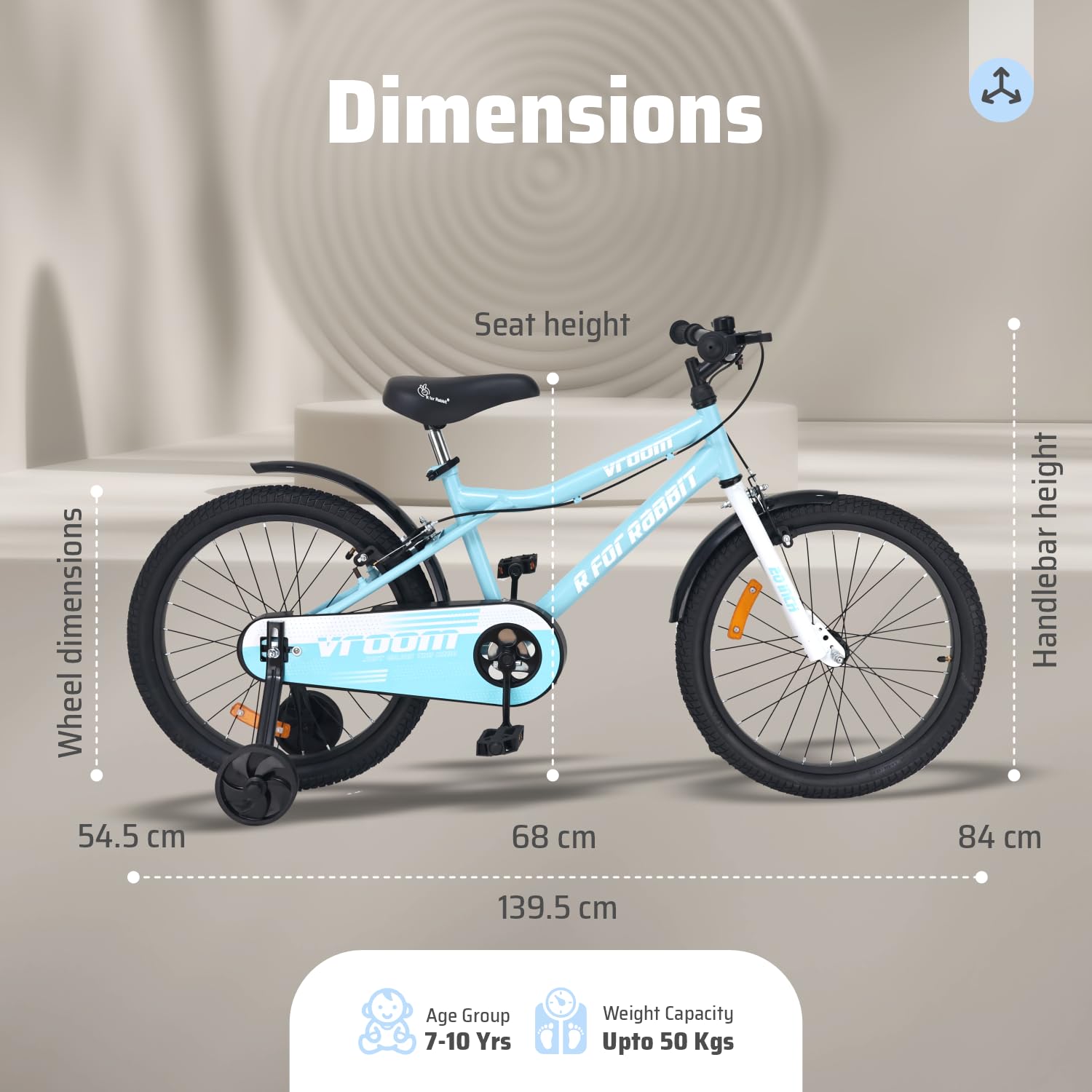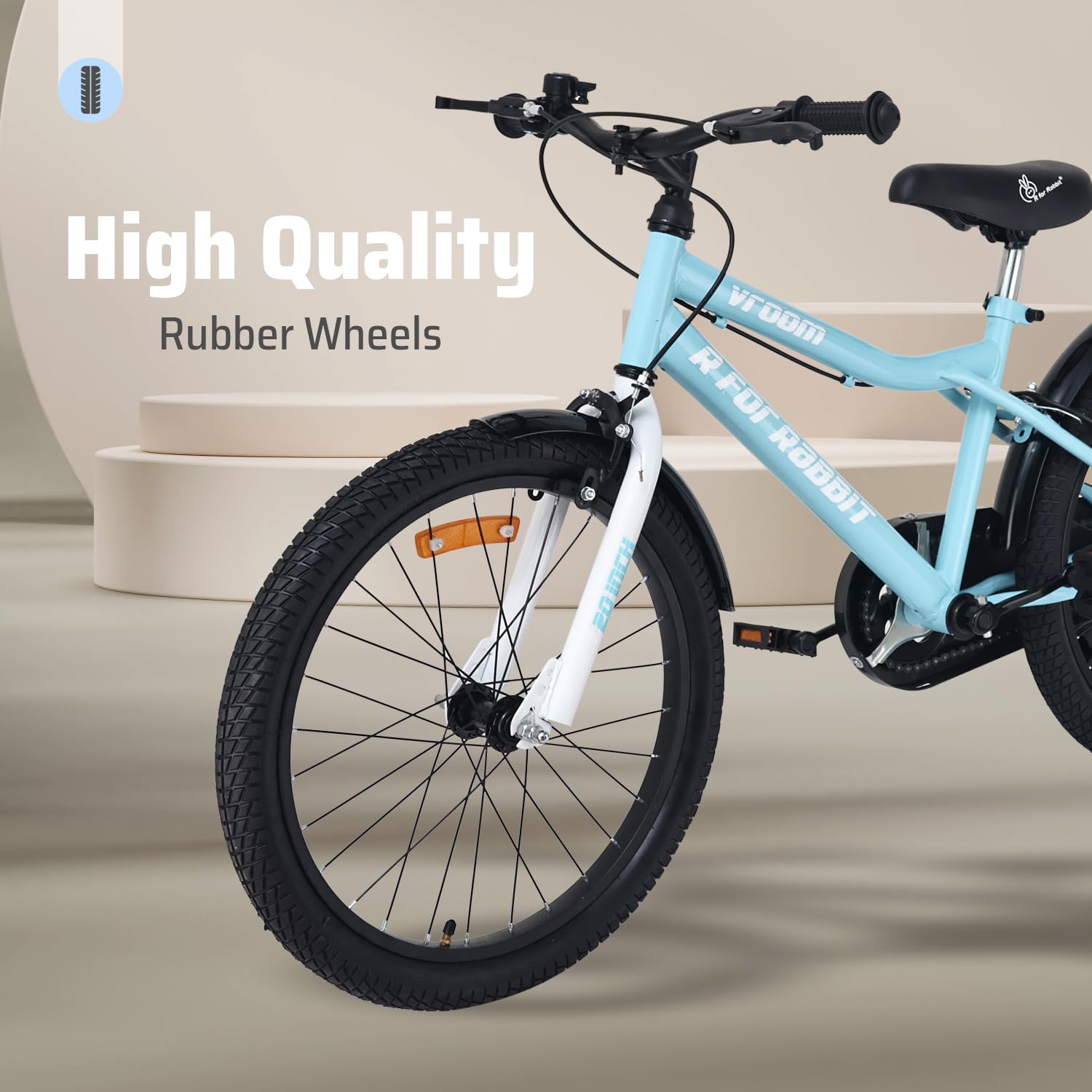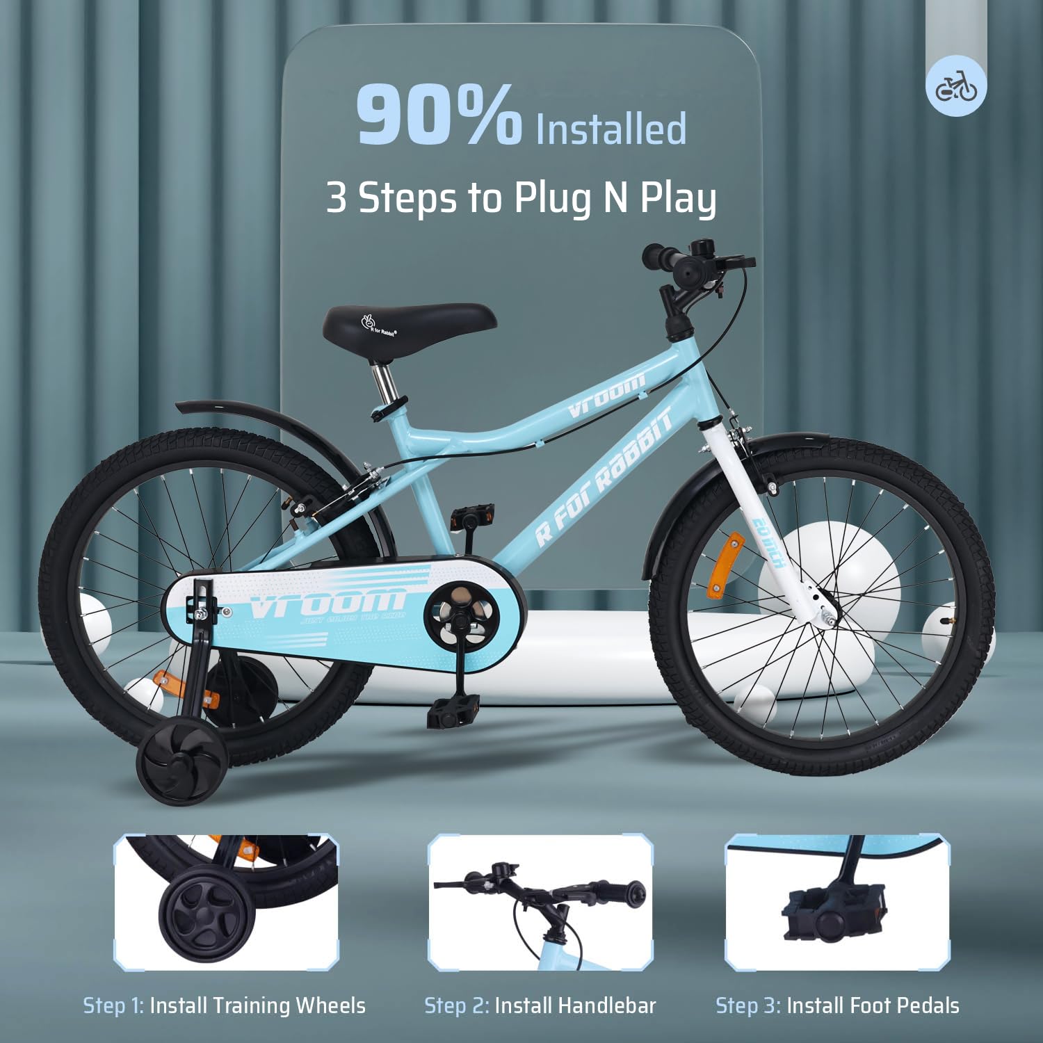 R for Rabbit Vroom Bicycle for Kids Cycle 20T Inches for 7 to 10 Years Boys & Girls with Training Wheels | 90% Installed | Upto 50 Kgs Weight Capacity (Lake Blue)