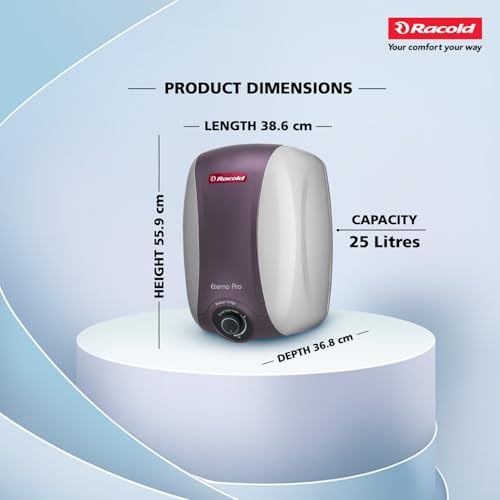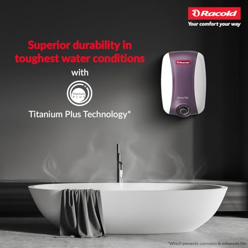Brand: RacoldColor: White and Metallic VioletFeatures: TITANIUM PLUS TECHNOLOGY: The tank and heating element has a titanium enamel coating that... Read more
