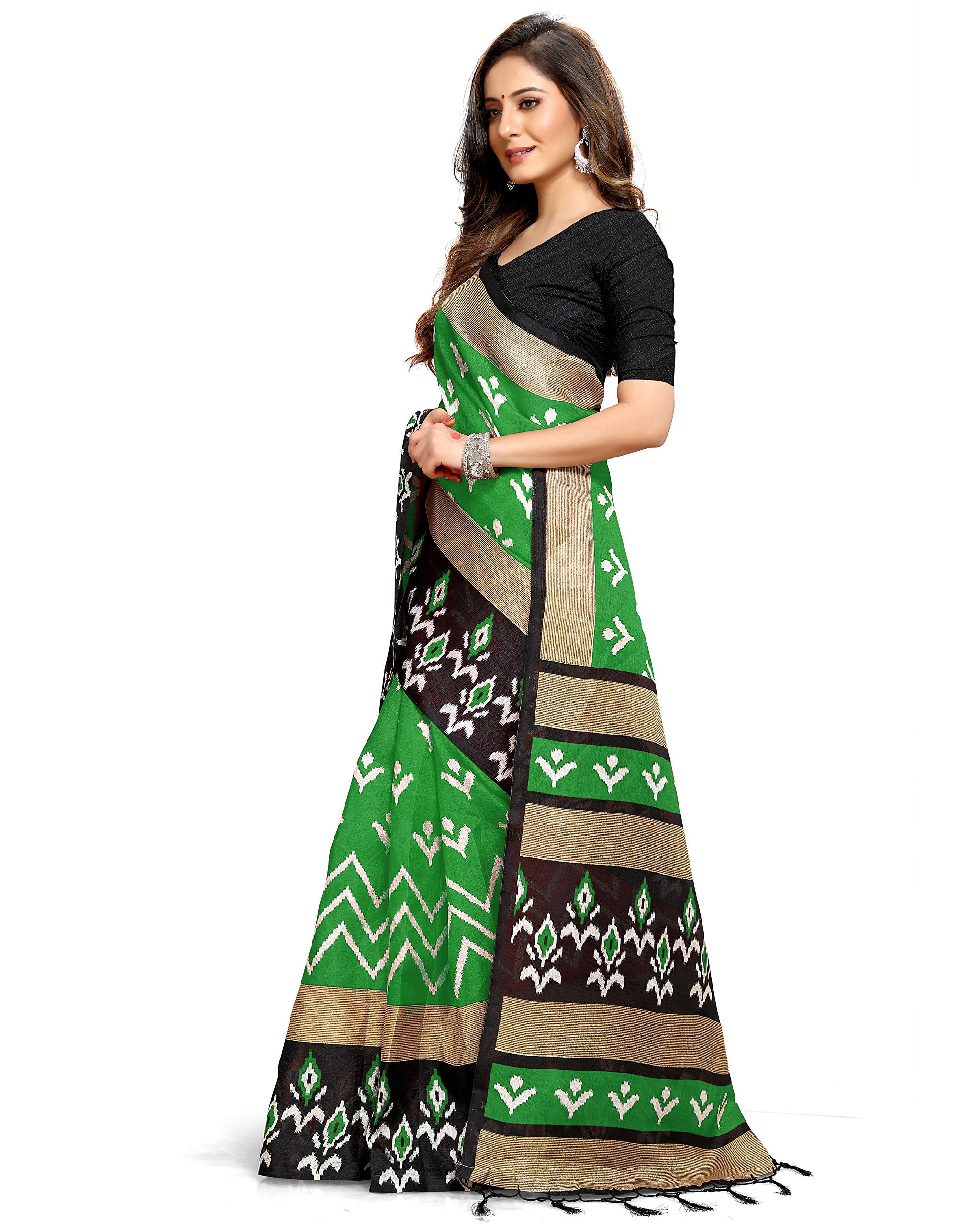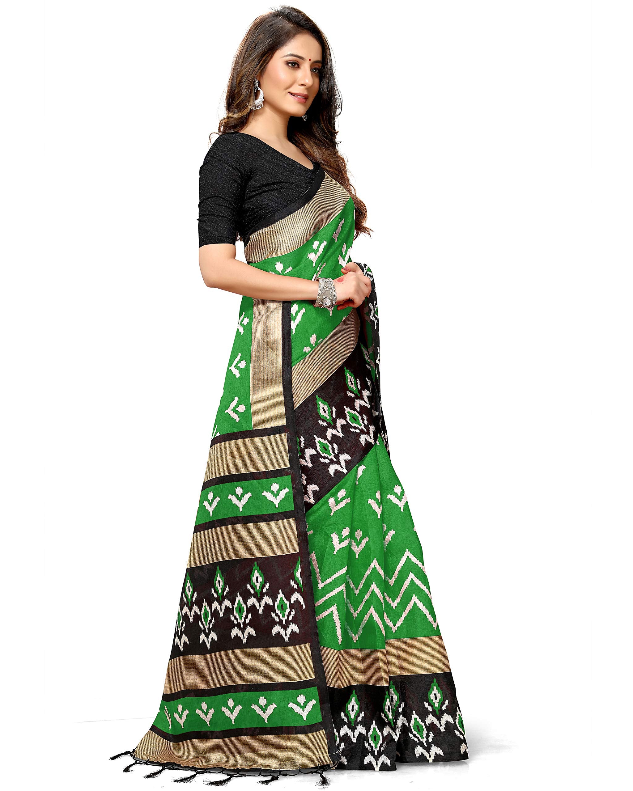 Rajnandini Women's Green Mysore Art Silk Saree Printed Traditional Saree with Blouse Piece