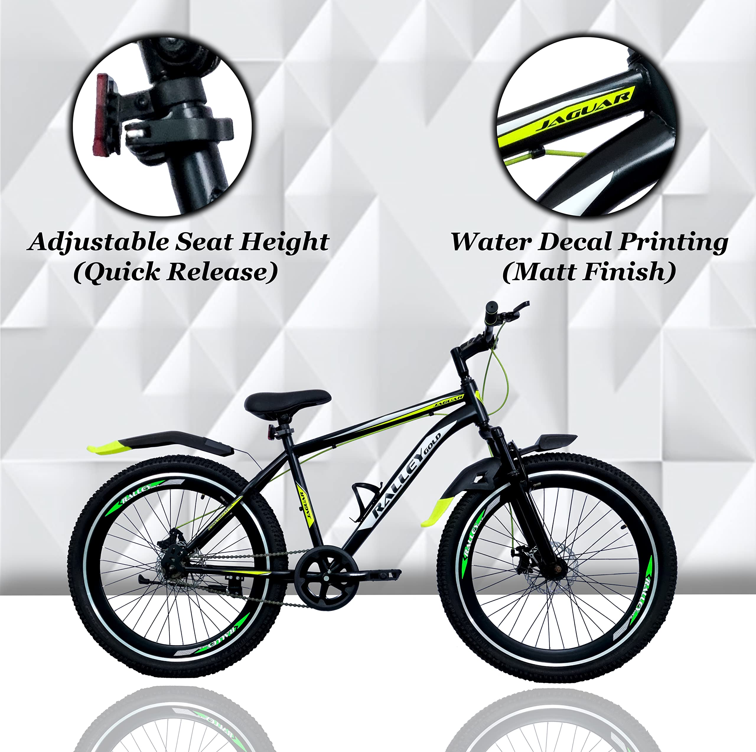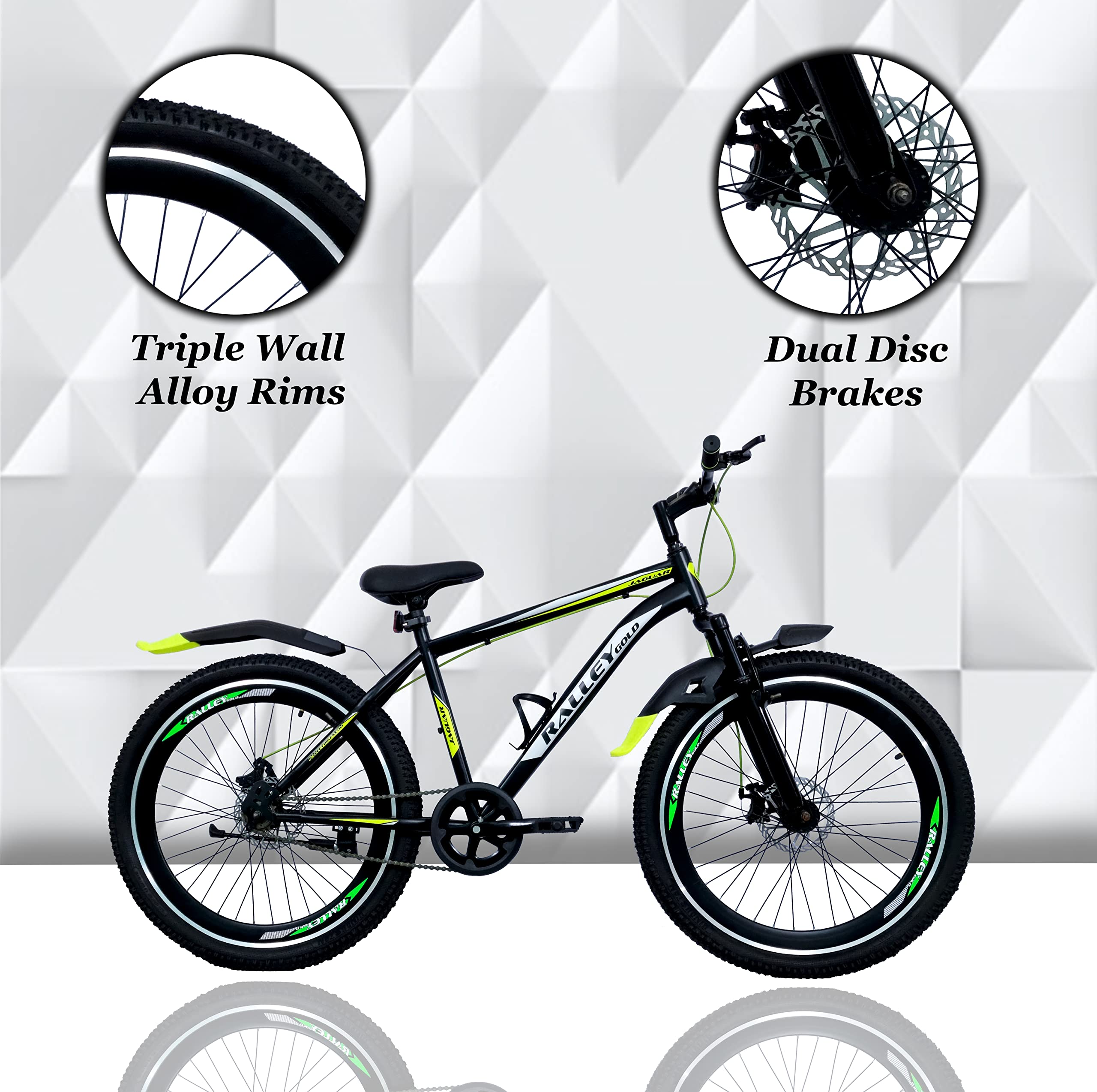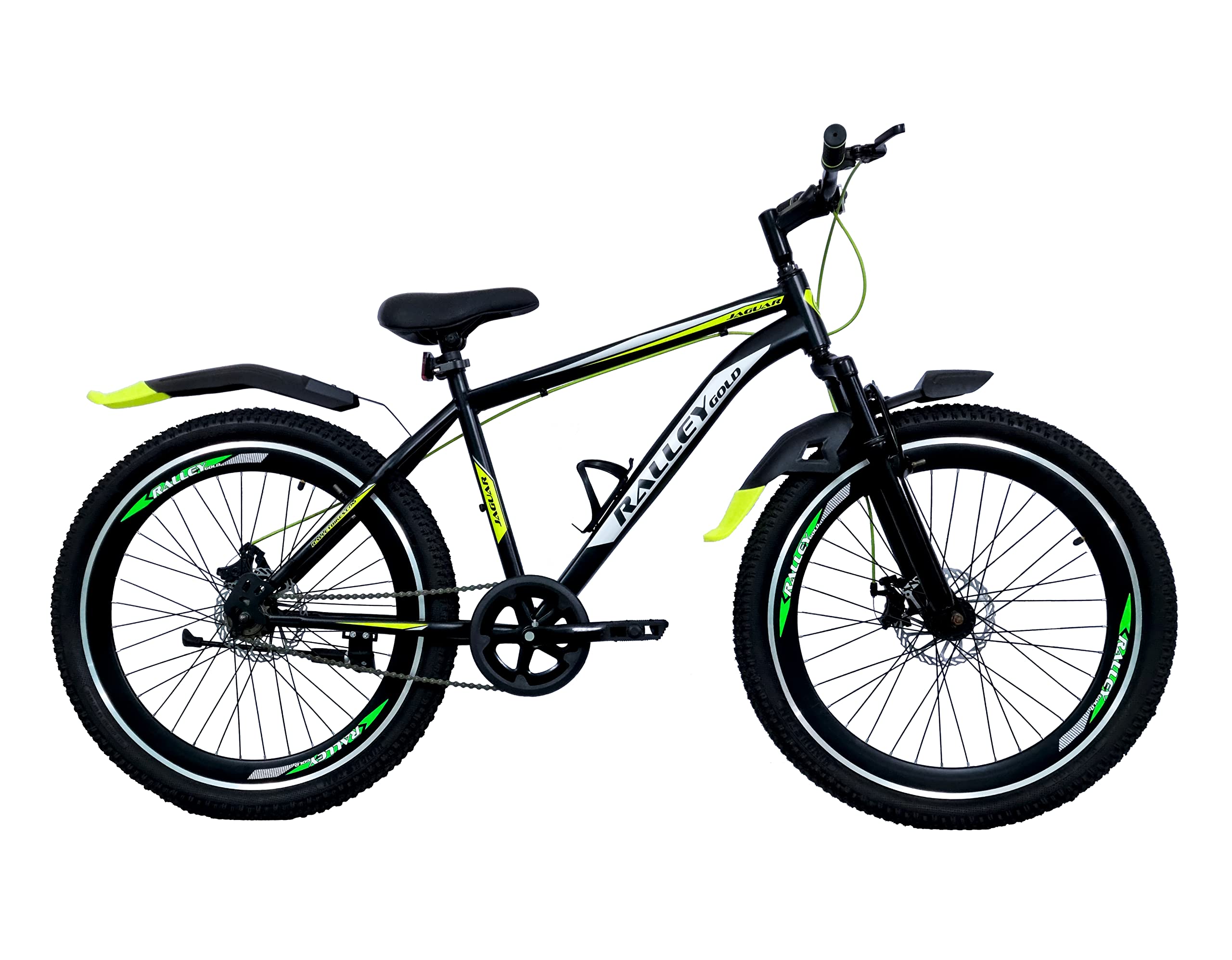 Ralley Jaguar 2.0 26T Full Size Bicycle | Front Suspension | Dual Disc Brakes | Triple Wall Alloy Rims | Single Speed | Matt Finish | Non Gear Cycle (Black/Green)