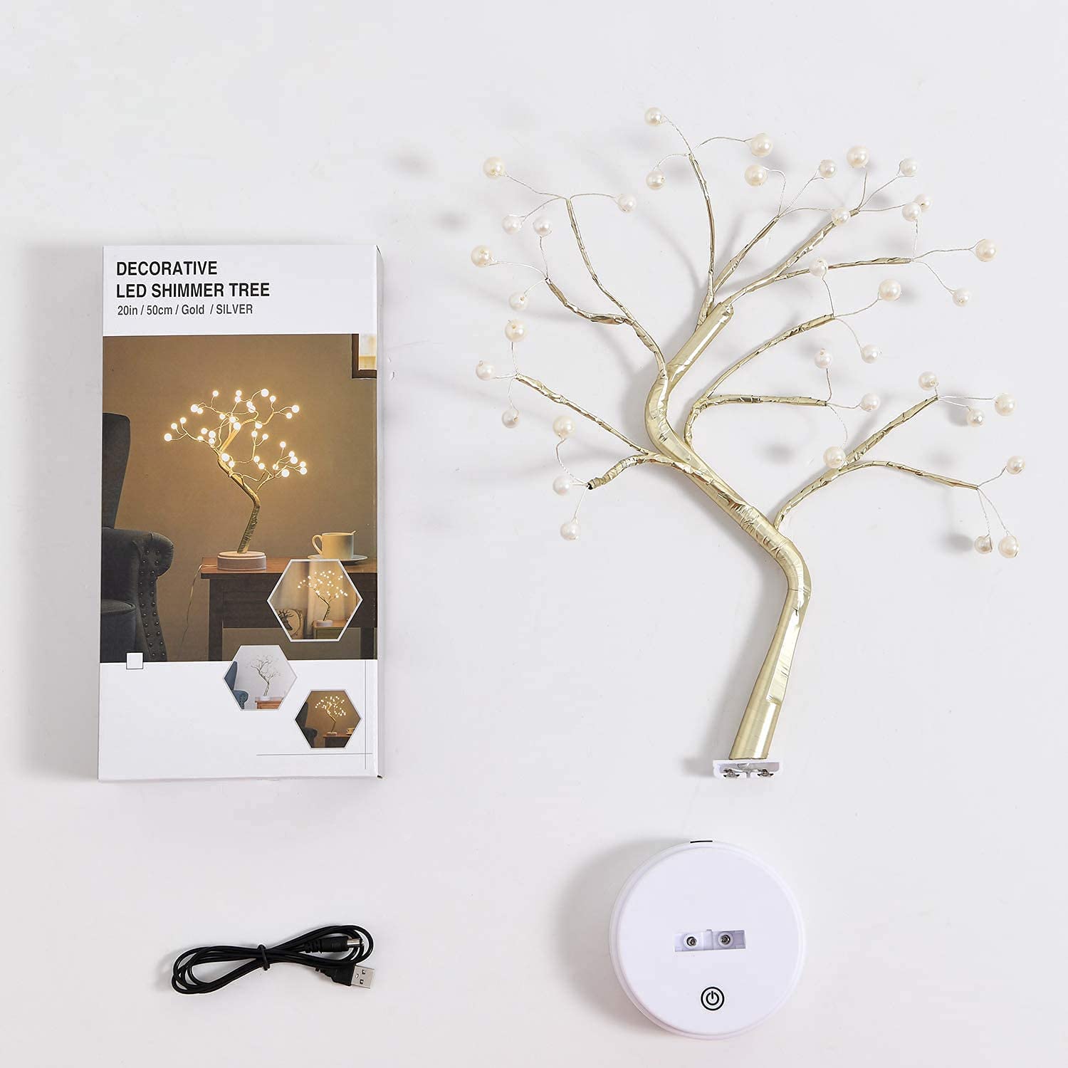 REFULGIX 36 LED Pearl Bonsai Tree Lamp with Touch Switch | USB & Battery Operated Decorative Light for Home, Bedroom, Festival, Gift Use (Warm White, Pack of 1)