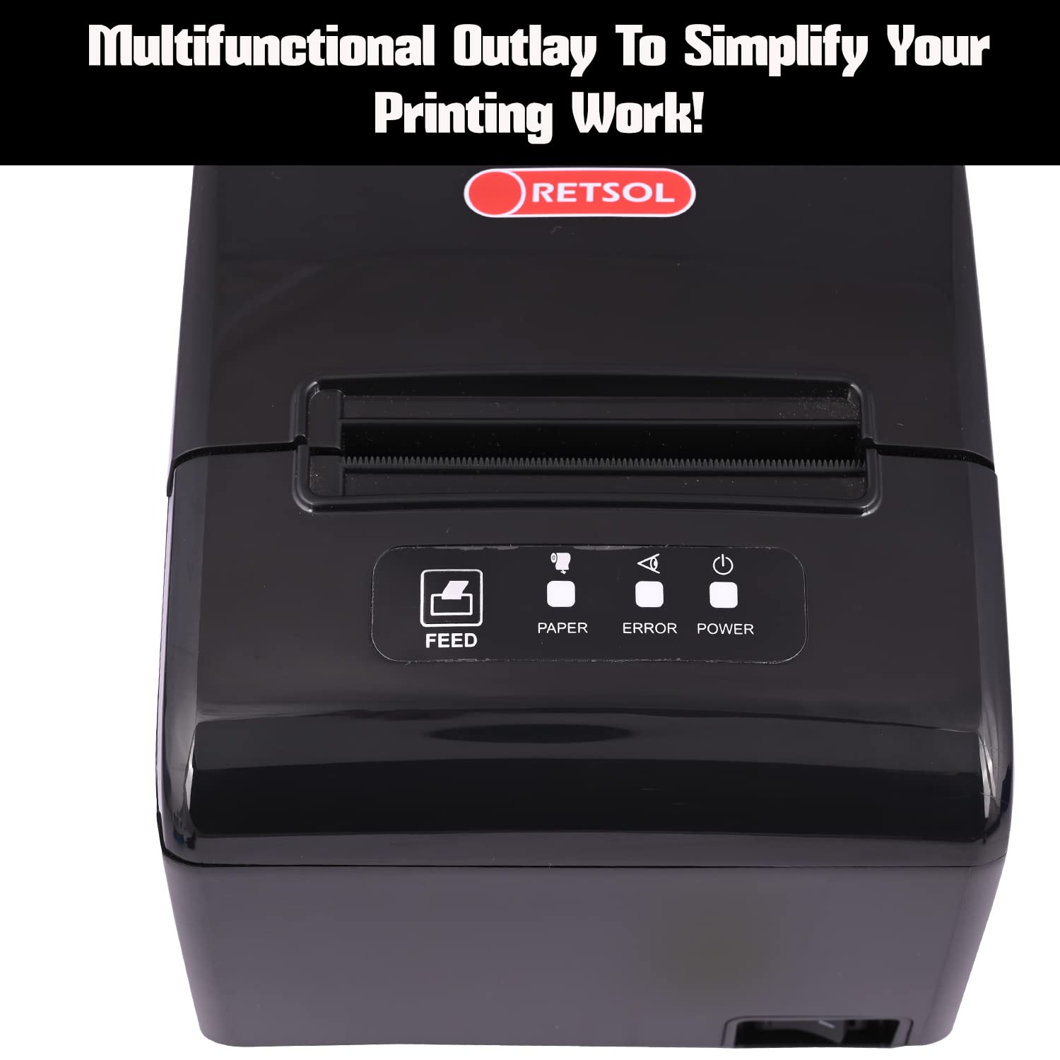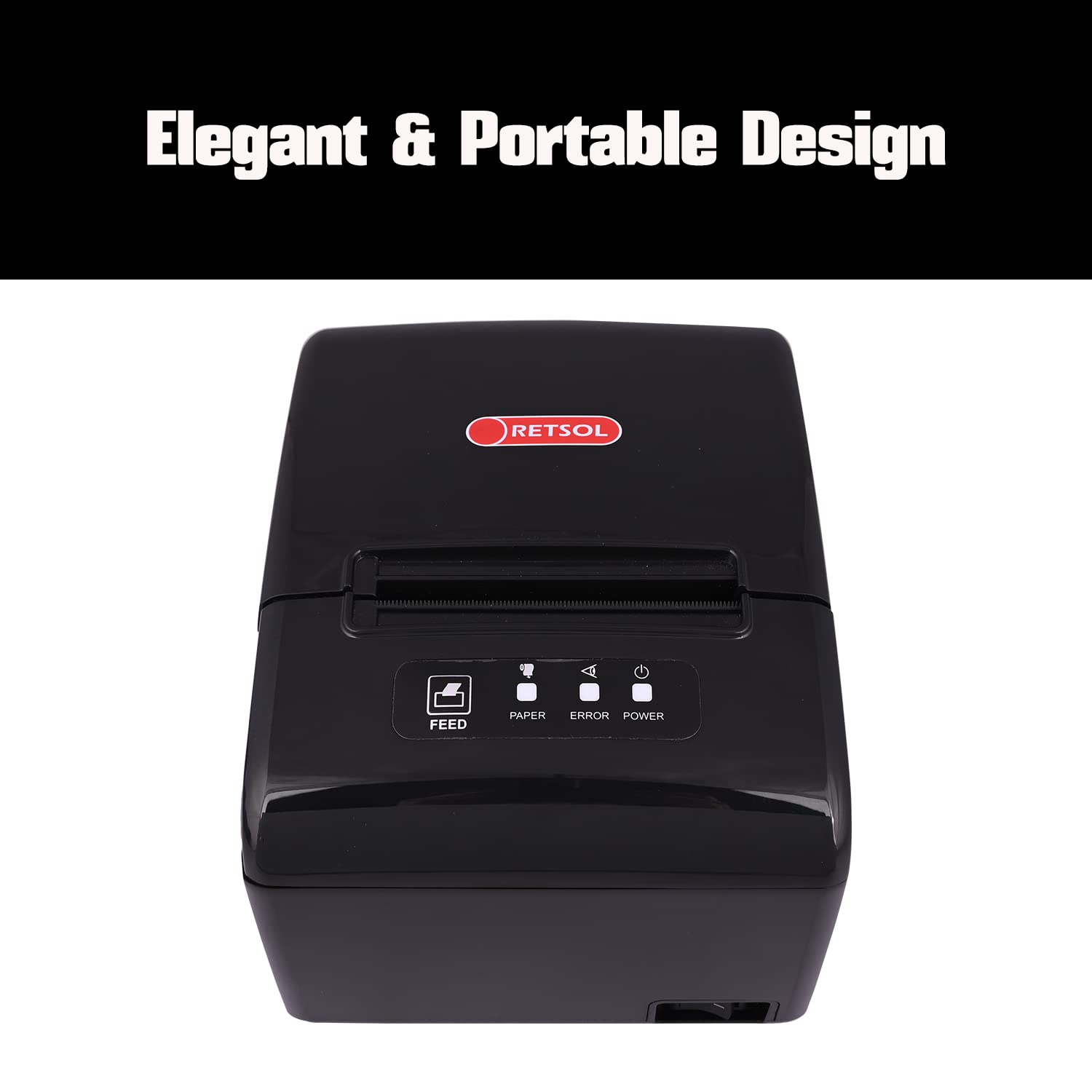 RETSOL RTP-82UE 200mm Thermal Receipt Printer with LAN Interface & USB Connectivity Monochrome Desktop Barcode Printing and Label Printing Compatible with Windows & Linux (1 Pc)