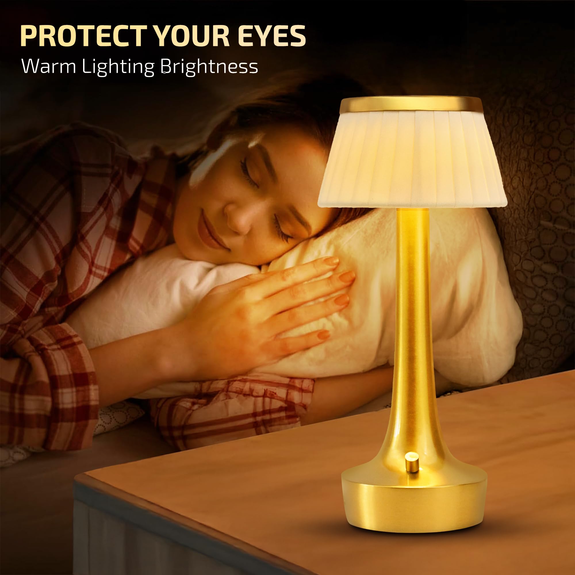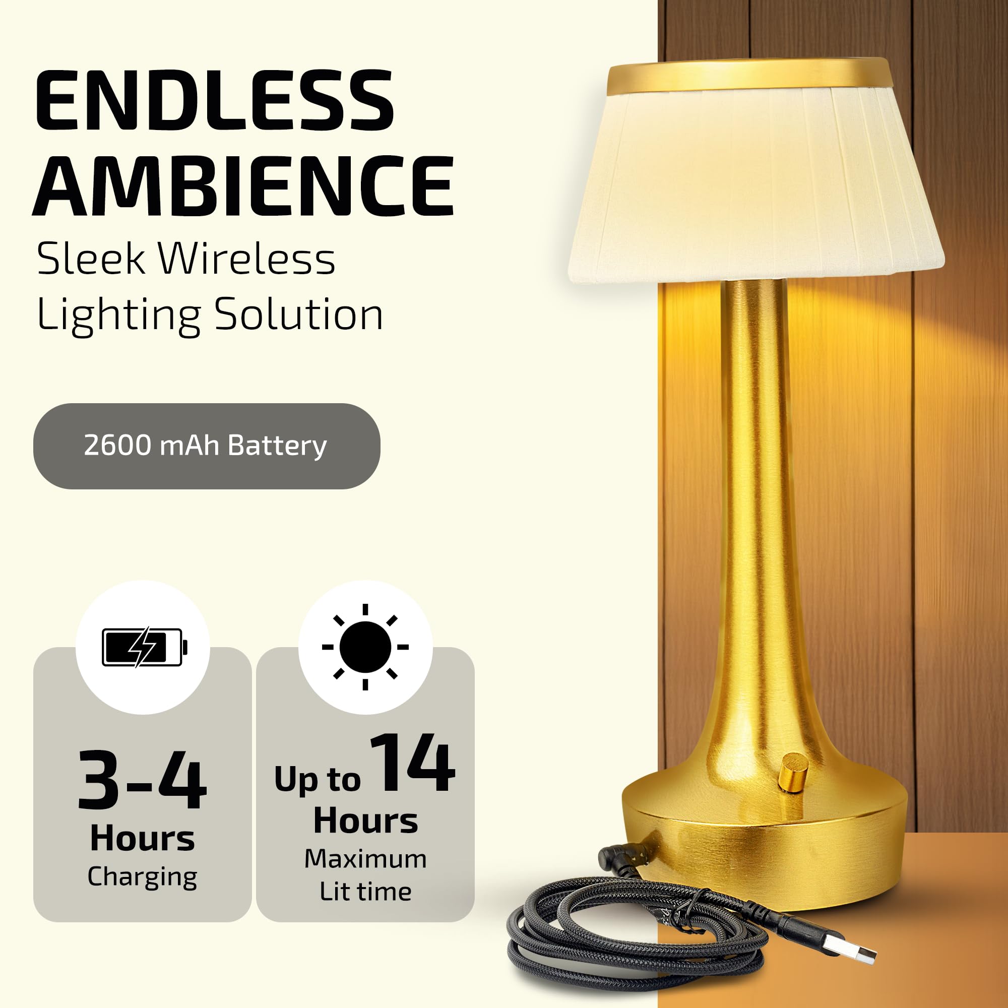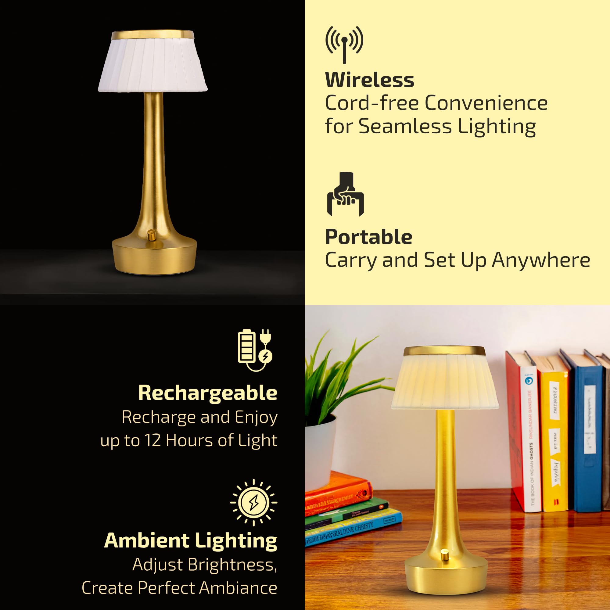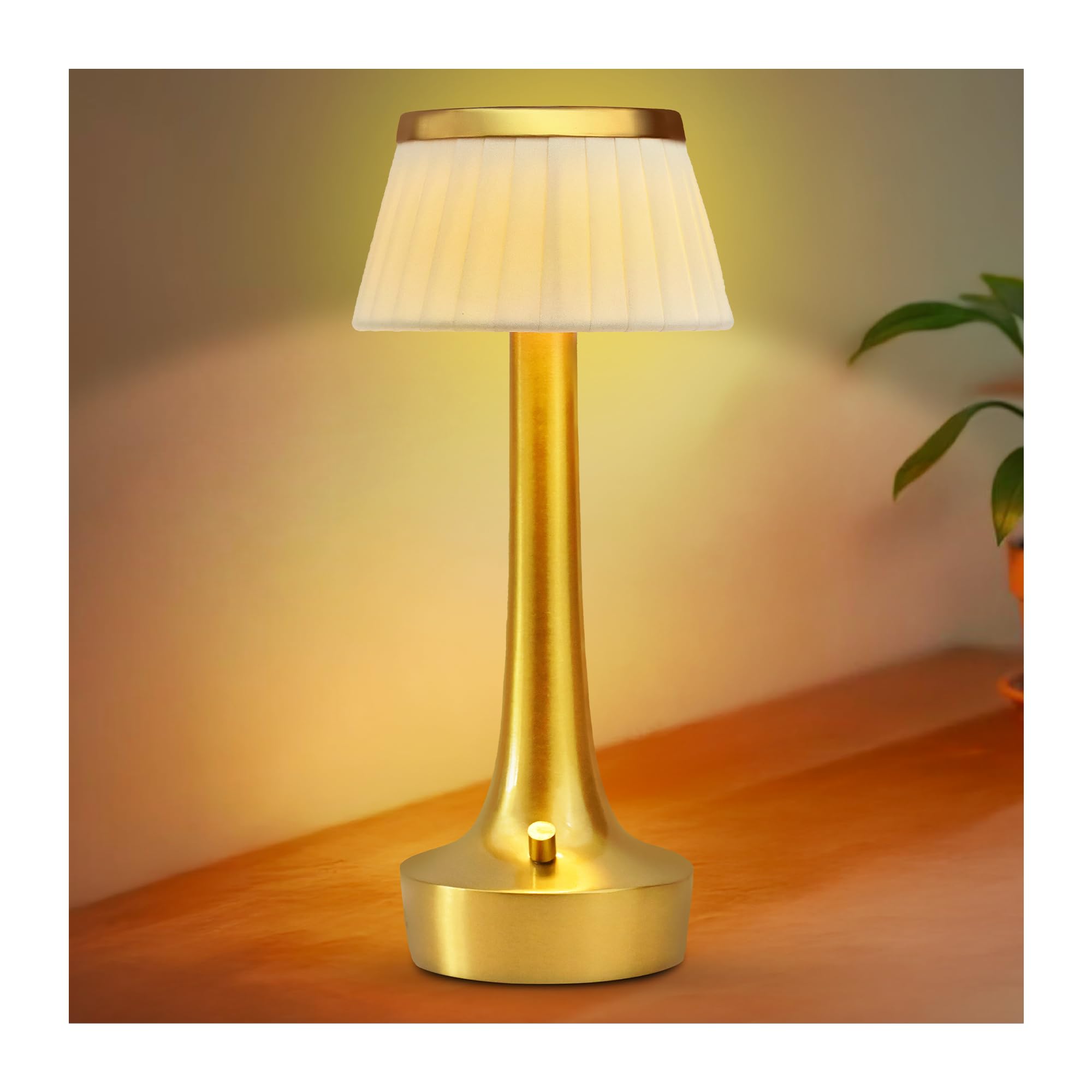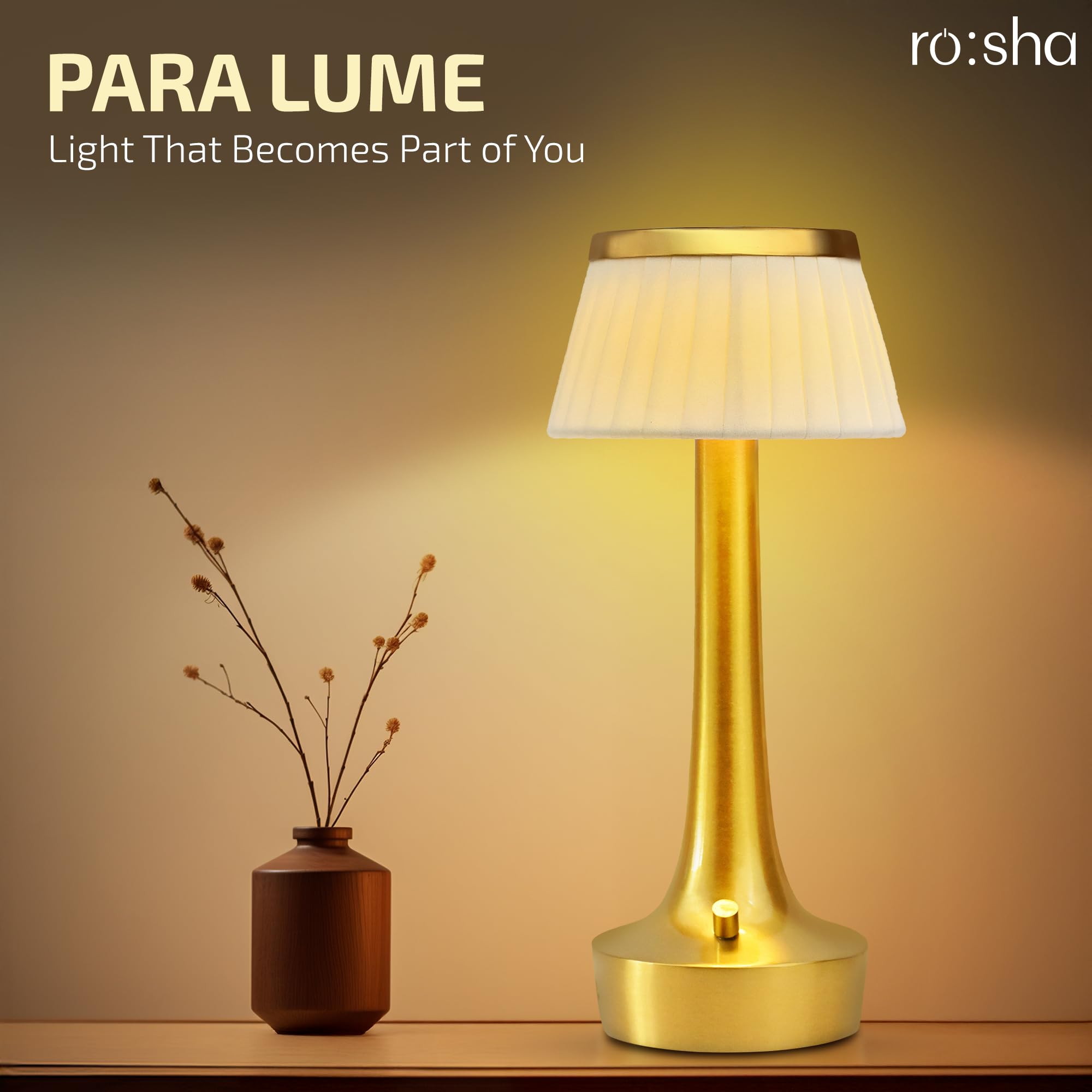 ro:sha Rosha Paralume Wireless Aluminium LED Table Lamp (Gold)| Upto 14 Hrs Battery Backup |2500 mAh Rechargeable Batteries | Lamps for Bedroom and Living Room