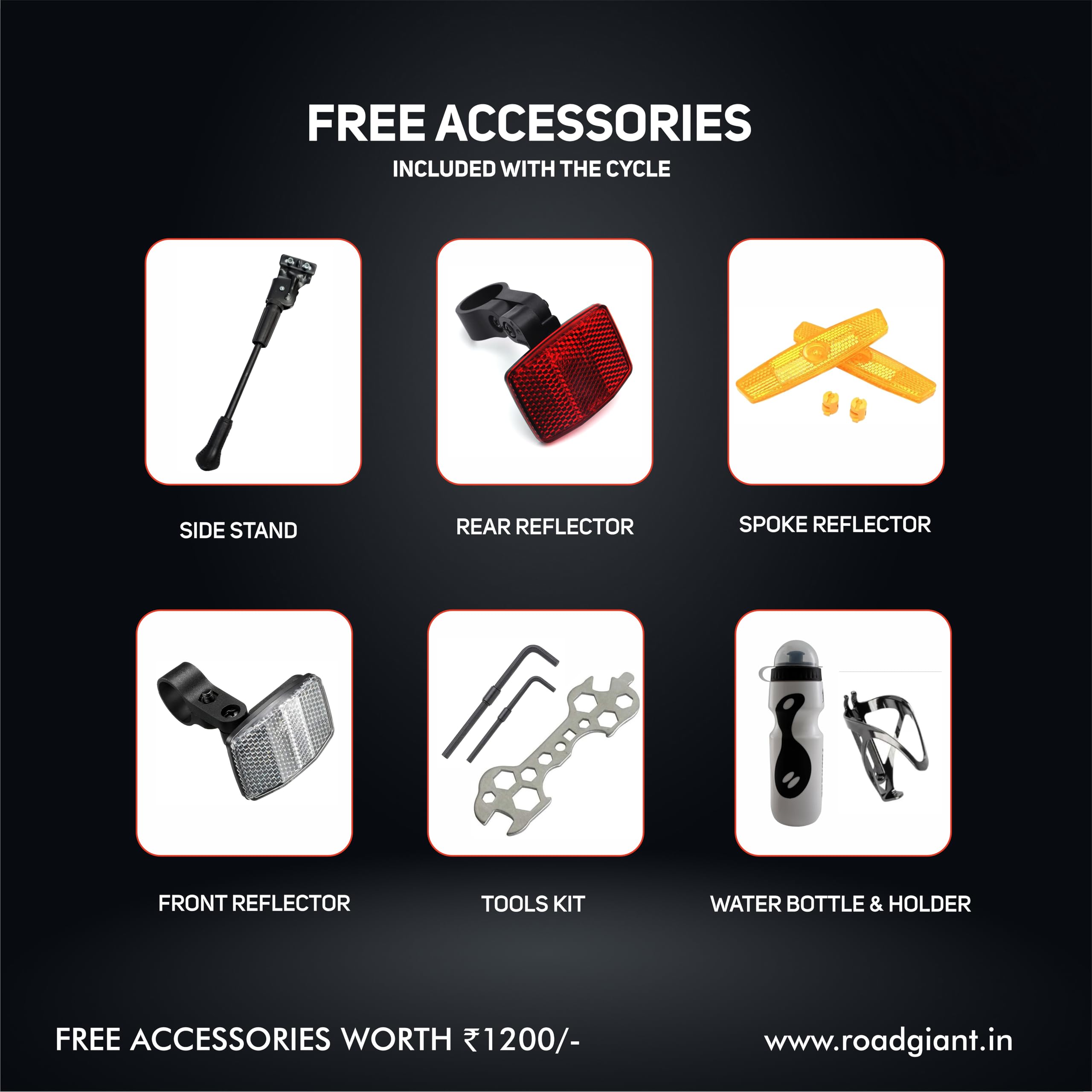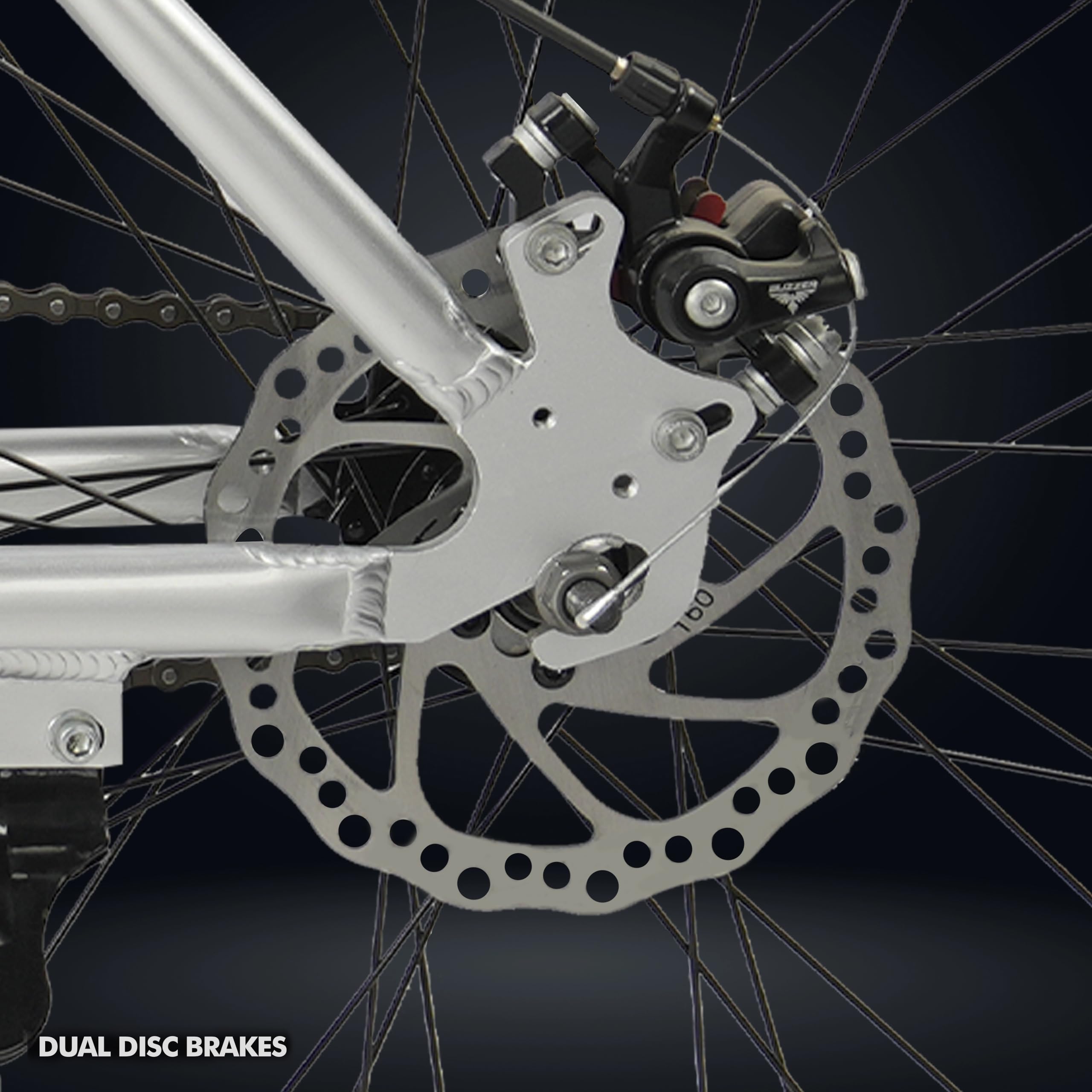 Brand: ROADGIANTColor: SilverFeatures: Durable All-Terrain Performance: Dual disc brakes for reliable stopping power, ensuring safety and stability on all types... Read more