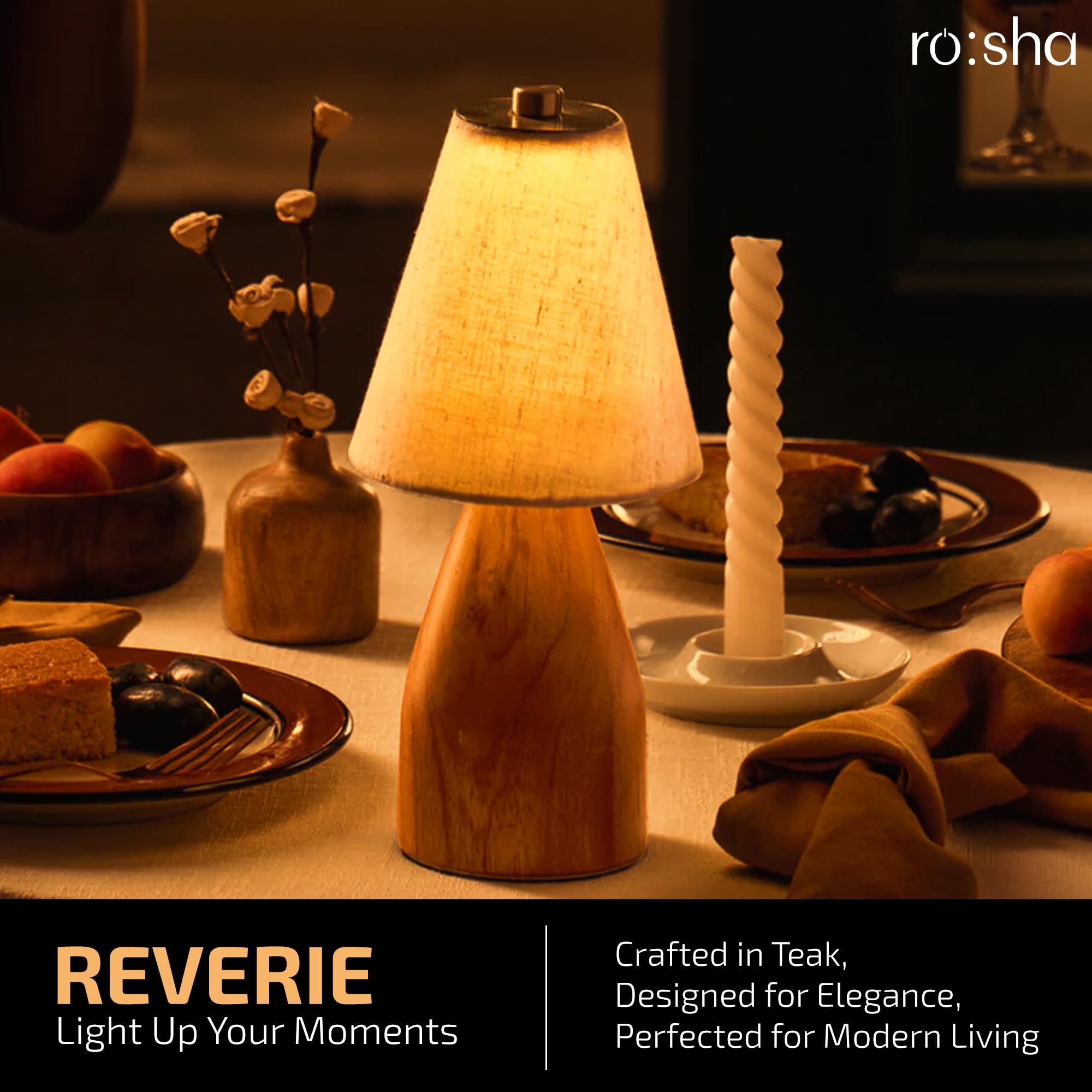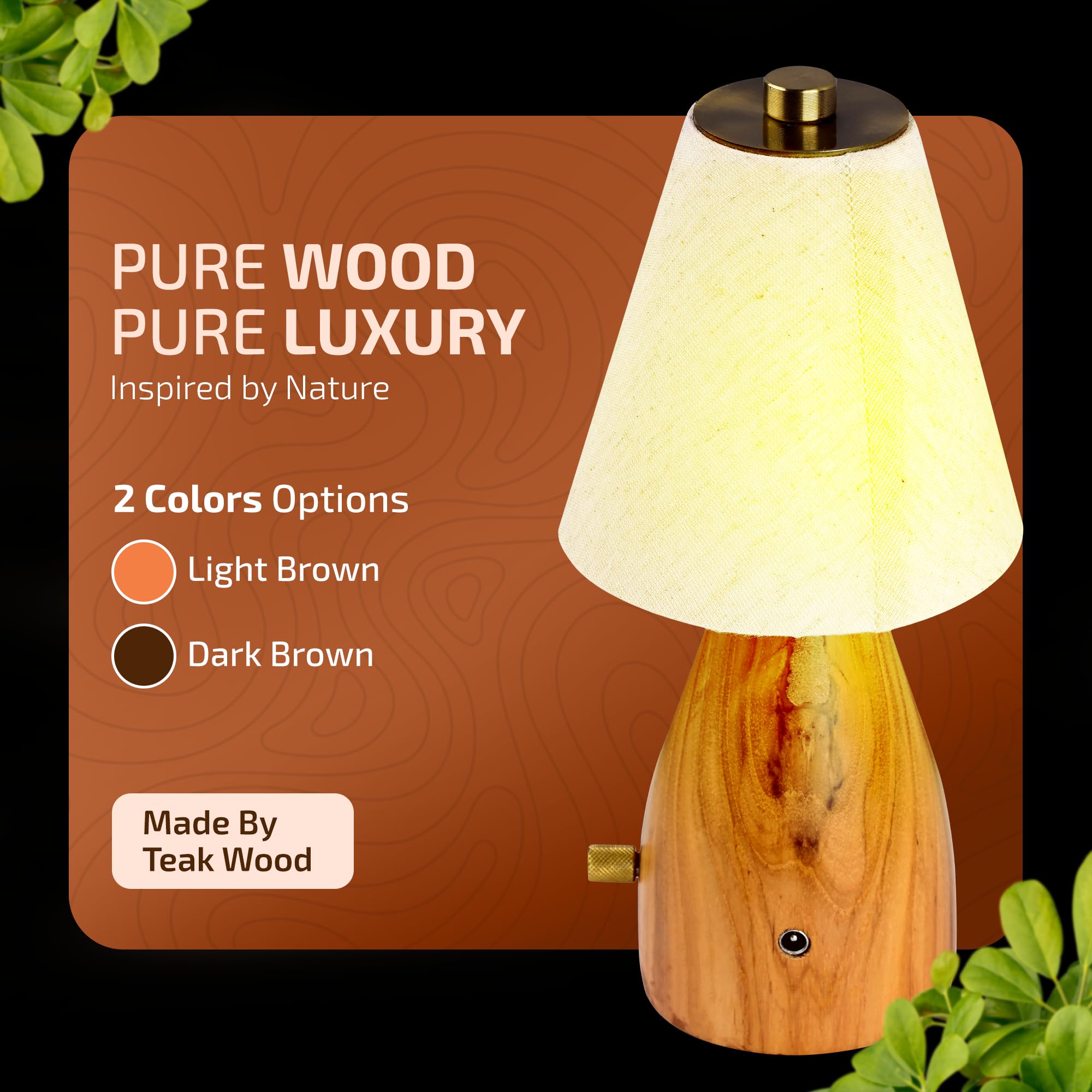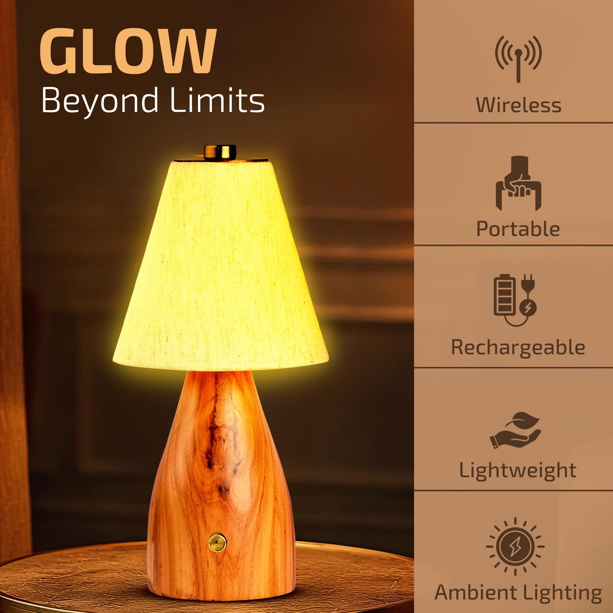 Rosha Reverie Wireless Wood LED Table Lamp (Light Brown)| Upto 14 Hrs Battery Backup |2600 mAh Rechargeable Batteries | Lamps for Bedroom and Living Room