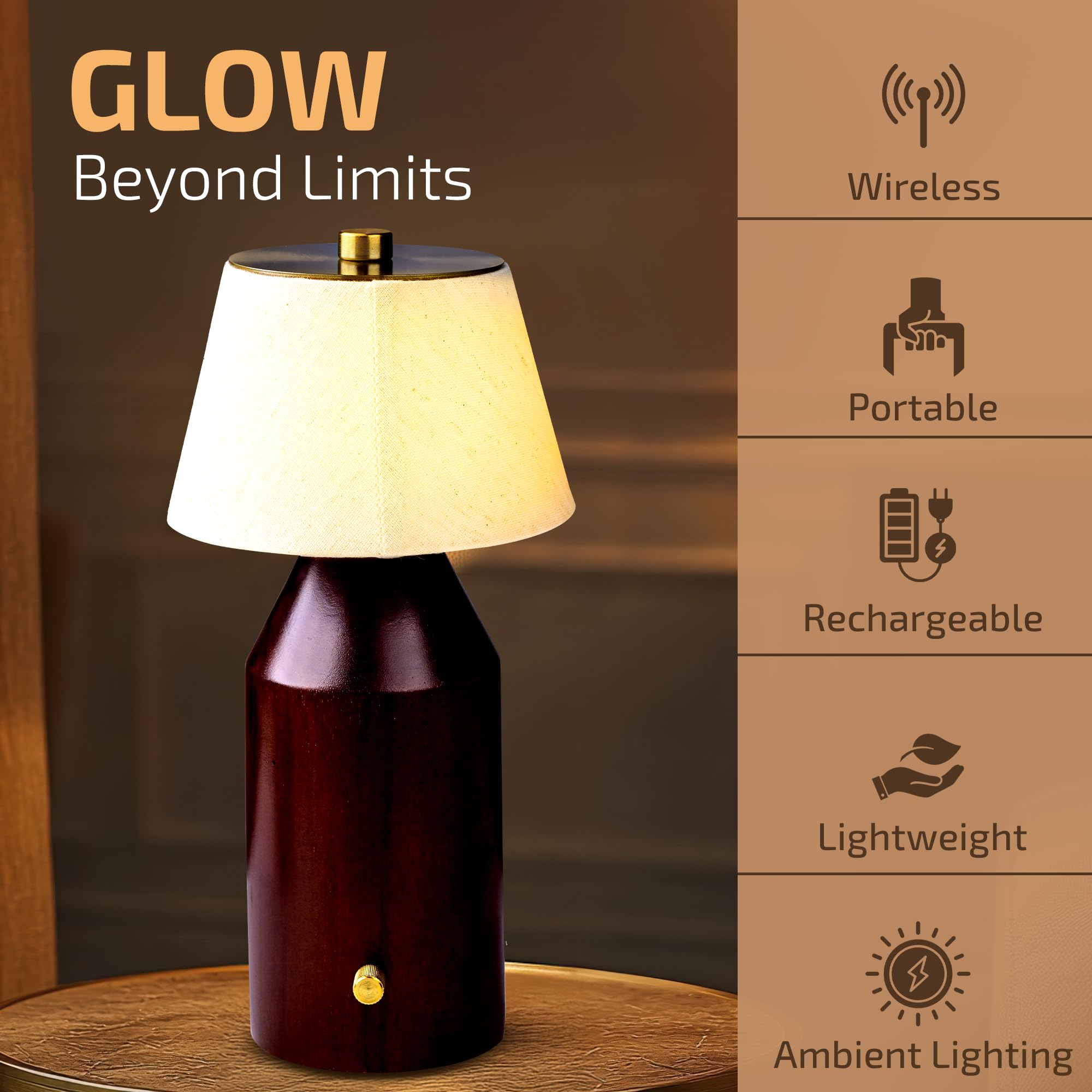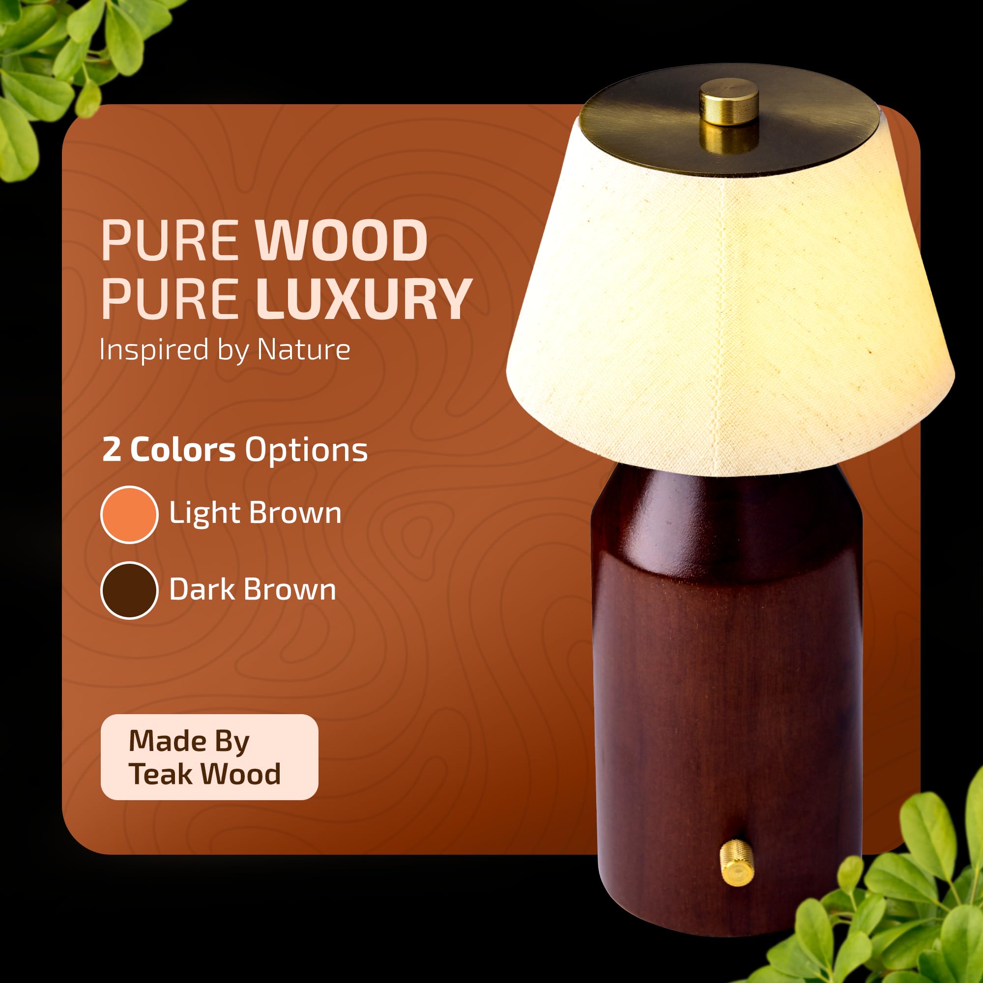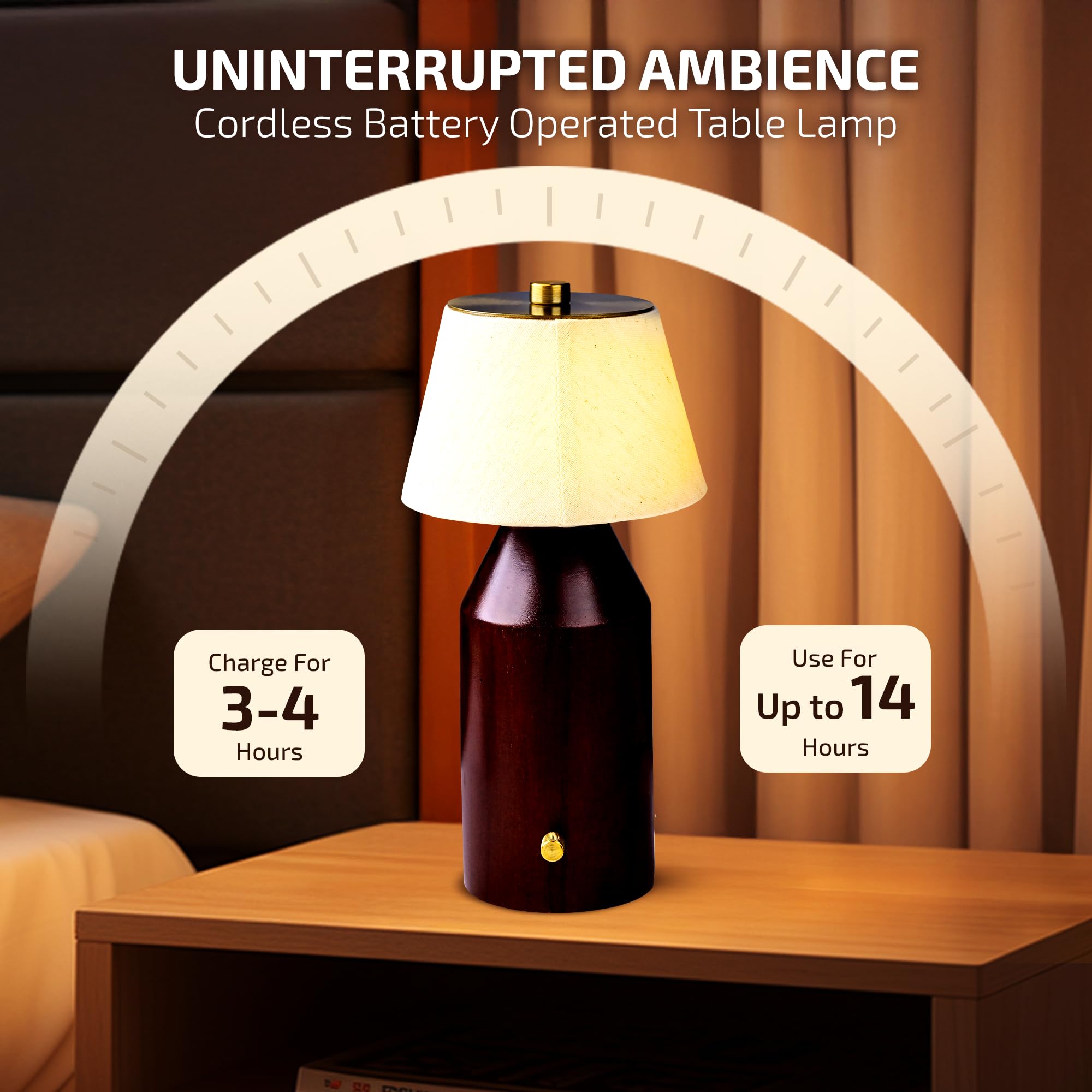 Rosha Sylva Wireless Wood LED Table Lamp (Dark Brown)|Upto 14 Hrs Battery Backup |2600 mAh Rechargeable Batteries Lamps for Bedroom and Living Room