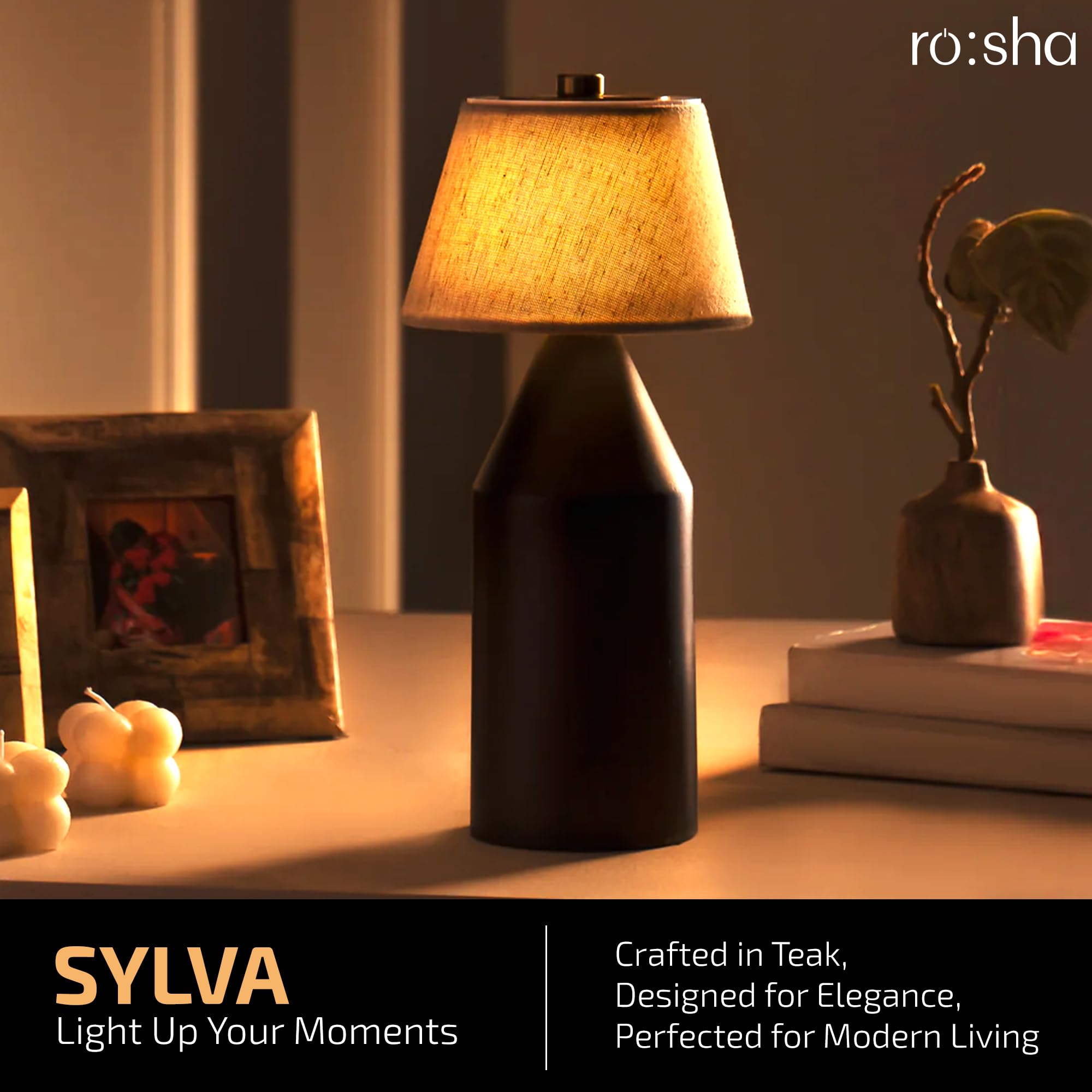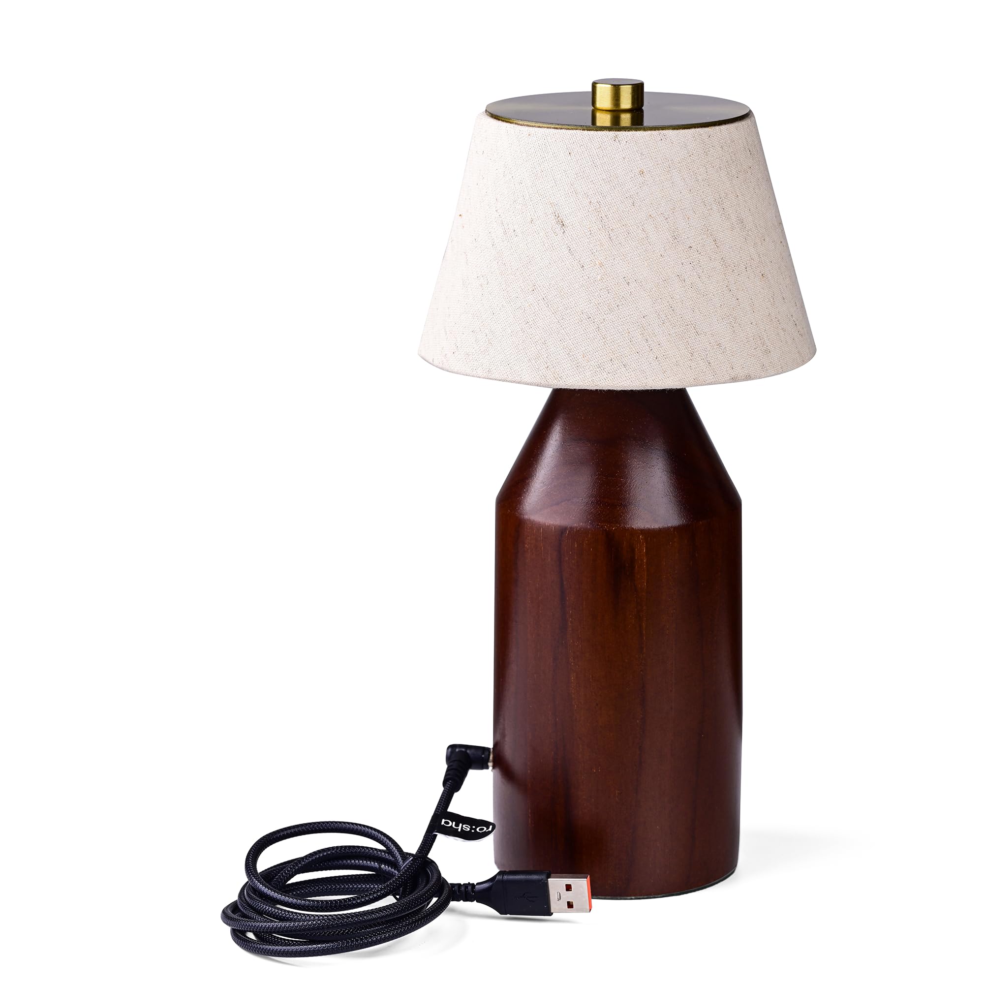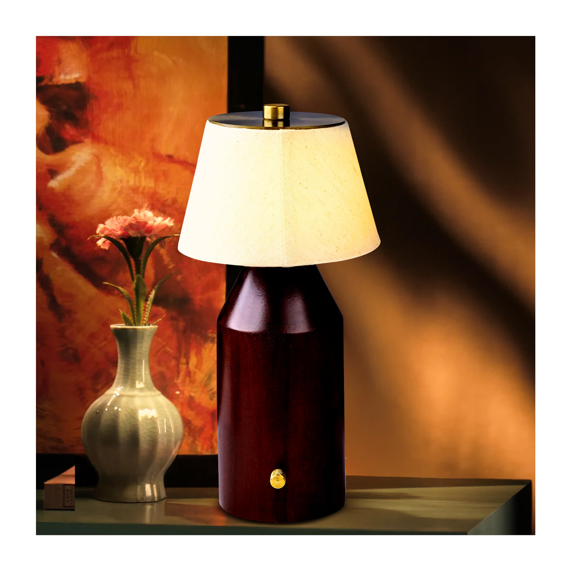 Rosha Sylva Wireless Wood LED Table Lamp (Dark Brown)|Upto 14 Hrs Battery Backup |2600 mAh Rechargeable Batteries Lamps for Bedroom and Living Room