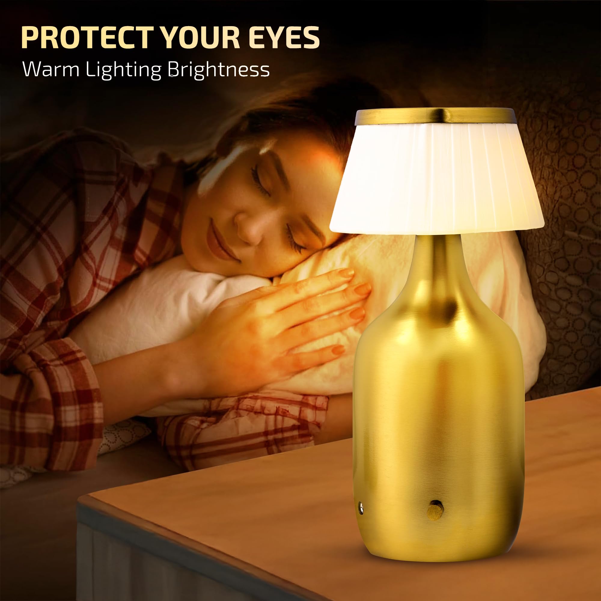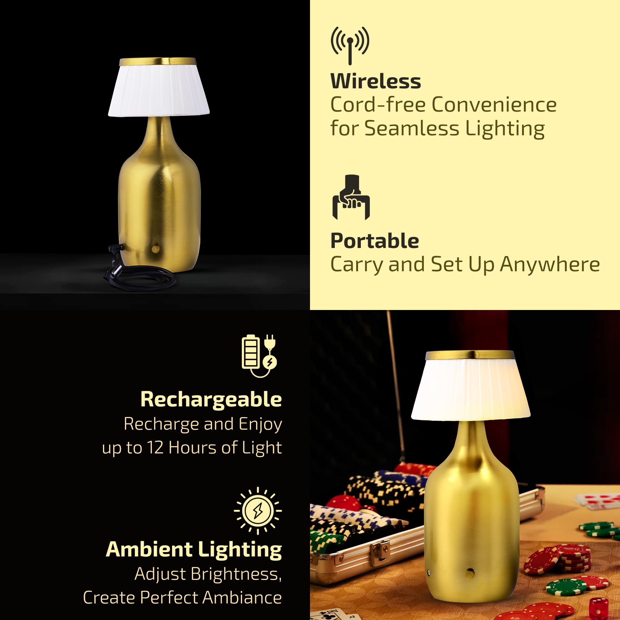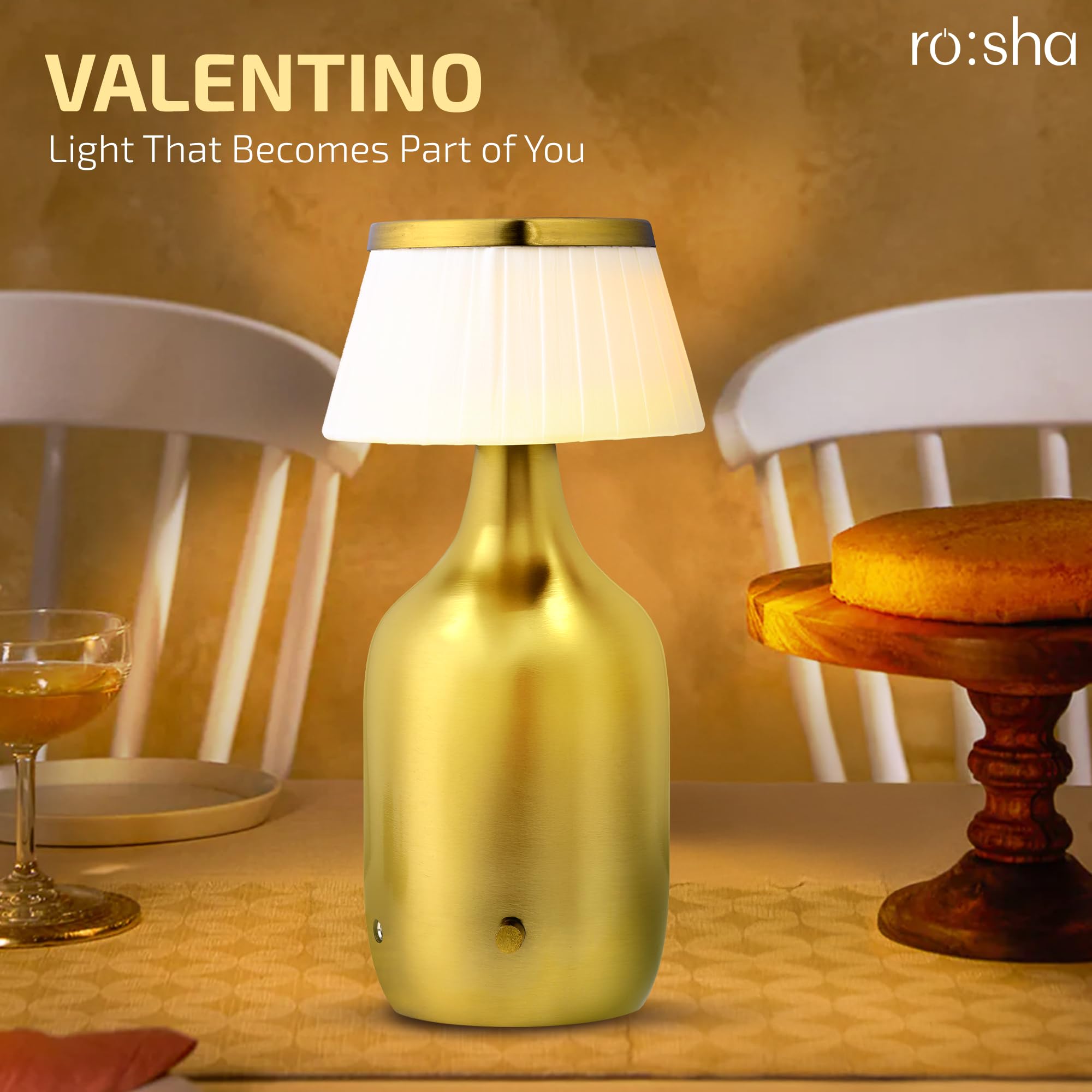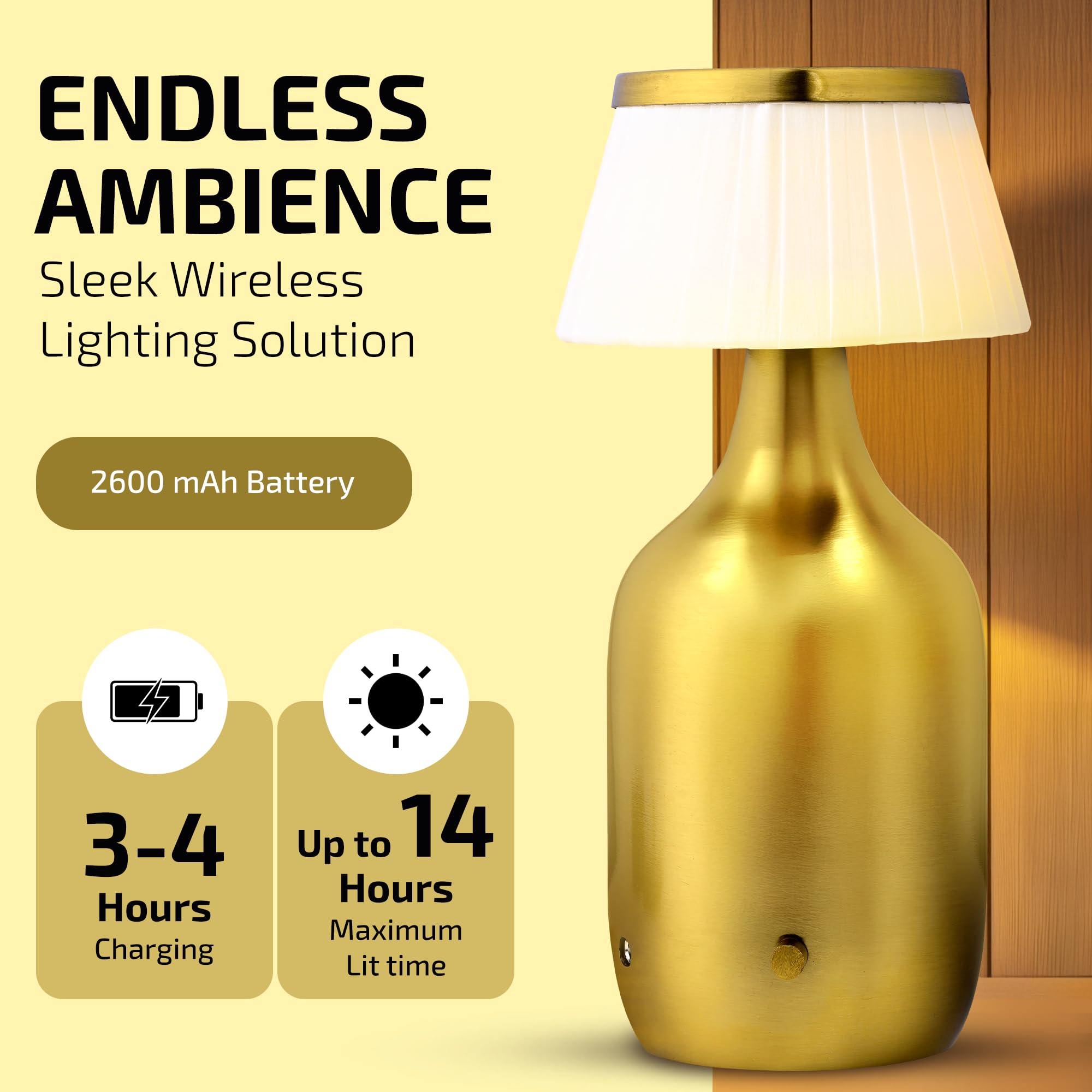 Rosha Valentino Wireless Aluminium LED Table Lamp (Gold)| Upto 14 Hrs Battery Backup |2500 mAh Rechargeable Batteries | Lamps for Bedroom and Living Room