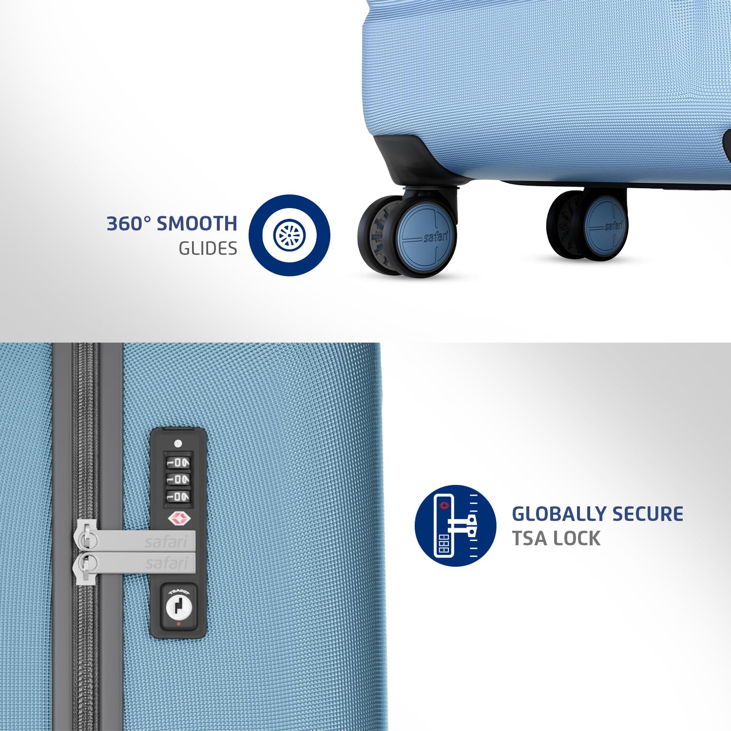 • Globally approved TSA Lock: Sturdy zippers and integrated recessed TSA lock ensure enhanced security for your belongings.