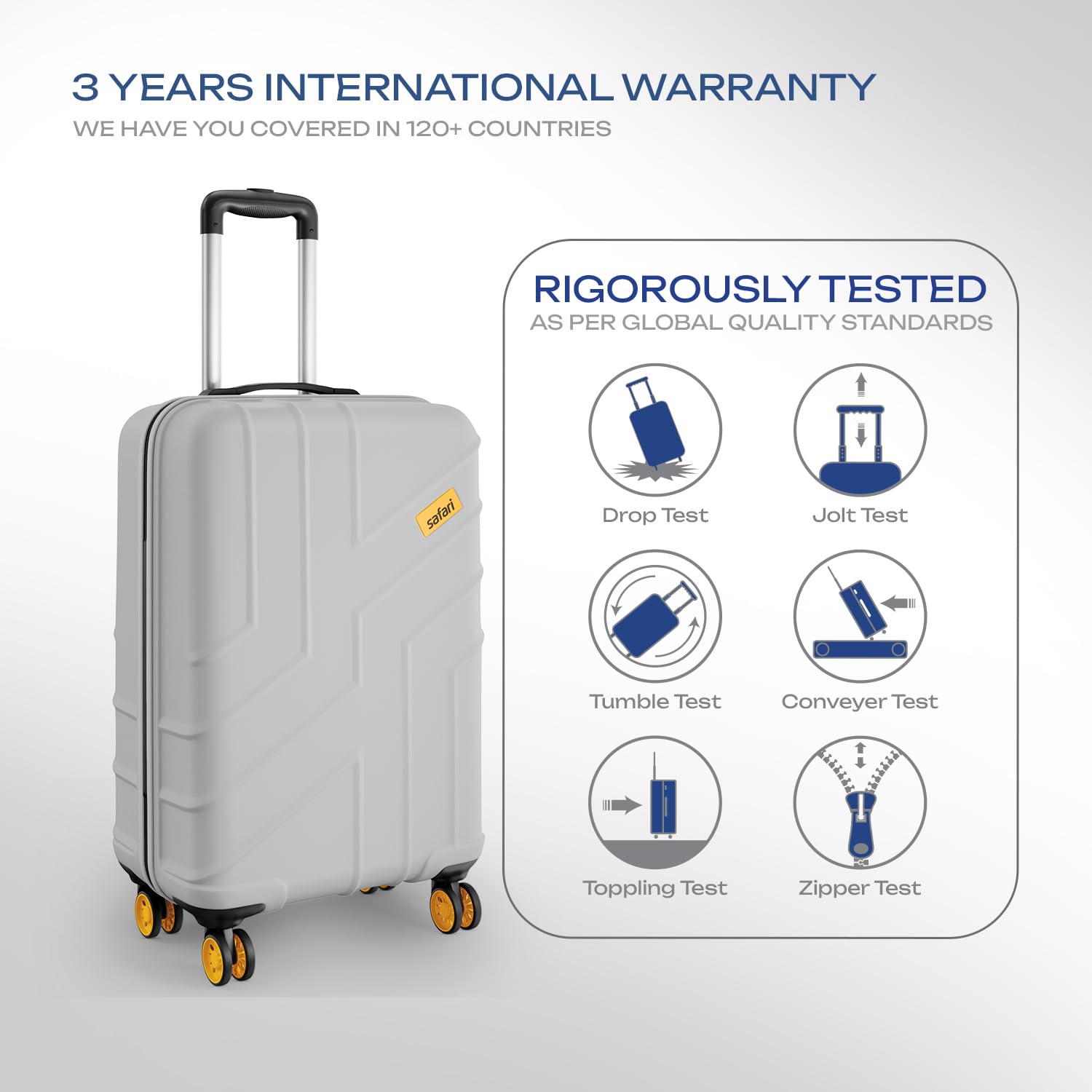 Introducing Safari Stratos - Lightweight trolley bag, designed to turn heads. Never unseen, this trolley bag, crafted from premium, unbrekable polycarbonate material, offers the perfect blend of lightweight comfort and ultimate durability. It features 8 smooth spinner wheels with 360º Wheeling, that glide effortlessly across all terrains. The 3 digit combination lock and sturdy zippers ensure your belongings are super secure. Proudly MADE IN INDIA, this trolley bag comes with 3 years International warranty against manufacturing defects.