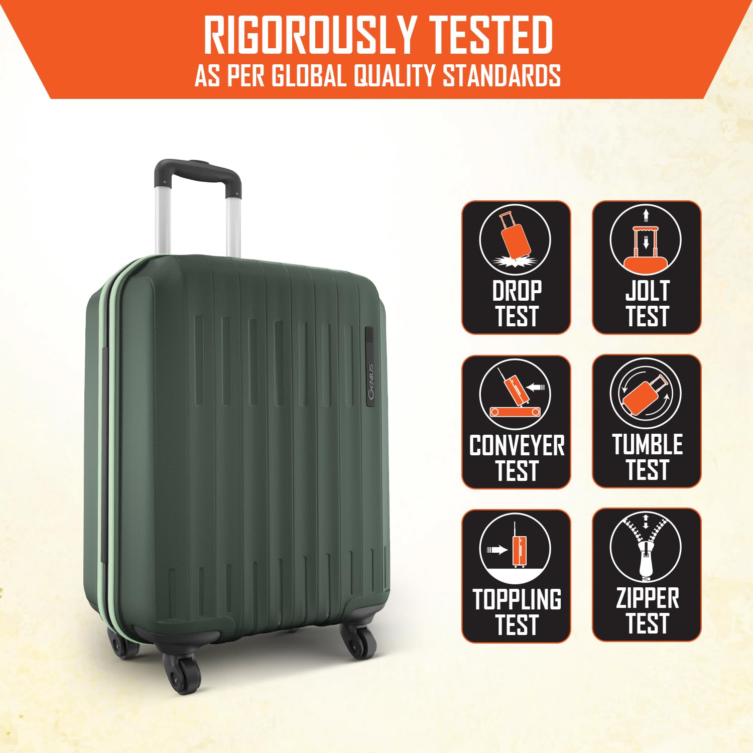 Safari Genius Alley 55cm Cabin Trolley Bag Hard Case Polypropylene, 4 Spinner Wheels, 360 Degree Wheeling Carry on Luggage, Travel Bag, Suitcase for Travel, Trolley Bags for Travel, Deep Forrest