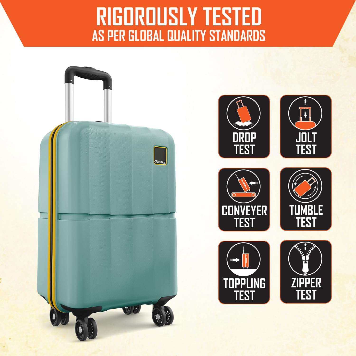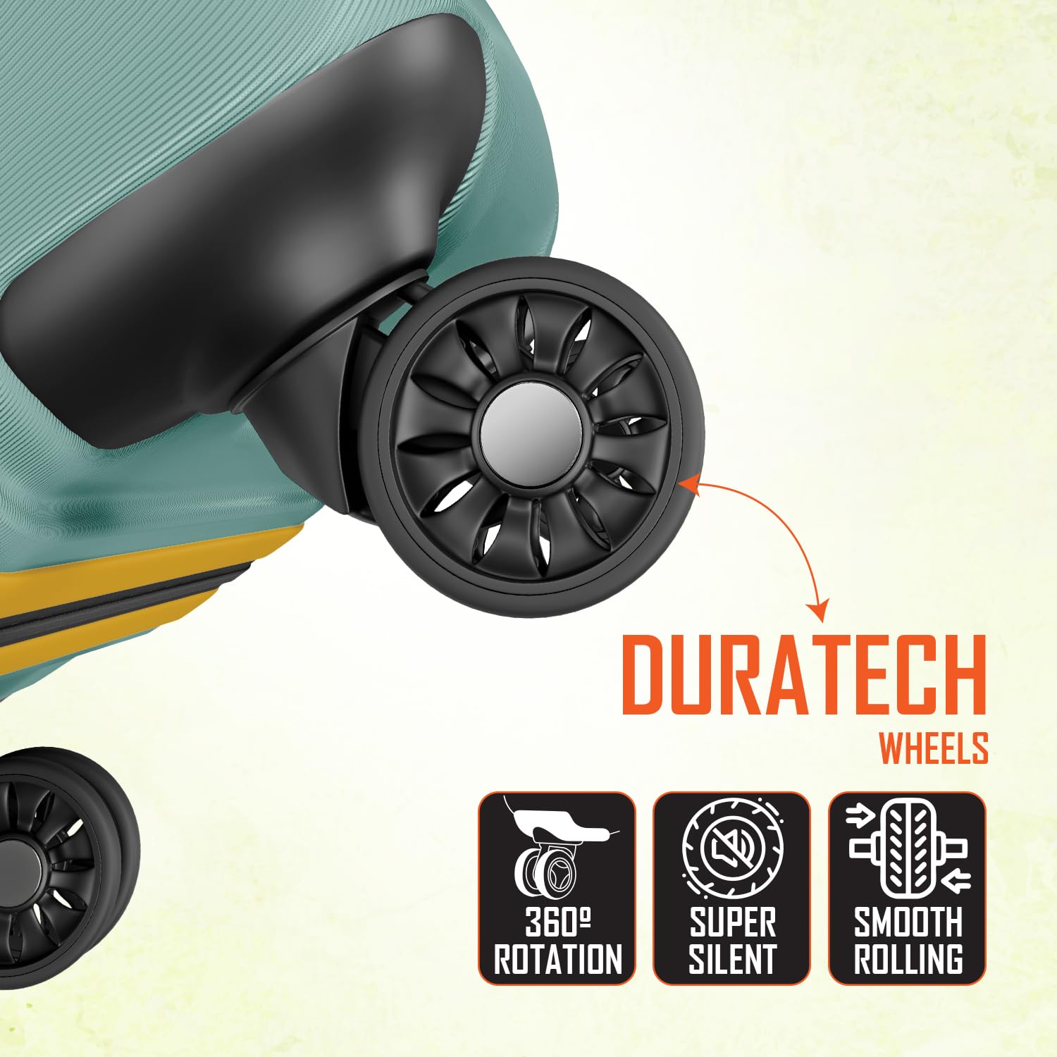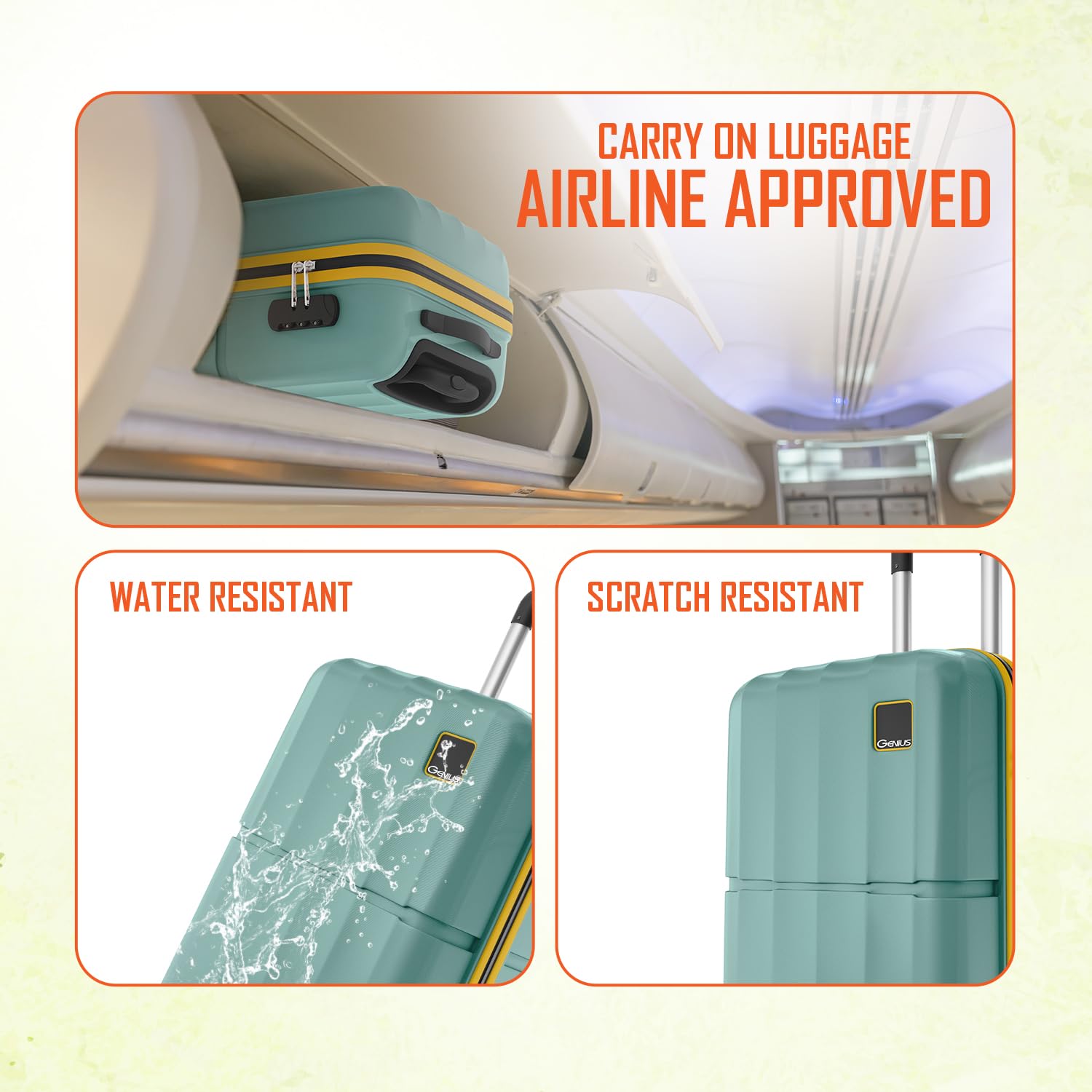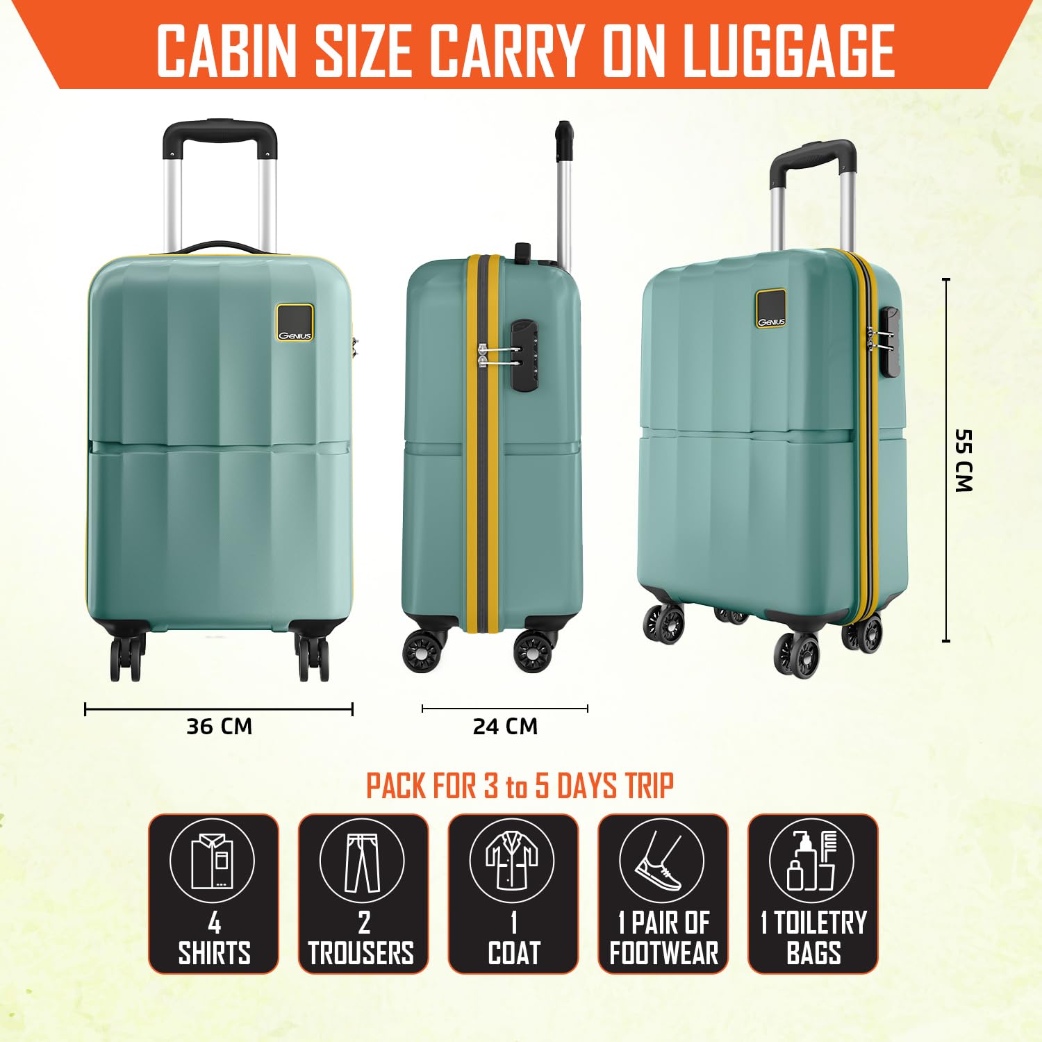Safari Genius Theo 8 Wheels 55cm Cabin Size Trolley Bag, Hard Case Polycarbonate, 360 Degree Wheeling Small Carry-on Luggage, Suitcase for Travel, Trolley Bags for Travel, Sage Green