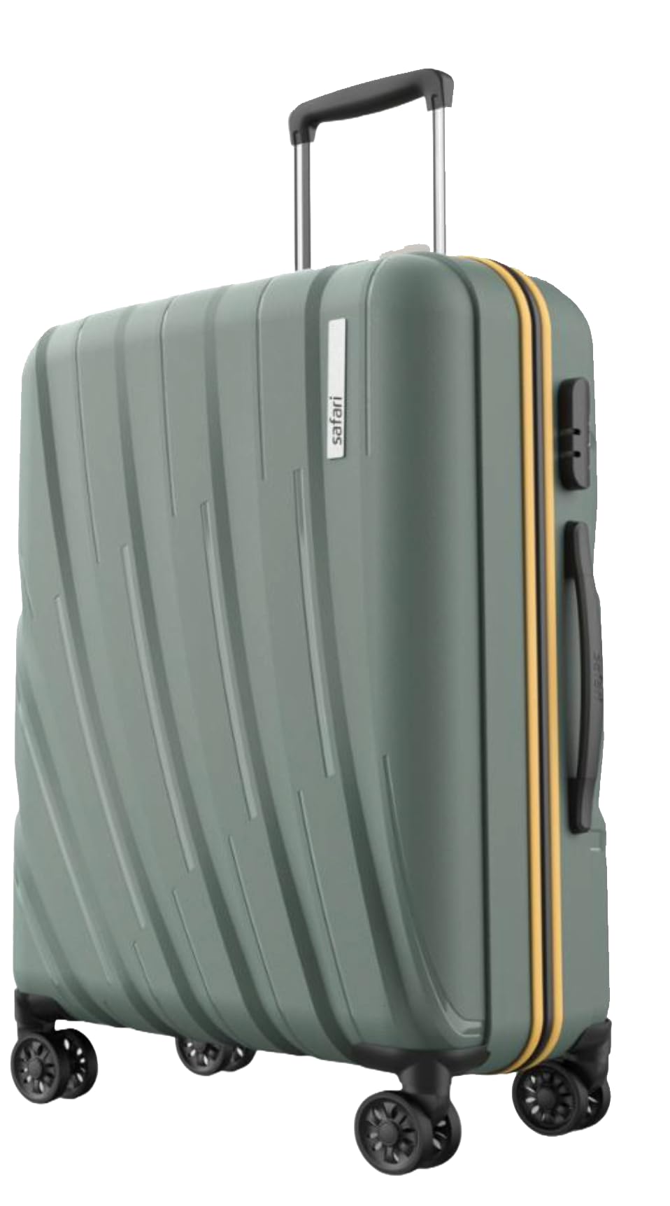 Safari Polyproplyene Hard Shell Cairo 8 Wheels, 5 Years Warranty (Cabin & Check-in) Trolley Spinner Luggage Set of 3, 55Cm, 66Cm & 75Cm, Small, Medium, Large (SAGE Green)