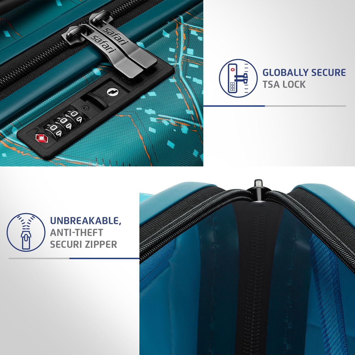 Safari Select Brooklyn 55 Cms Cabin Trolley Bag Hard Case Polycarbonate 8 Wheels with 360 Degree Rotation, Recessed TSA Lock, Anti-Theft Zipper, Trolley Bags for Travel, Suitcase for Travel, Teal