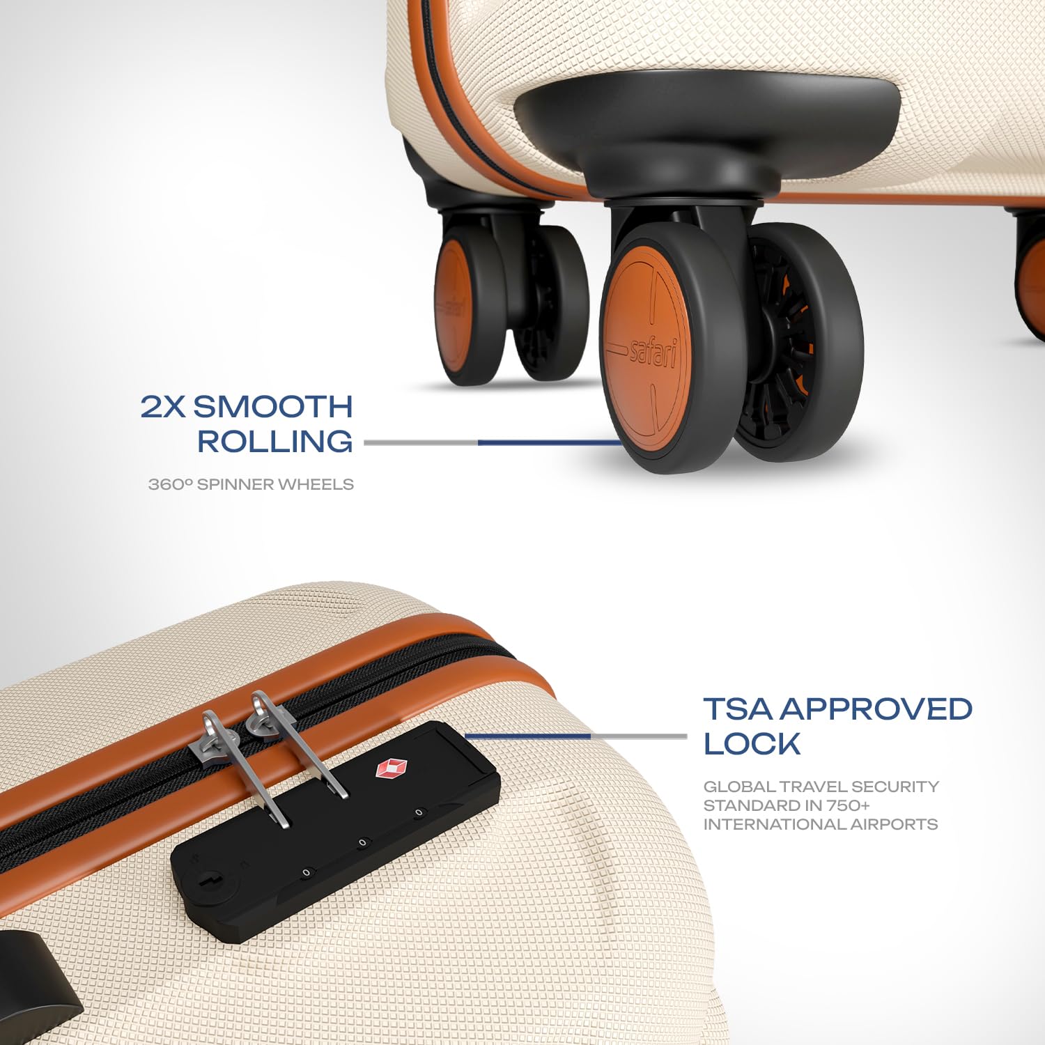 Safari Thorium Royale 8 Wheels 66cm Medium Size Trolley Bag Hard Case Checkin Polycarbonate Luggage, TSA Lock, Wet Pouch Organized Interior, Suitcase for Travel, Trolley Bags for Travel, Vanilla Tan