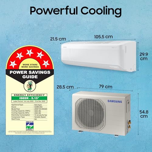 Samsung 1.5 Ton 5 Star Windfree AI Inverter Smart Split AC (WiFi, Energy Saving, Voice Control, Powerful Cooling, Copper, Digital Inverter, 4 Way swing, Convertible, BESPOKE AI AR60F19D1ZWNNA)
