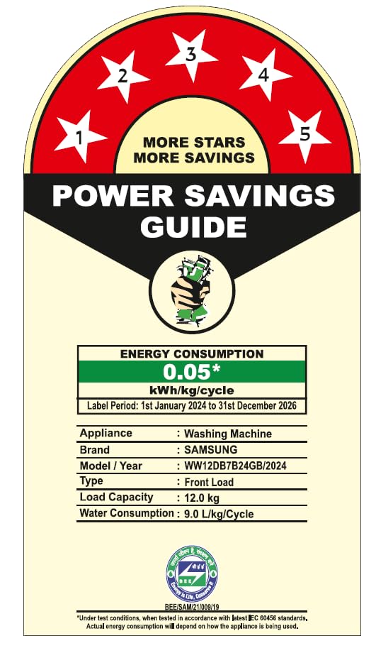 Samsung 12 kg, 5 Star, AI Control, Super Speed, Wi-Fi, Hygiene Steam with Inbuilt Heater, Digital Inverter, Fully-Automatic Front Load Washing Machine (WW12DB7B24GBTL, Black)