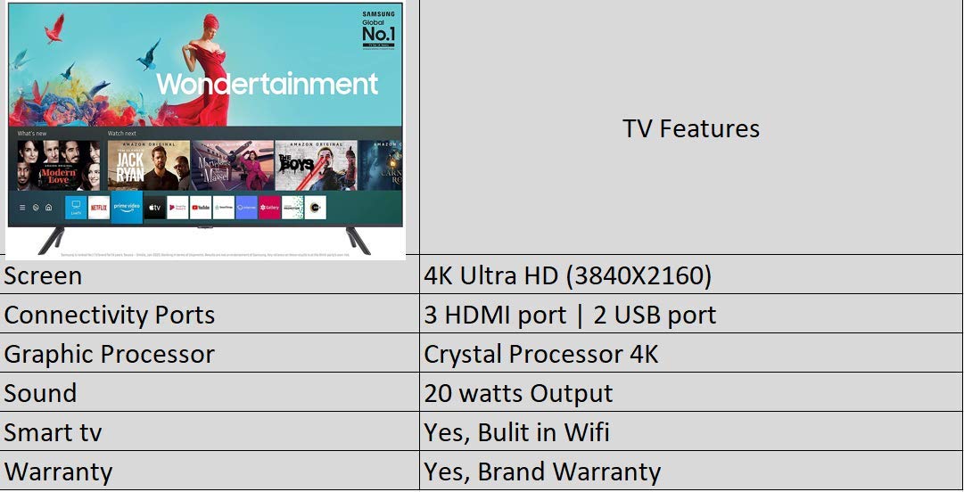 Samsung 163 cm (65 inches) Wondertainment Series 4K Ultra HD LED Smart TV UA65TUE60AKBXL (Titan Gray)