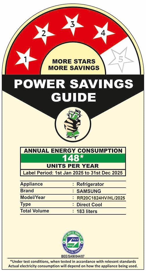 Samsung 183 L, 4 Star, Digital Inverter, Direct-Cool Single Door Refrigerator (RR20C1824HV/HL, Himalaya poppy Blue, Base Stand Drawer)